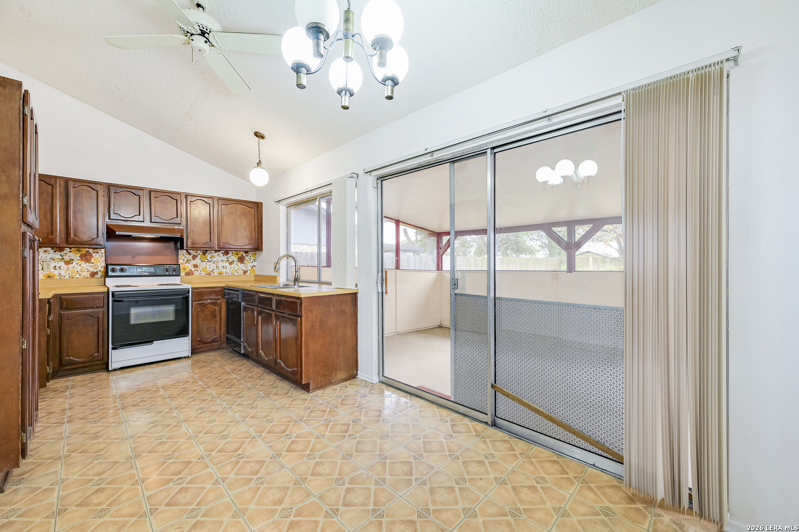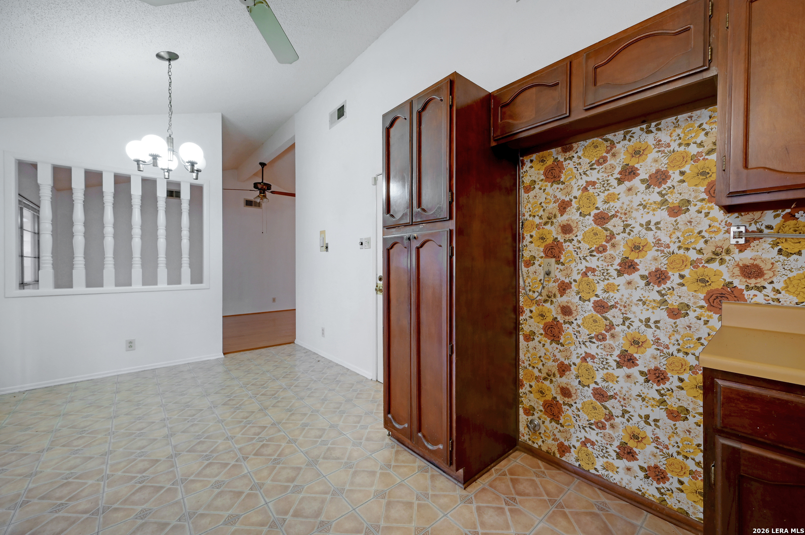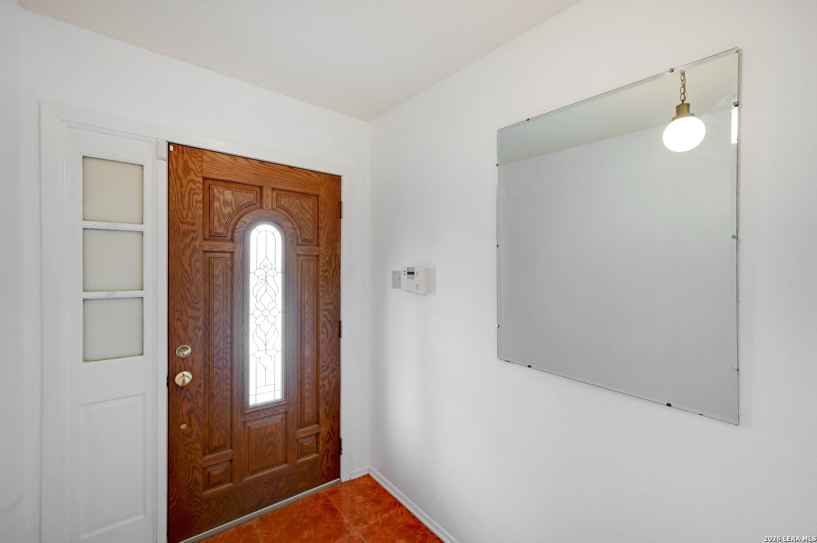 Well-maintained single-story home offering spacious living, vaulted ceilings, and excellent potential in a convenient Northwest San Antonio location. The main living area features wood flooring, a vaulted ceiling, and abundant natural light, creating an open and inviting atmosphere. The kitchen provides ample cabinet storage and counter space, a breakfast area, and views into the living and dining spaces-ideal for everyday living and entertaining. Bedrooms are generously sized and include ceiling fans, with the primary suite offering a private bath featuring a walk-in shower and extended vanity space. An enclosed patio adds flexible bonus space for entertaining, hobbies, or relaxing year-round. The large, fenced backyard with mature trees provides privacy and room to enjoy outdoor living. Conveniently located near major highways, shopping, dining, medical centers, and UTSA. Priced at $206,500, this home presents a great opportunity for buyers looking to personalize and add value.