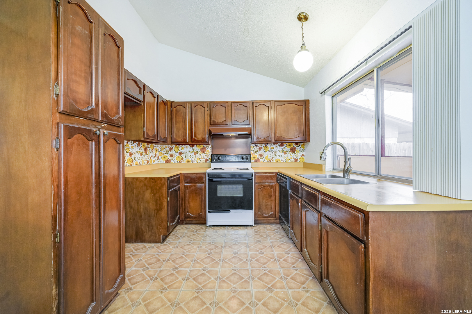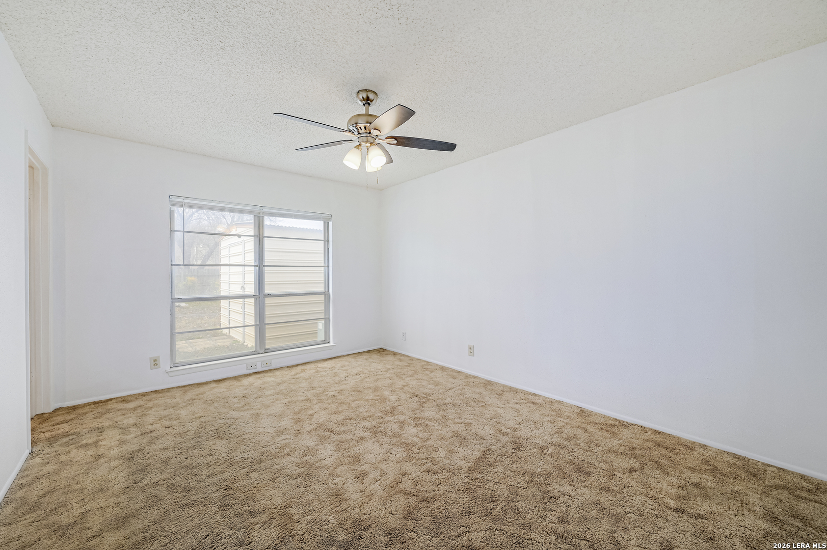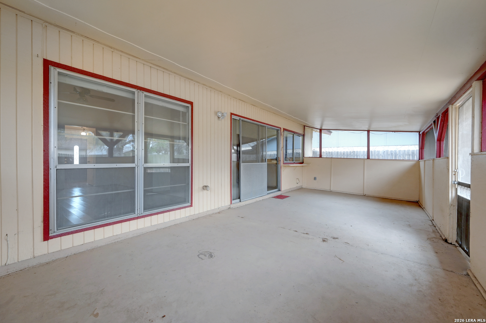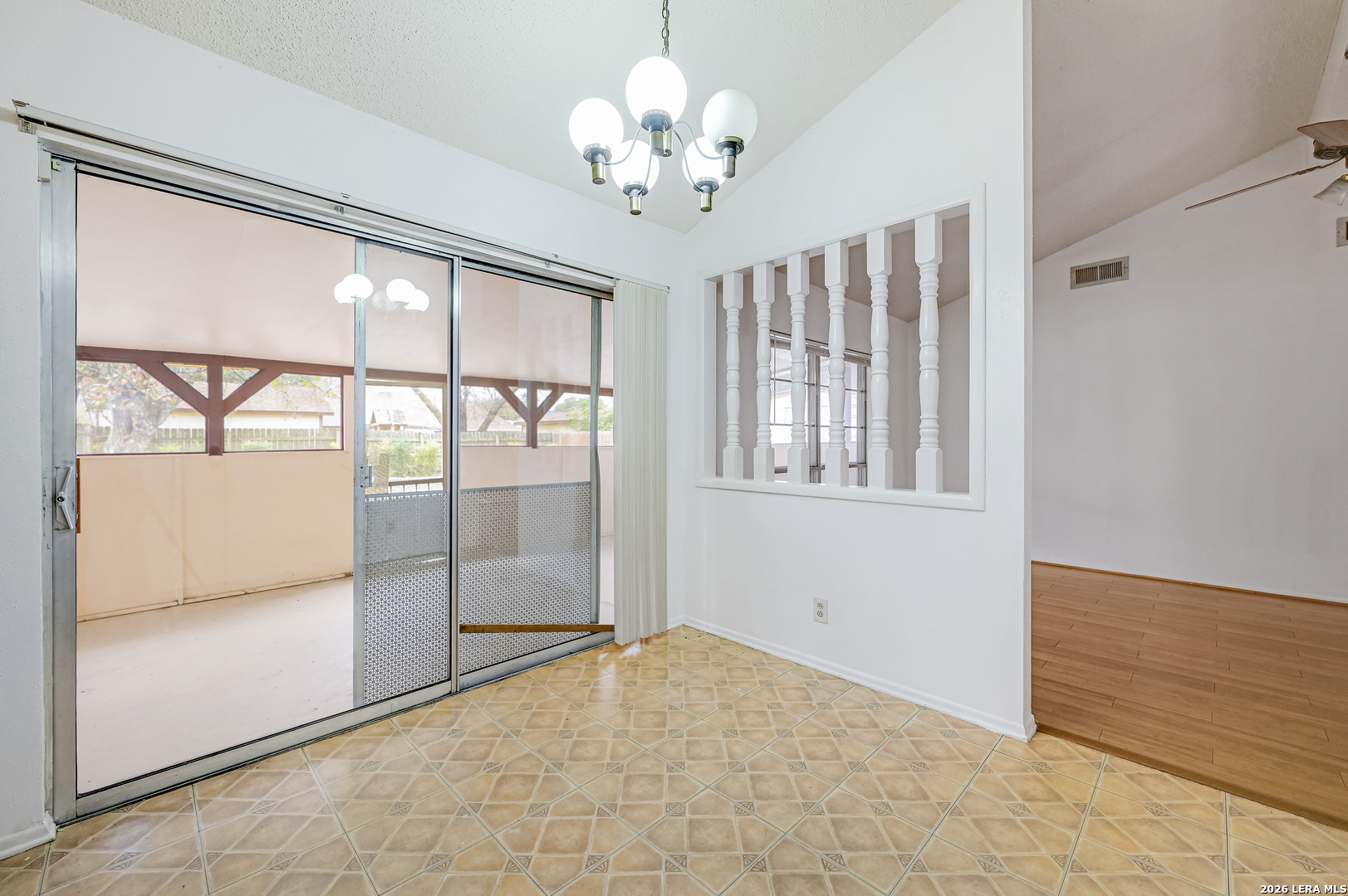 Well-maintained single-story home offering spacious living, vaulted ceilings, and excellent potential in a convenient Northwest San Antonio location. The main living area features wood flooring, a vaulted ceiling, and abundant natural light, creating an open and inviting atmosphere. The kitchen provides ample cabinet storage and counter space, a breakfast area, and views into the living and dining spaces-ideal for everyday living and entertaining. Bedrooms are generously sized and include ceiling fans, with the primary suite offering a private bath featuring a walk-in shower and extended vanity space. An enclosed patio adds flexible bonus space for entertaining, hobbies, or relaxing year-round. The large, fenced backyard with mature trees provides privacy and room to enjoy outdoor living. Conveniently located near major highways, shopping, dining, medical centers, and UTSA. Priced at $206,500, this home presents a great opportunity for buyers looking to personalize and add value.