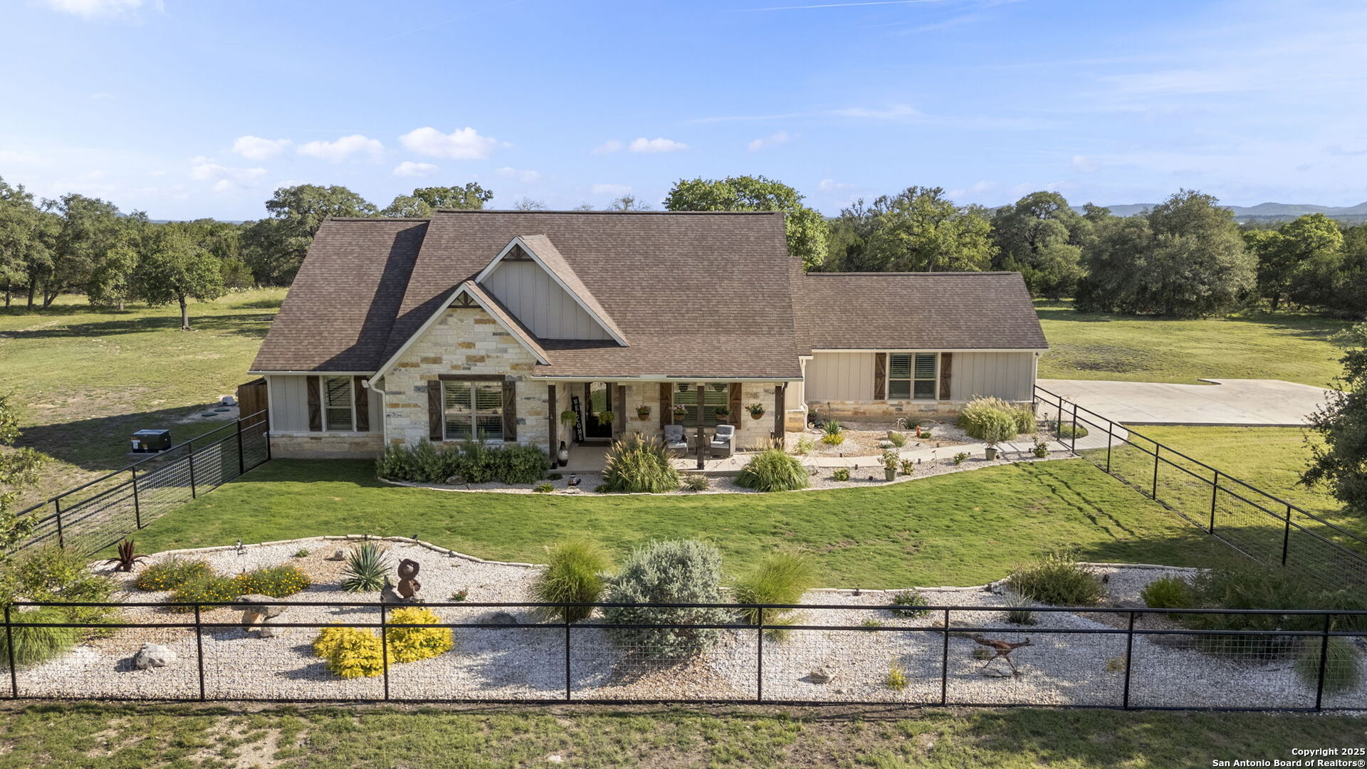 New PRICE & sellers offering $5,000 in concessions for you to use as you choose! Why build with this move-in ready home, including multiple warranties remaining & situated on 4 pristine acres in the Texas Hill Country located in the desirable gated Cielo Rio Ranch neighborhood! This immaculately maintained home offers the perfect blend of luxury, privacy, & nature. Step inside to an open-concept layout designed for both everyday comfort & entertaining including the gourmet kitchen featuring granite countertops, a spacious island, refined cabinetry with pull out storage galore, & oversized walk-in pantry. Enjoy the large windows across the back of the home providing natural light & beautiful views of the peaceful Hill Country landscape & wildlife. Enjoy year-round relaxation on the expansive covered patio featuring an electronic shade system you can control from indoors or out at the touch of a button. Fully fenced yard within the 4-acre property, creating a secure & beautifully defined outdoor space-ideal for pets, gardening, or enjoying the peaceful surroundings. With thoughtful landscaping & the double lot, there is room to expand, this home is ready for whatever your future holds. Cielo Rio Ranch neighborhood amenities, include a scenic park pavilion, walking trails, & direct access to the sparkling Medina River. Experience the peaceful charm of Hill Country living without sacrificing comfort or convenience. This is more than a home-it's a lifestyle.