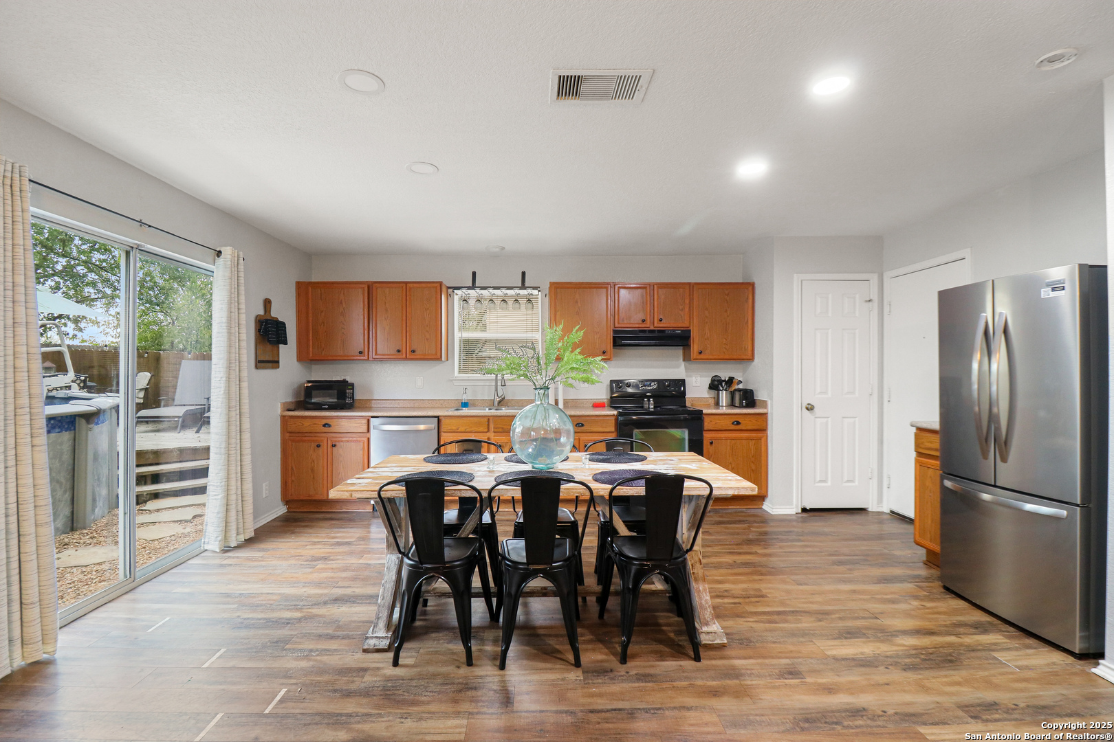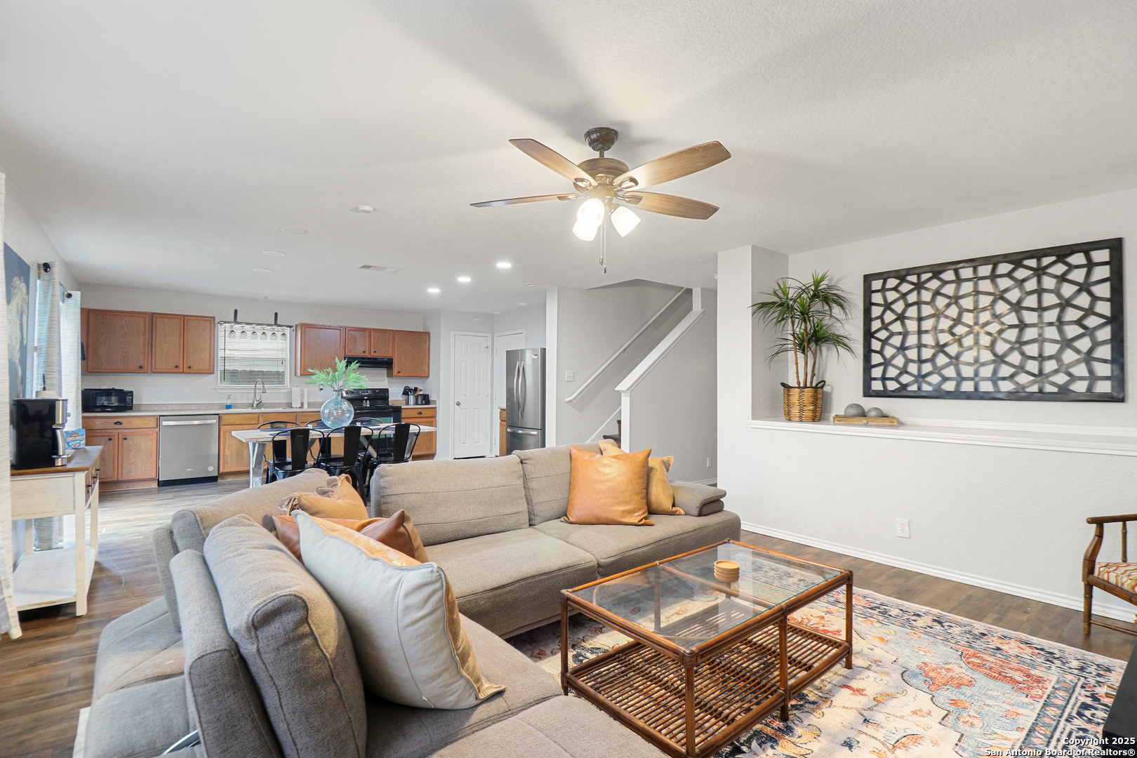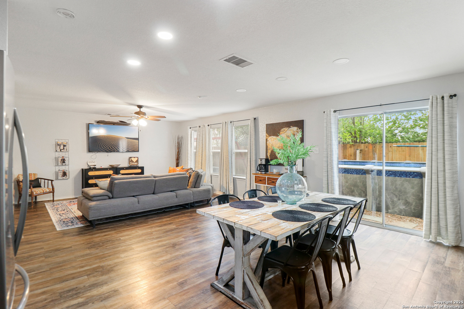 Welcome to this spacious 5-bedroom, 2.5-bathroom home in the heart of San Antonio, Texas, offering the perfect combination of comfort, convenience, and modern updates. Step inside to an inviting open floor plan designed to accommodate both daily living and entertaining. The bright and airy living spaces seamlessly connect to the dining area and kitchen, creating the ideal environment for gatherings and hosting guests. The kitchen is fully equipped with brand-new appliances, including a refrigerator, water heater, and dishwasher, giving you peace of mind and efficiency in your daily routines. A thoughtfully designed layout provides four bedrooms upstairs, including the generous primary suite with a walk-in closet and private bathroom, creating a tranquil retreat. The additional upstairs bedrooms offer flexibility for guest rooms, home offices, or playrooms, while a fifth bedroom downstairs is perfect for visitors or multi-generational living. Step outside and enjoy an abundance of community amenities that make this home stand out. Relax and unwind by the sparkling pool, host gatherings at the BBQ and picnic areas, or spend sunny afternoons at the playground. This property offers the perfect balance of indoor comfort and outdoor recreation. Conveniently located near shopping, dining, schools, and major highways, this home gives you easy access to everything San Antonio has to offer while still providing a peaceful neighborhood setting. With its spacious layout, and new appliances, this home is ready to welcome its new owners. Don't miss your chance to schedule a private showing and make this beautiful property yours!