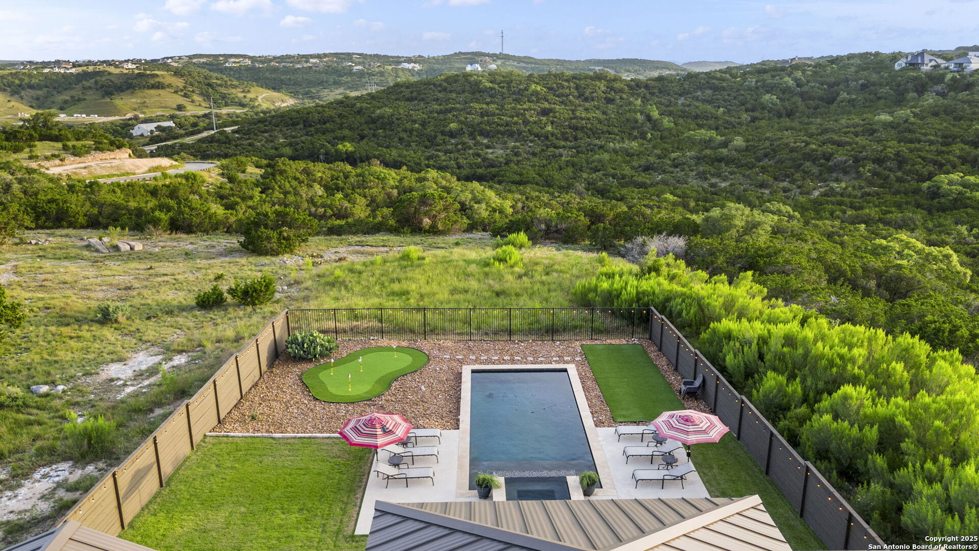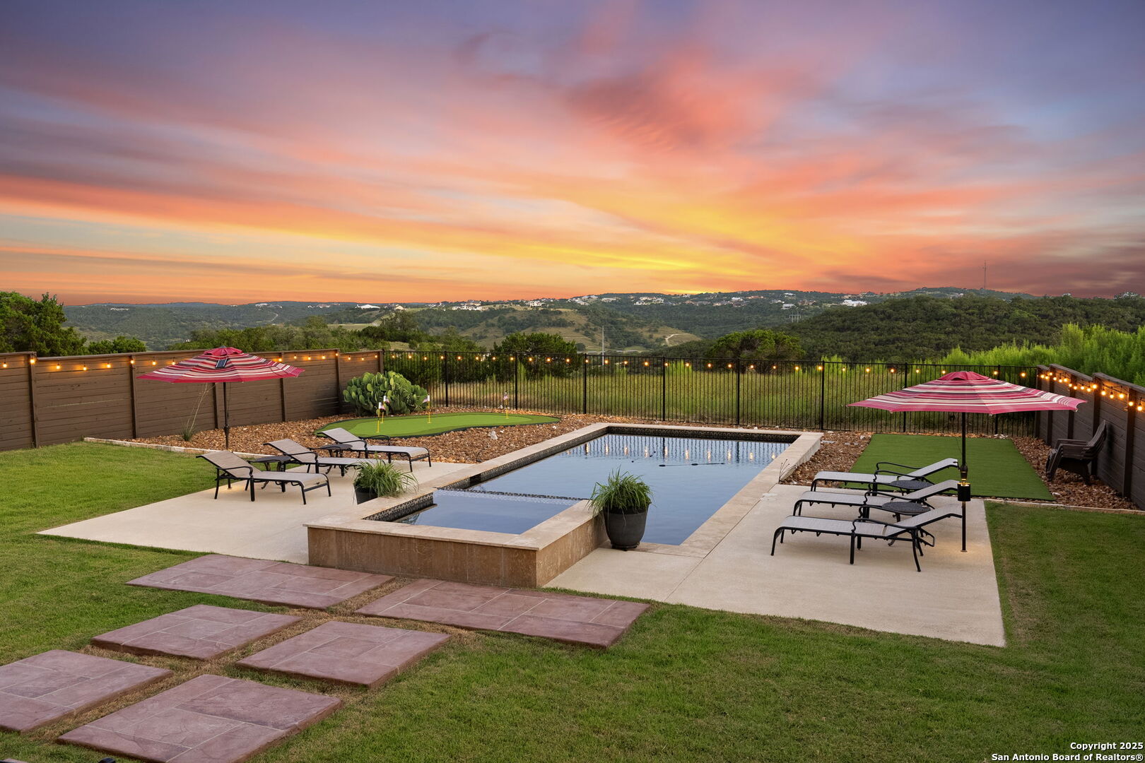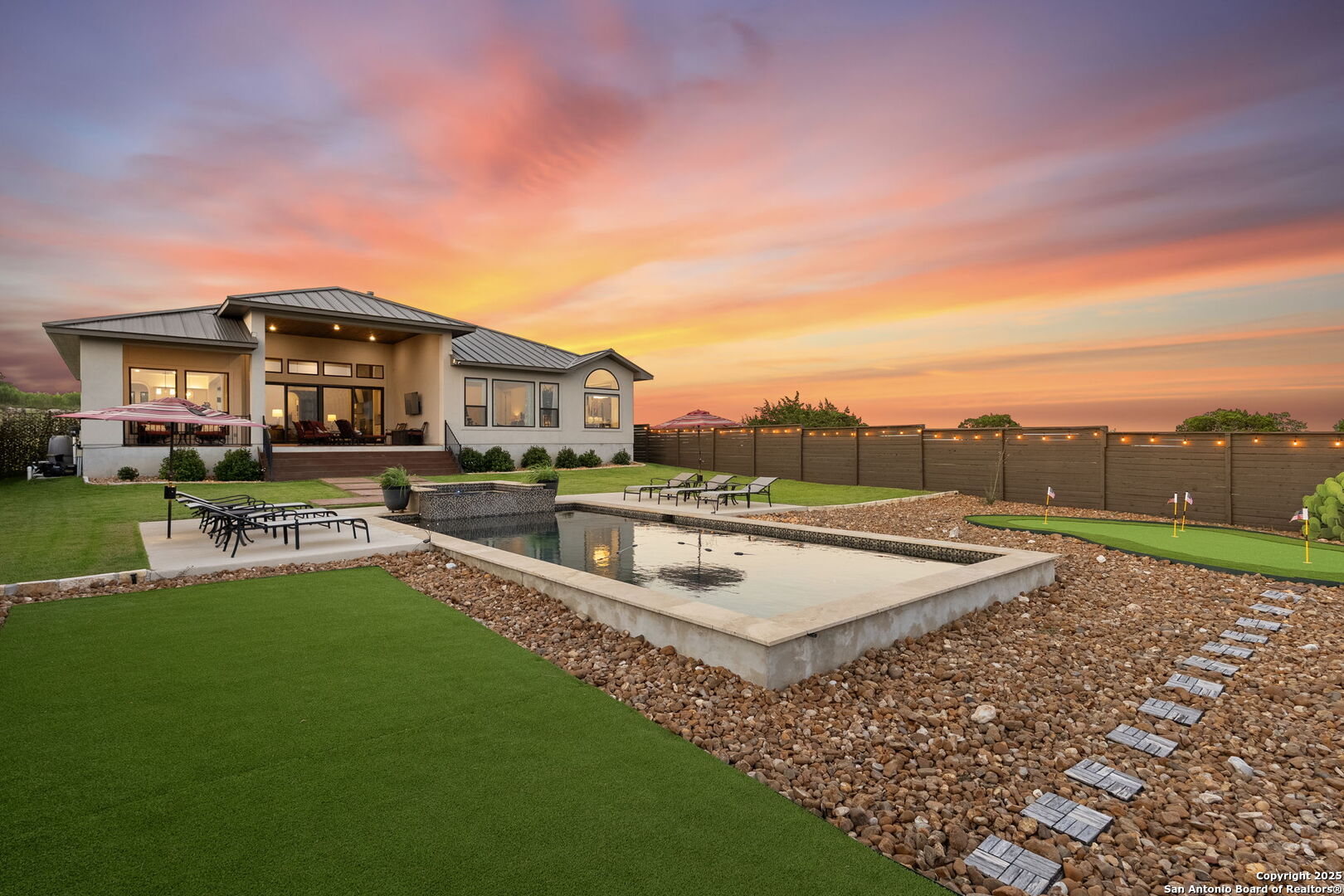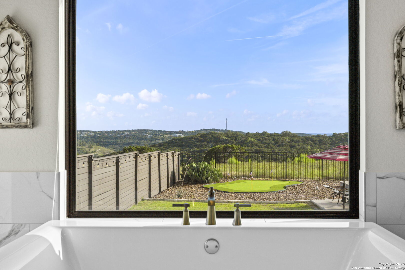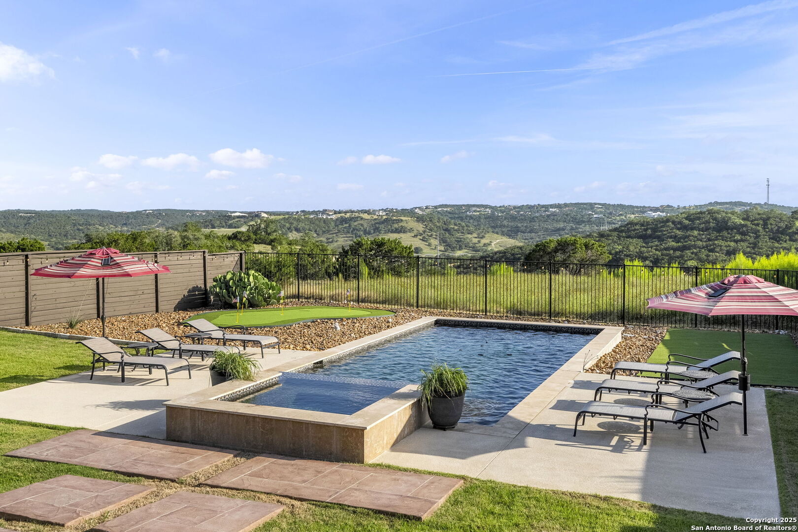 Luxury Living with Hill Country Views | Pool, Spa & Outdoor Oasis within the gated Miralomas neighborhood and 10 minutes away from Tapatio Springs Resort and Golf Course. Absolutely stunning and impeccably maintained, this elegant residence offers elevated Hill Country living on a beautifully landscaped 1/2-acre private lot with stunning views! From the moment you arrive, the gated front courtyard sets the tone for privacy and sophistication. Inside, soaring ceilings, rich hardwood floors, numerous windows fill the home with natural light, creating a bright and welcoming atmosphere throughout. Custom Blinds in every room. 3-car garage. The heart of the home features a chef's dream kitchen equipped with high-end Thermador appliances, custom cabinets, large island and a spacious layout ideal for entertaining. Beautifully appointed wine cellar with wine fridge, sink, and extensive cabinetry-perfect for the wine enthusiast. The versatile floor plan offers four bedrooms or three bedrooms plus a study, including two secondary bedrooms with their own full bath. The primary suite is a true retreat with breathtaking hill country views, a spa-like bath, and a massive walk-in closet that exceeds expectations. Step outside to a resort-style backyard complete with a sparkling pool, hot tub, putting green, and a generously sized covered patio with a full outdoor kitchen-perfect for relaxing or hosting guests. Homes of this caliber rarely become available-schedule your showing today and experience refined Texas Hill Country living at its best!