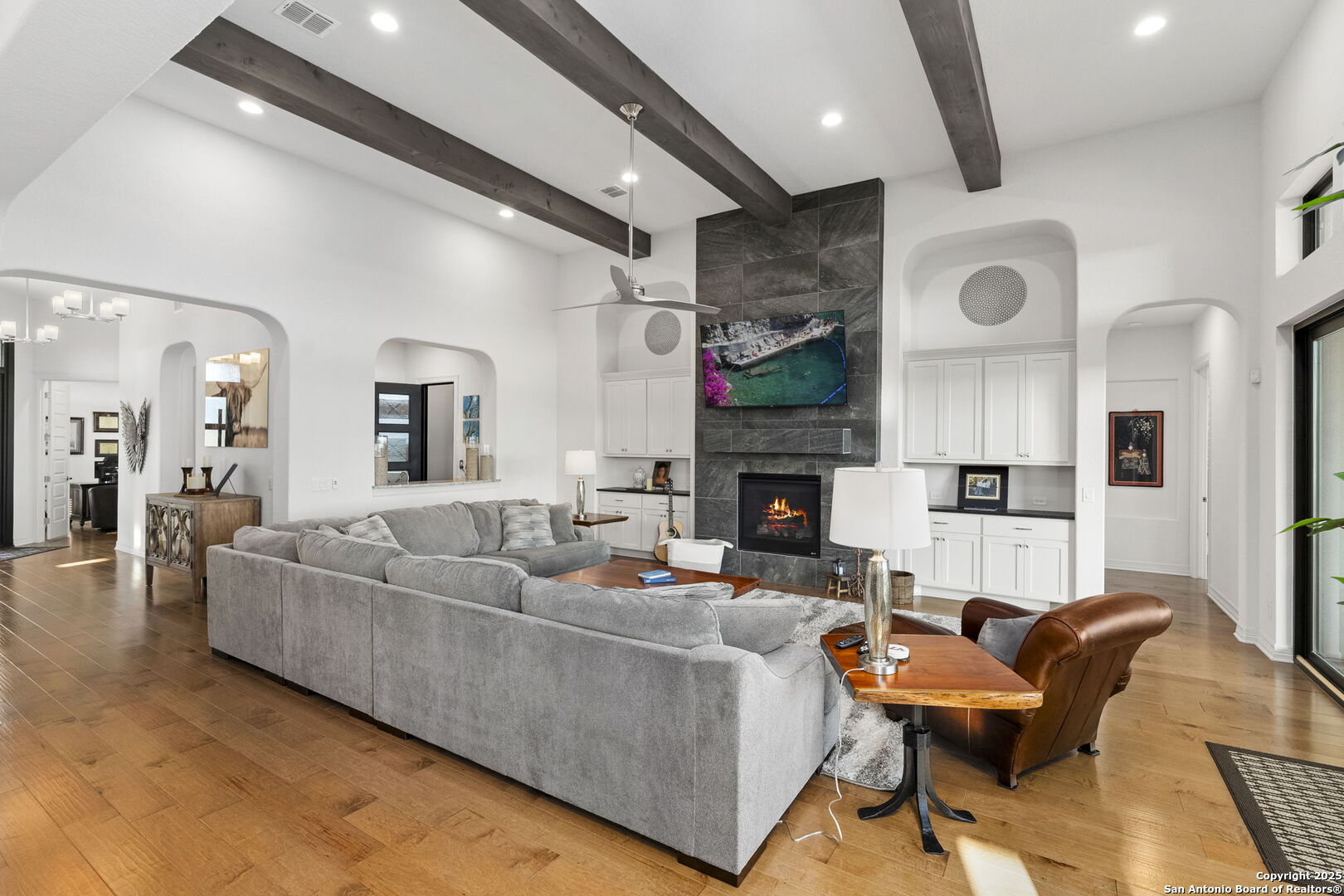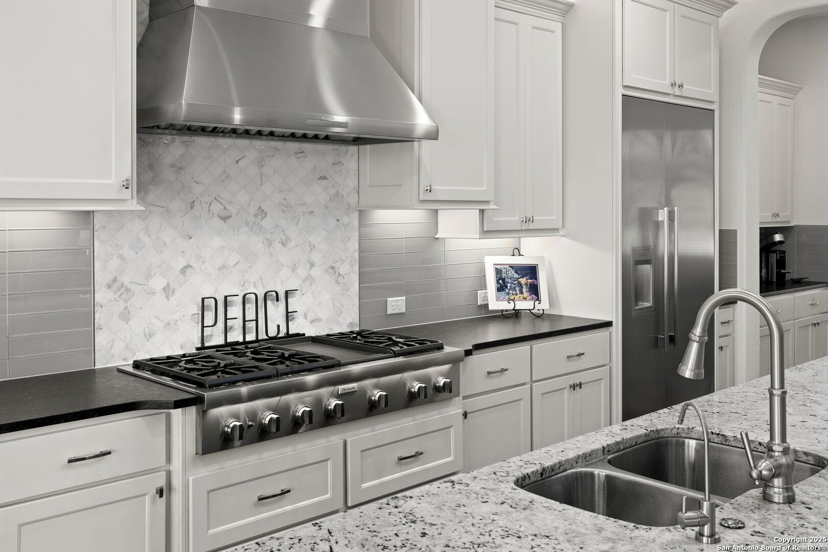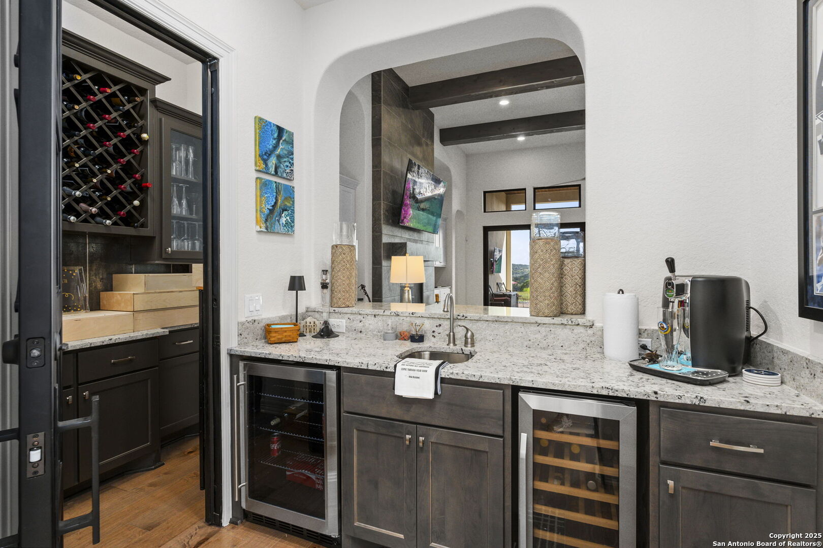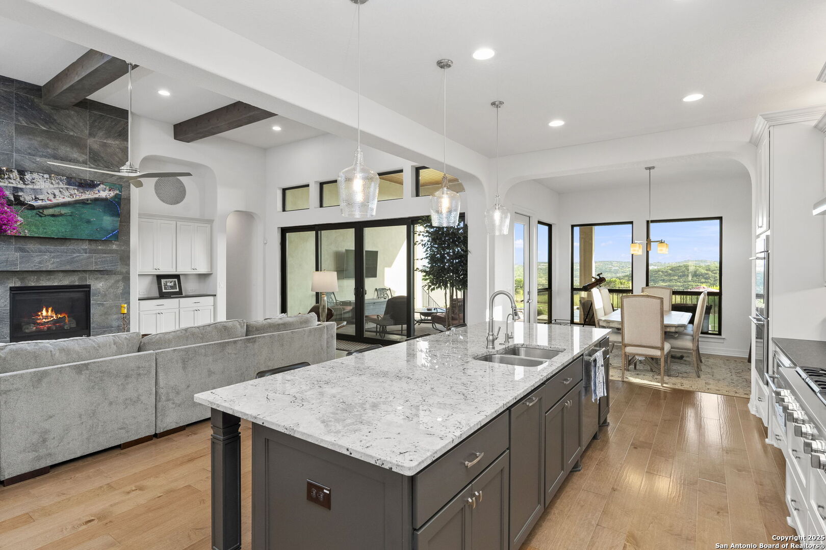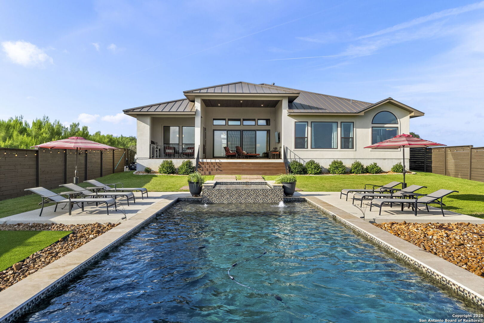 Luxury Living with Hill Country Views | Pool, Spa & Outdoor Oasis within the gated Miralomas neighborhood and 10 minutes away from Tapatio Springs Resort and Golf Course. Absolutely stunning and impeccably maintained, this elegant residence offers elevated Hill Country living on a beautifully landscaped 1/2-acre private lot with stunning views! From the moment you arrive, the gated front courtyard sets the tone for privacy and sophistication. Inside, soaring ceilings, rich hardwood floors, numerous windows fill the home with natural light, creating a bright and welcoming atmosphere throughout. Custom Blinds in every room. 3-car garage. The heart of the home features a chef's dream kitchen equipped with high-end Thermador appliances, custom cabinets, large island and a spacious layout ideal for entertaining. Beautifully appointed wine cellar with wine fridge, sink, and extensive cabinetry-perfect for the wine enthusiast. The versatile floor plan offers four bedrooms or three bedrooms plus a study, including two secondary bedrooms with their own full bath. The primary suite is a true retreat with breathtaking hill country views, a spa-like bath, and a massive walk-in closet that exceeds expectations. Step outside to a resort-style backyard complete with a sparkling pool, hot tub, putting green, and a generously sized covered patio with a full outdoor kitchen-perfect for relaxing or hosting guests. Homes of this caliber rarely become available-schedule your showing today and experience refined Texas Hill Country living at its best!