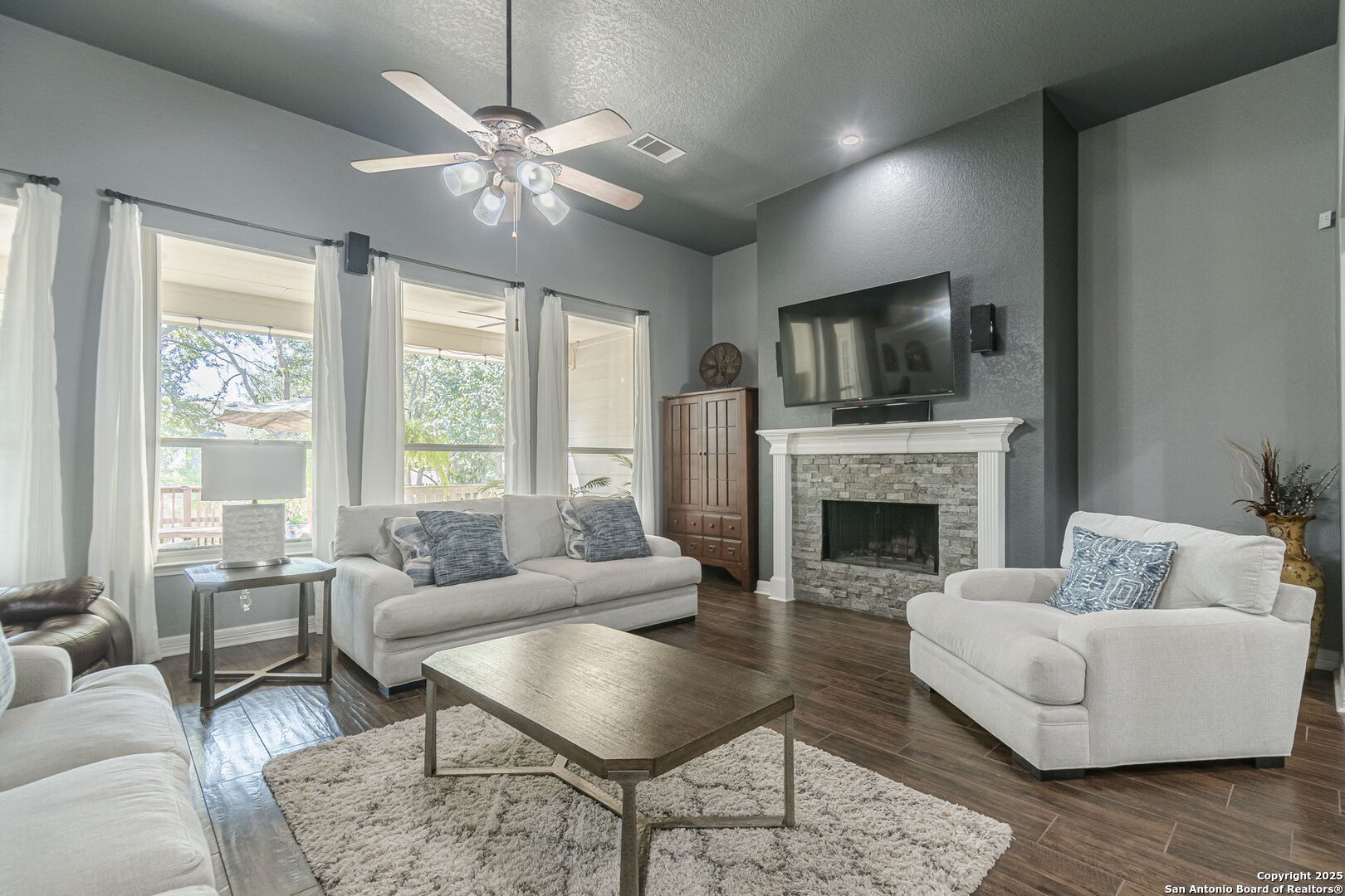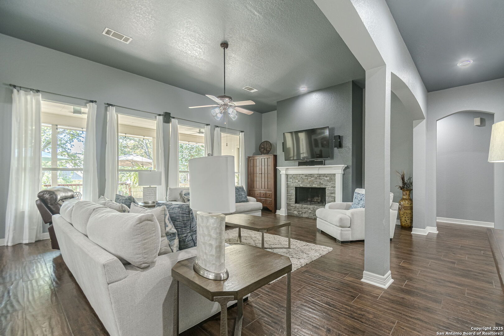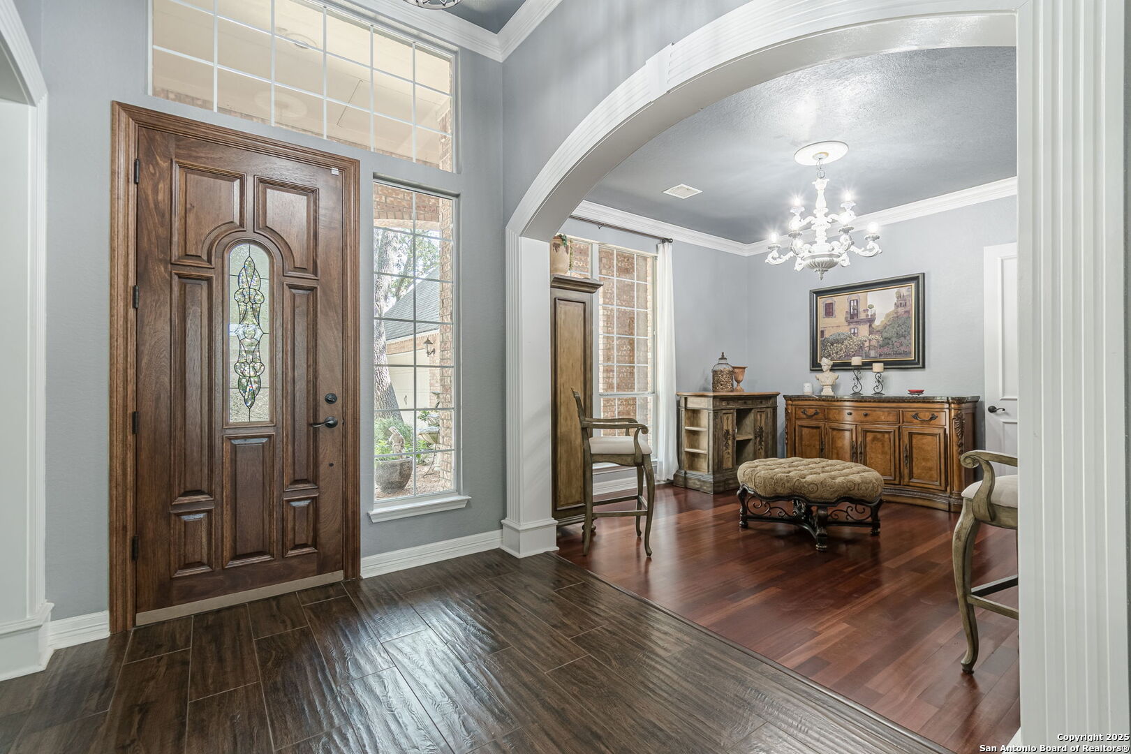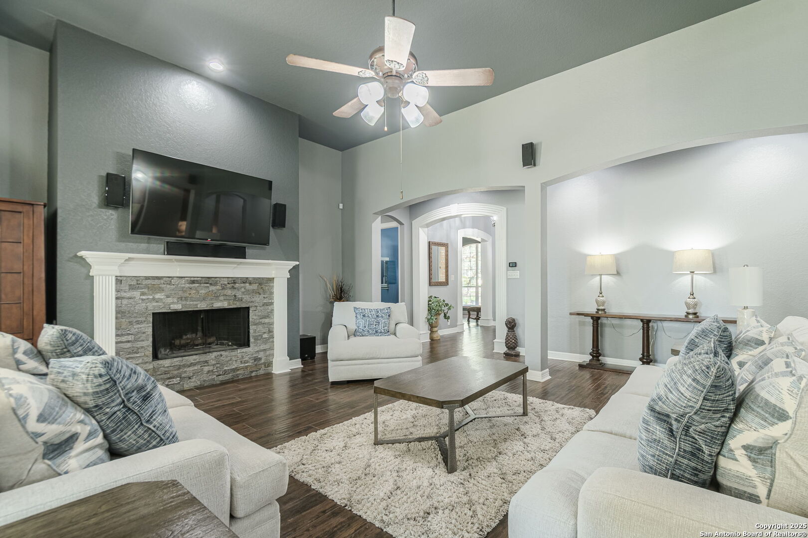 Luxury Living in Steeple Brook! Welcome to 7502 Steeple Dr, a distinguished residence nestled in the prestigious gated community of Steeple Brook. Known for its privacy, security, and exclusivity, Steeple Brook offers a lifestyle of comfort and distinction, all while being ideally located near The Rim, La Cantera, and Six Flags. From the moment you arrive, the grand curb appeal and elegant entryway create a warm yet impressive welcome. Step inside to discover a home designed with luxury and sophistication in mind, showcasing exclusive updates throughout. The gourmet kitchen serves as the heart of the home, featuring exquisite granite counters, a striking island, and timeless finishes-perfect for both intimate dinners and stylish entertaining. The dramatic open floor plan includes two sophisticated living areas, accented with tile wood-like flooring and expansive windows that flood the interiors with natural light. A fantastic private office overlooks the beautifully landscaped front yard, providing both inspiration and functionality for work or study. The primary suite is a private retreat, offering serene views of the inviting patio and backyard. Its spa-inspired bath boasts a dual master shower, custom tile, and refined finishes, creating an atmosphere of ultimate relaxation. Outdoors, the possibilities for creating your own paradise are endless. The seller offers two professionally designed pool plans, allowing you to transform the backyard into an extraordinary private oasis tailored to your vision of luxury living. Luxury Living at its best!