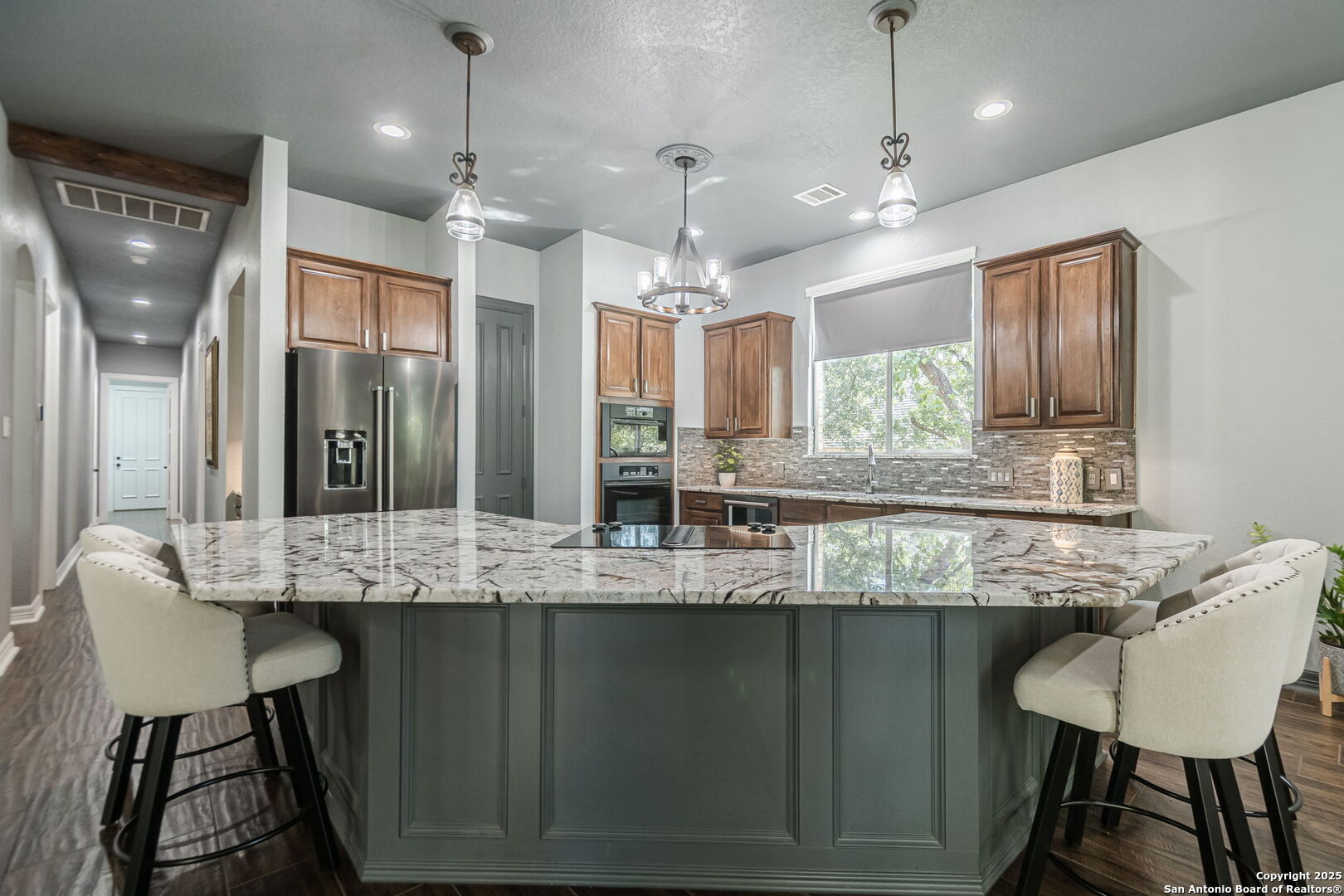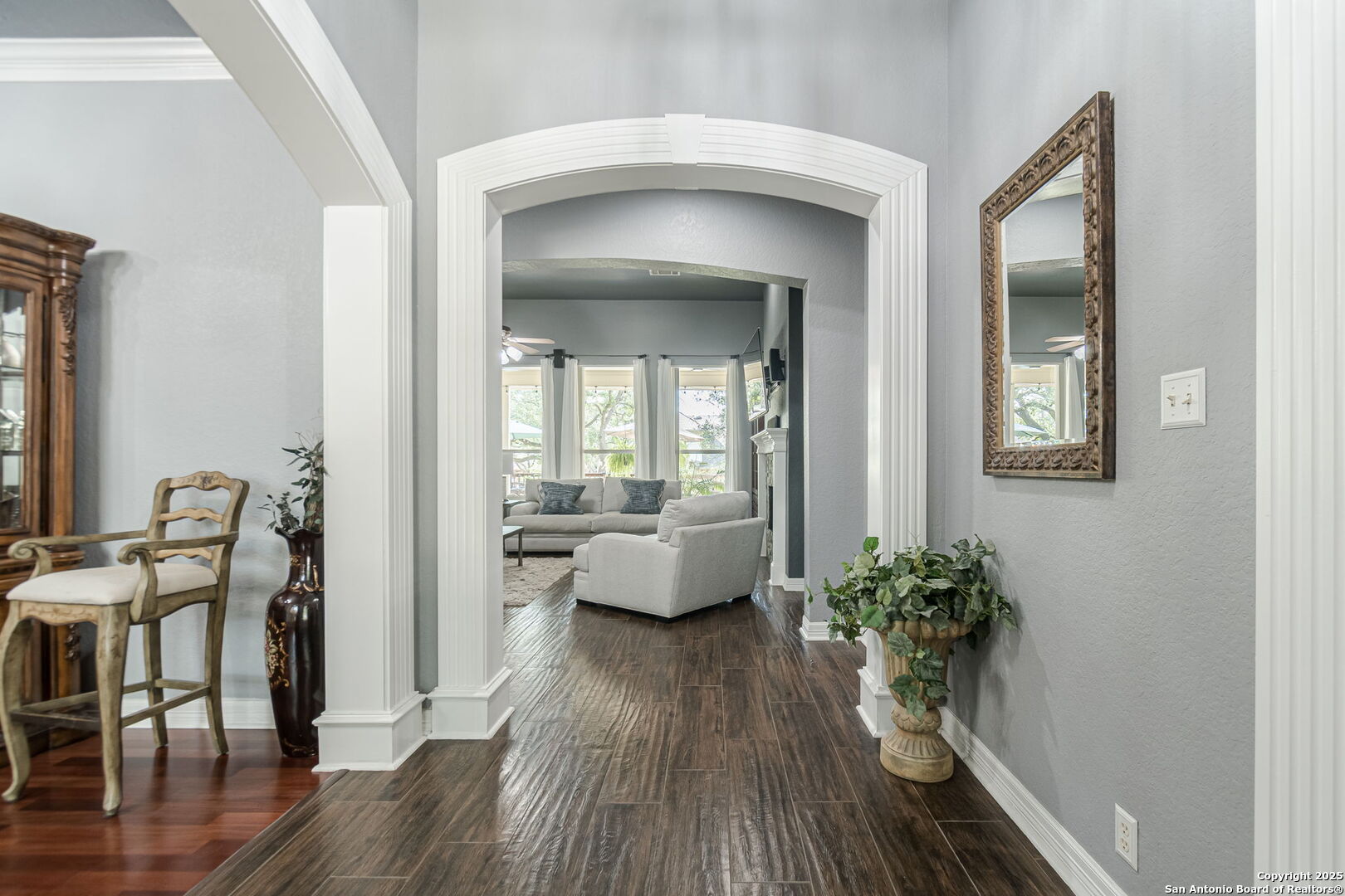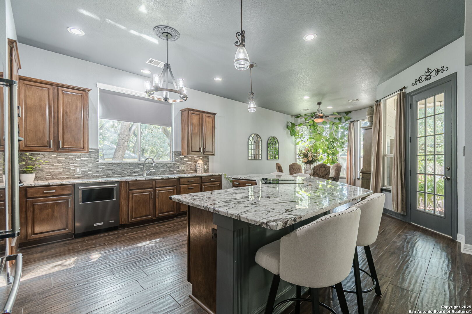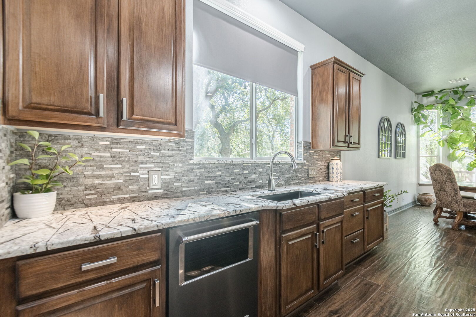 Luxury Living in Steeple Brook! Welcome to 7502 Steeple Dr, a distinguished residence nestled in the prestigious gated community of Steeple Brook. Known for its privacy, security, and exclusivity, Steeple Brook offers a lifestyle of comfort and distinction, all while being ideally located near The Rim, La Cantera, and Six Flags. From the moment you arrive, the grand curb appeal and elegant entryway create a warm yet impressive welcome. Step inside to discover a home designed with luxury and sophistication in mind, showcasing exclusive updates throughout. The gourmet kitchen serves as the heart of the home, featuring exquisite granite counters, a striking island, and timeless finishes-perfect for both intimate dinners and stylish entertaining. The dramatic open floor plan includes two sophisticated living areas, accented with tile wood-like flooring and expansive windows that flood the interiors with natural light. A fantastic private office overlooks the beautifully landscaped front yard, providing both inspiration and functionality for work or study. The primary suite is a private retreat, offering serene views of the inviting patio and backyard. Its spa-inspired bath boasts a dual master shower, custom tile, and refined finishes, creating an atmosphere of ultimate relaxation. Outdoors, the possibilities for creating your own paradise are endless. The seller offers two professionally designed pool plans, allowing you to transform the backyard into an extraordinary private oasis tailored to your vision of luxury living. Luxury Living at its best!