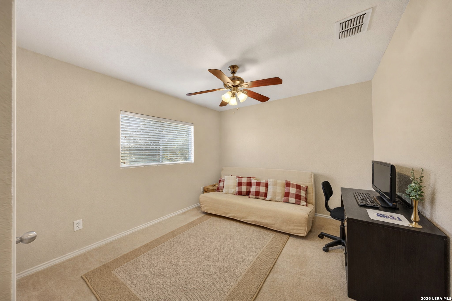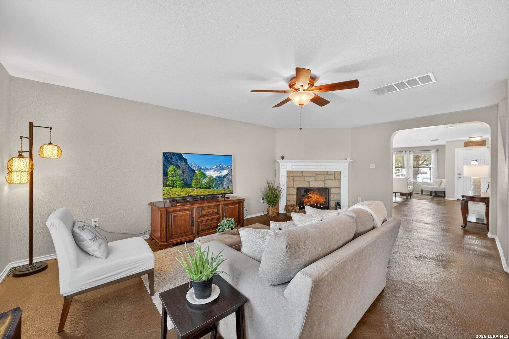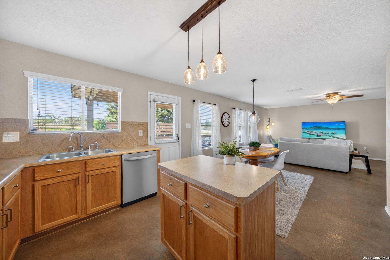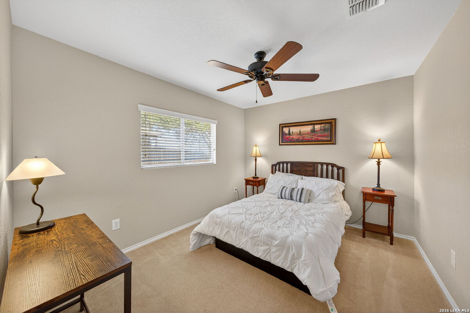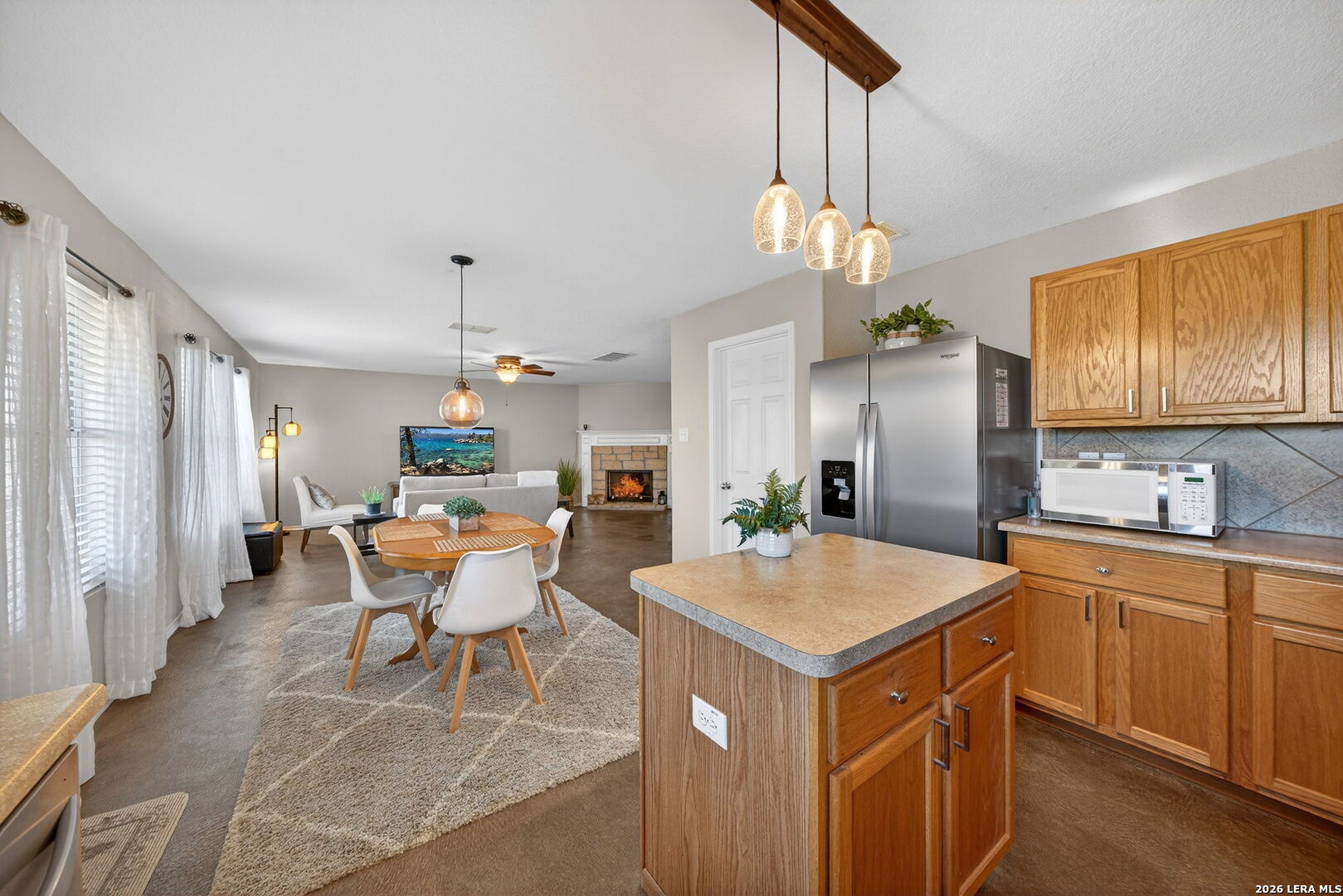 Tucked away on an oversized greenbelt lot, this 4 bedroom, 3 full bath home is conveniently located near Boerne just beyond Fair Oaks Ranch, in a quiet low traffic neighborhood that offers space, privacy, and a peaceful Hill Country setting. Upon entering, you are welcomed by a living and dining room combination that works beautifully for entertaining or flexible everyday use. The home opens into a large comfortable family room and a spacious kitchen featuring stained concrete floors, an open concept layout, an oversized pantry, and new kitchen appliances, with the refrigerator negotiable. A downstairs bedroom paired with a full bathroom just steps away creates a comfortable and functional setup for a mother in law, long term guests, or multigenerational living. Having this flexible space downstairs adds both practicality and long term value. The extra large primary bedroom upstairs offers a relaxing retreat with plenty of room to unwind. Step outside to the covered patio overlooking the greenbelt, where the setting invites you to relax, entertain, or simply enjoy the surrounding nature. The home has been well cared for and thoughtfully maintained, offering a warm inviting feel throughout. Located in Boerne ISD with no city taxes, this home blends quiet spacious living with convenient access to Boerne's shops, dining, and everyday amenities.