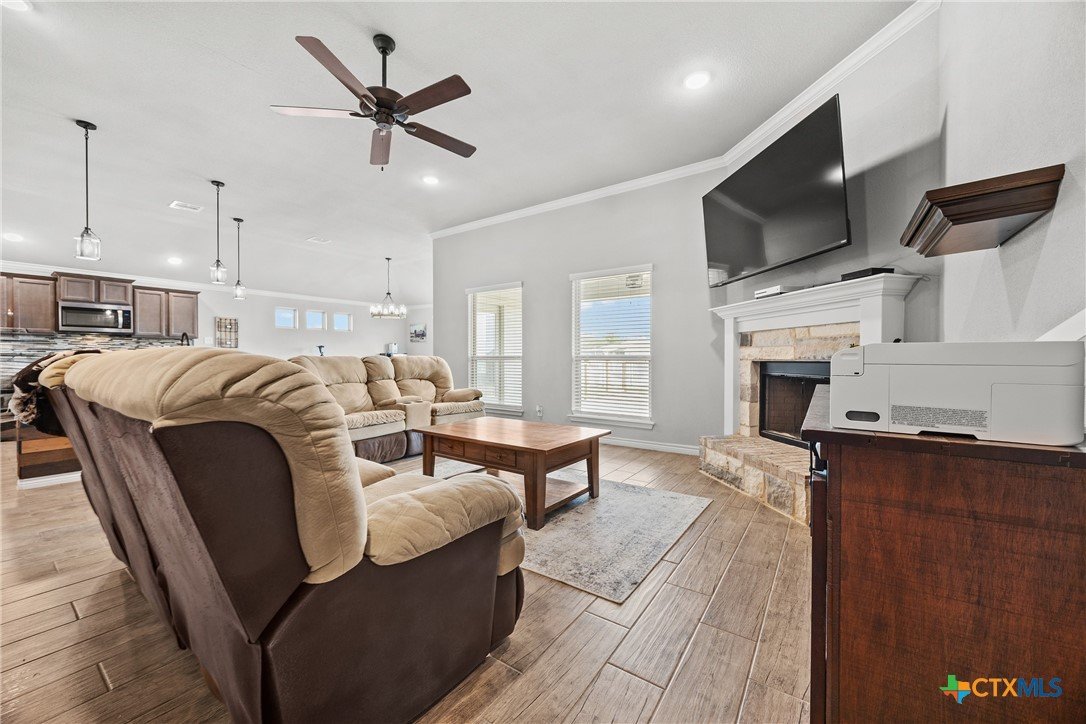 Belton ISD – 4-Bedroom + Flex Room – Family-Ready! Built in 2021, this 4-bedroom, 3-bath single-story home with a versatile flex room that can easily become a kids’ game room, playroom, home office, or guest space. Offering 2,738 sq ft of space designed for both everyday living and special family moments. Imagine waking up to morning coffee on the deck while the kids run freely in the yard, afternoons filled with fun-filled days at nearby Lake Belton, and evenings spent sharing stories by the cozy fireplace or cooking homemade meals together in the oversized chef’s kitchen. This open floor plan invites laughter, playdates, and family dinners, while the spacious primary suite offers a peaceful retreat after busy days. The 3-car garage provides room for all your gear, and the large backyard with a custom deck is perfect for summer BBQs, backyard games, and stargazing nights. All of this is in a safe, welcoming neighborhood with top-rated schools where your family can grow, thrive, and create lasting memories. ***Some Photos have been virtually staged***