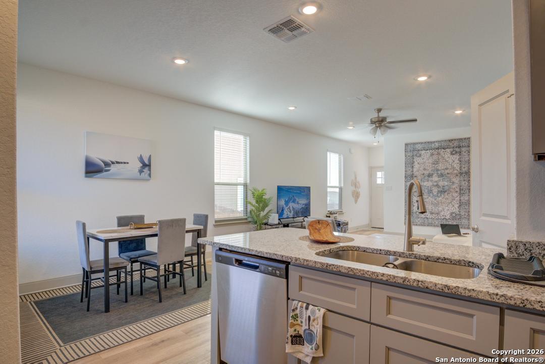Live stylishly in this brand-new, heavily upgraded 3 bed, 2.5 bath townhome with a spacious 1.5-car garage, located in San Antonio's booming westside near major employers like Lackland AFB, UTSA, and USAA. Enjoy premium finishes including granite countertops, stainless appliances, upstairs laundry, and energy-efficient foam insulation. Magnolia Village offers security and ease with front yard maintenance, gated access, and exclusive parks for kids and pets. EV charger-ready and built for long-term comfort.
