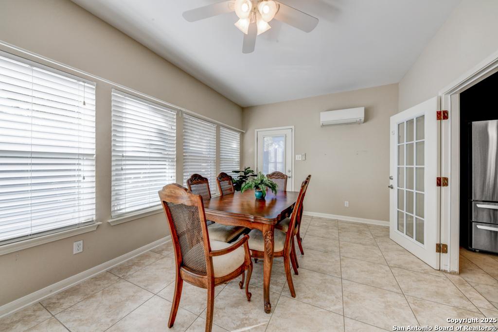 NO OPEN HOUSE!!!! Welcome home to this beautifully updated single-story, 3 bedroom, 2 bath gem with a 2-car garage in a prime, central location! With high ceilings, abundant natural light, and warm wood flooring and tile that flows throughout-no carpet anywhere! Stunning eat-in kitchen has been thoughtfully upgraded with granite counters, a spacious island, breakfast bar, 42" cabinets with soft-close drawers and doors, and pull-outs in lower cabinets for easy storage. A stainless steel induction range with convection oven, built-in microwave convection oven, and walk-in pantry make this kitchen a true chef's delight. Retreat to the generous primary bedroom and enjoy the luxury of a custom walk-in shower. Guest bath also offers a walk-in shower. A versatile sunroom, complete with living and dining space and its own mini-split system, offers the perfect spot for relaxing or entertaining year-round. Step outside to your private outdoor oasis-an oversized deck shaded by a mature tree, plus a handy storage shed, plus a water softener. Located just minutes from IH-10/1604, UTSA, La Cantera, The Rim, Valero, FBI, and the Medical Center, with endless shopping and dining options. NISD schools! Come see it today!