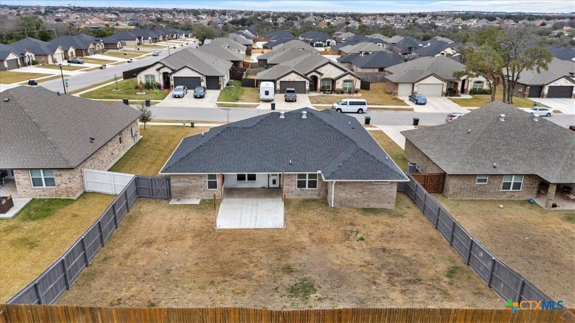 Style and practicality come together effortlessly in this beautifully maintained 2023-built home, ideally situated in the growing and highly sought-after Heritage Oaks community. Designed for modern living, the open-concept layout is filled with natural light and features durable, easy-to-maintain wood-look tile flooring throughout. The spacious living area flows seamlessly into the kitchen, where granite countertops, a central island, elegant white cabinetry with pull-out drawers, stainless steel appliances, and a pantry create a space that’s as functional as it is inviting. A breakfast bar is perfect for casual mornings, while the adjacent dining area easily accommodates more formal gatherings. The private primary suite serves as a relaxing retreat, highlighted by a tray ceiling and a well-appointed ensuite bath with dual vanities, a soaking tub, a separate glass-enclosed shower, and a walk-in closet. Two additional bedrooms, each with their own closet, offer flexible options for guests, a home office, or creative space and share a full bath. Step outside to the large, fenced backyard where a covered patio with an extended outdoor living area sets the stage for weekend barbecues, morning coffee, or evening gatherings under the Texas sky. All of this is complemented by a prime location close to schools, everyday conveniences, abundant shopping and dining, easy access to US 190, TX 195, and I-35, and just a short drive to the regional airport—making this home an exceptional blend of comfort, convenience, and lifestyle.