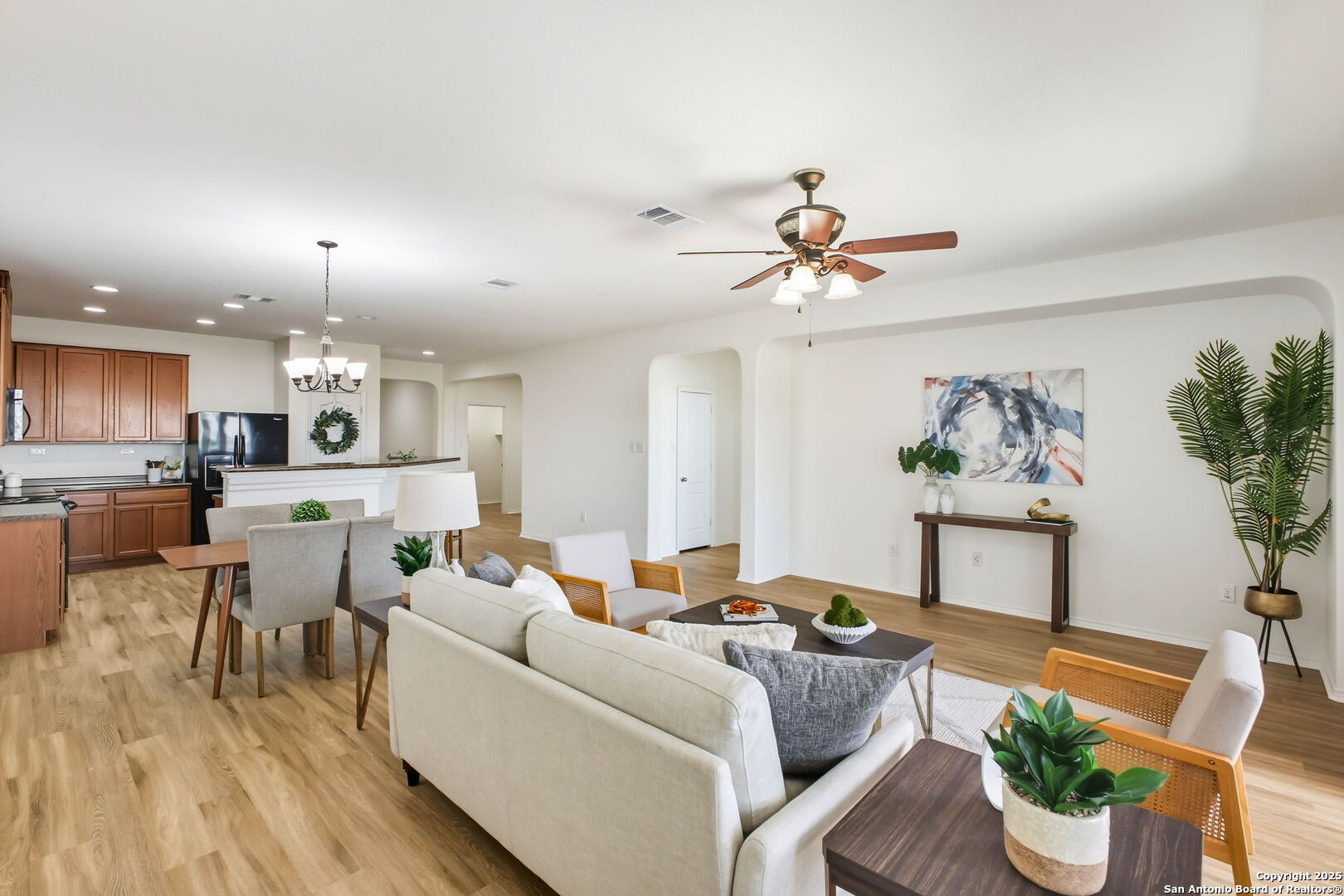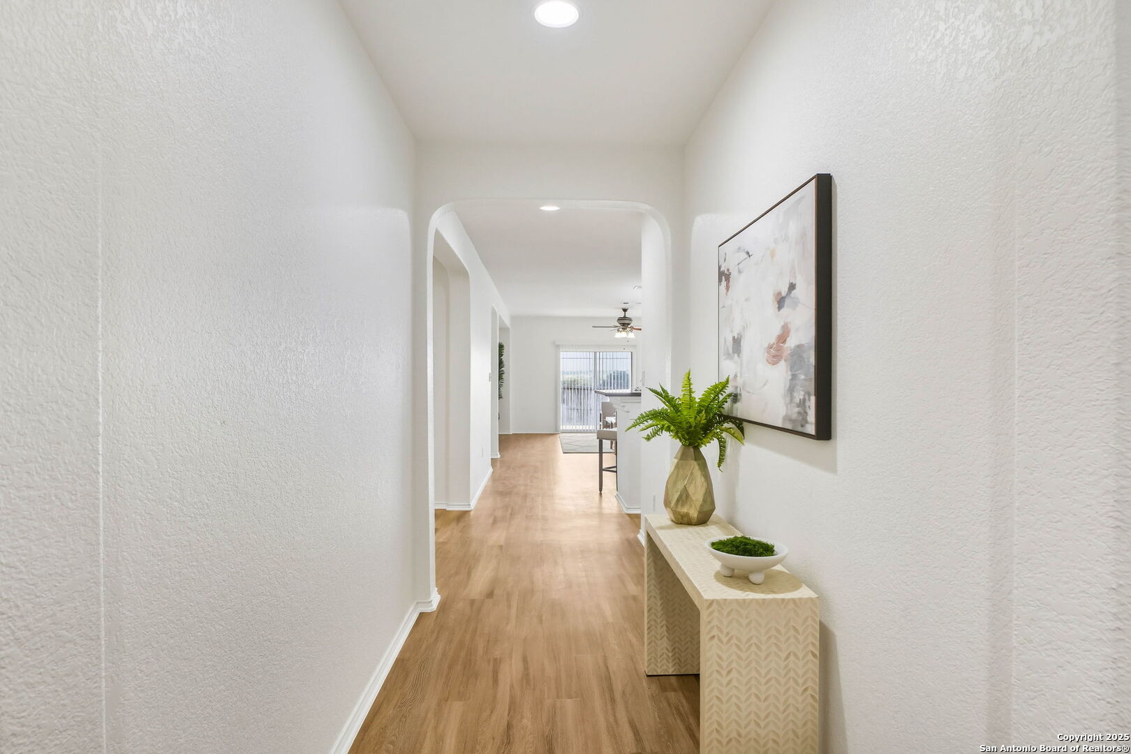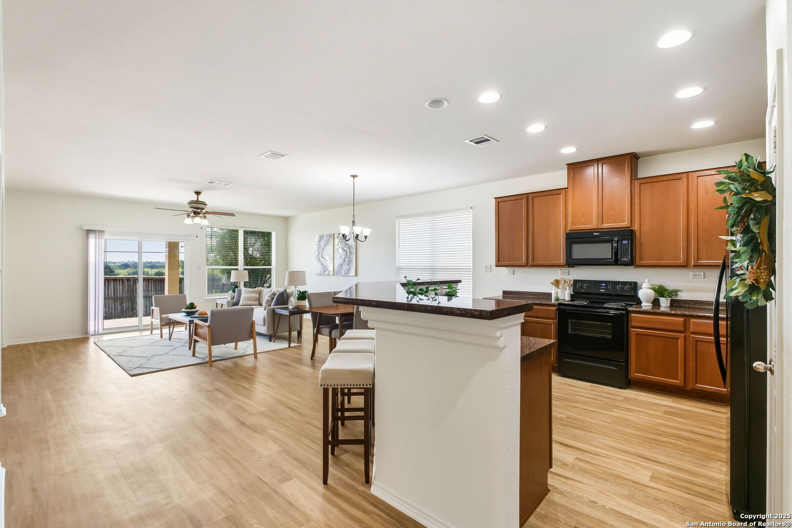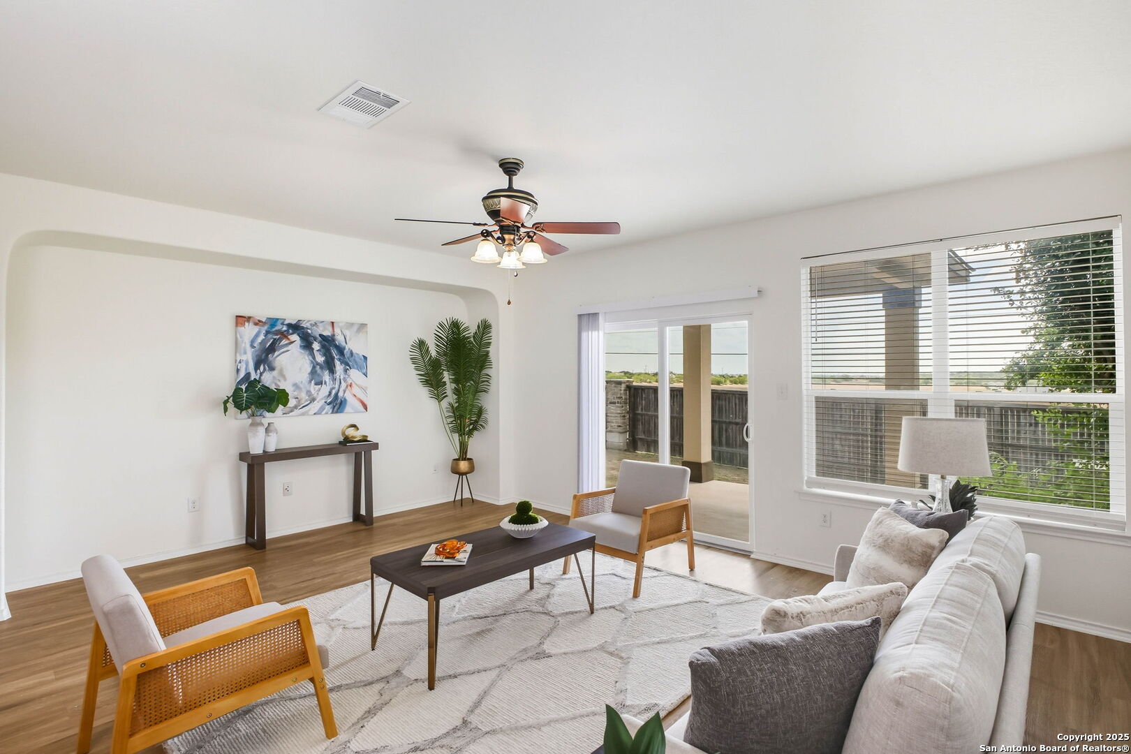 **Open House, Sunday, Nov 2nd, 10AM-12PM** Nestled in the prestigious gated community of the Cobblestone community, this beautifully updated one story home with no back neighbors, offers an inviting open floor plan, featuring new luxury vinyl plank flooring and plush carpet in the bedrooms. The spacious kitchen comes equipped with full appliances and connects seamlessly to the living area, making it perfect for entertaining. A versatile bonus room adds endless possibilities, ideal as a home office, dining area, or playroom. Step outside to your private backyard retreat, where stunning Hill Country views and a thriving orange tree await with no back neighbors. Located in the highly sought after Northside ISD, this home provides quick access to shopping, dining, and essential services just minutes away. This is a rare opportunity. Schedule your showing today!