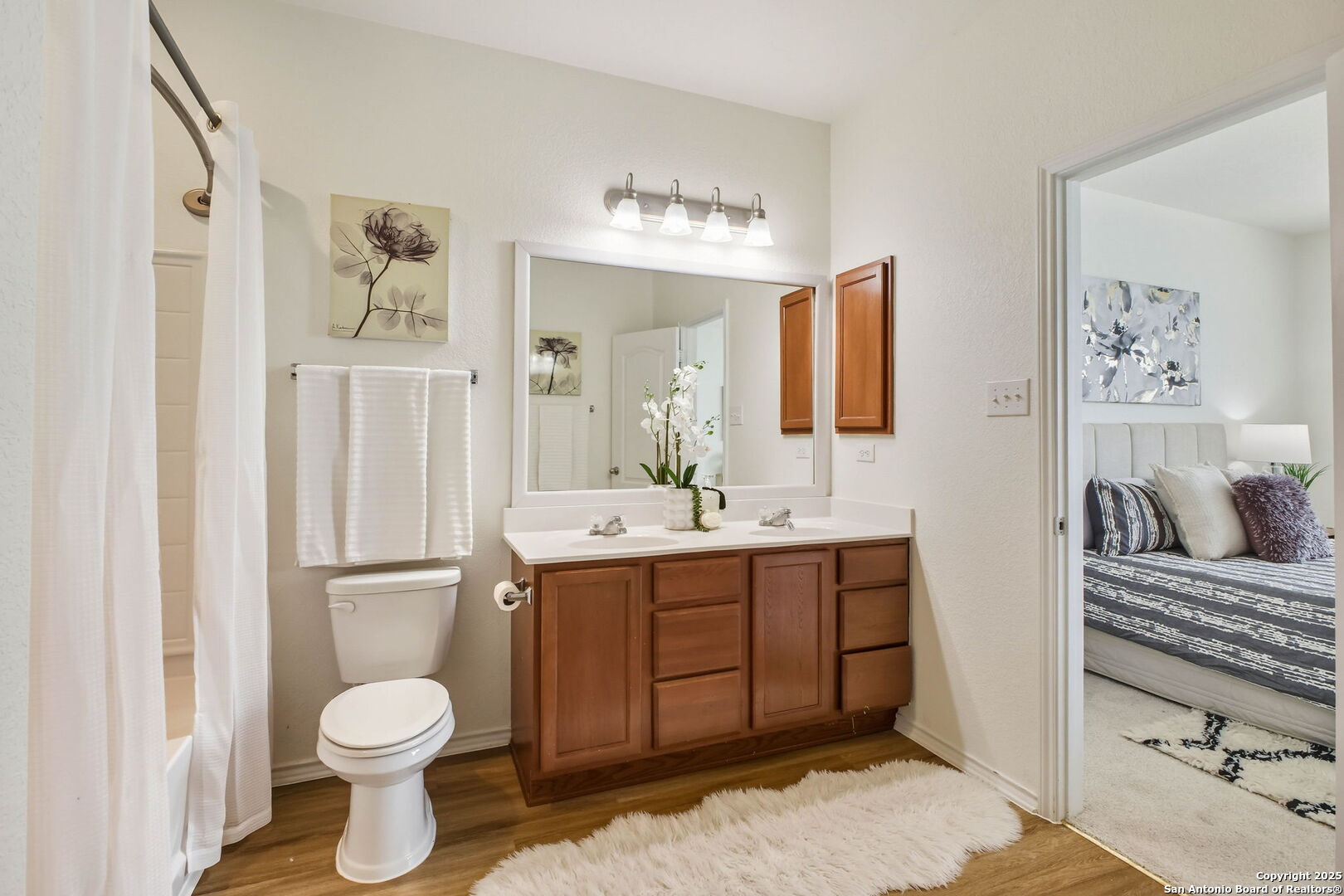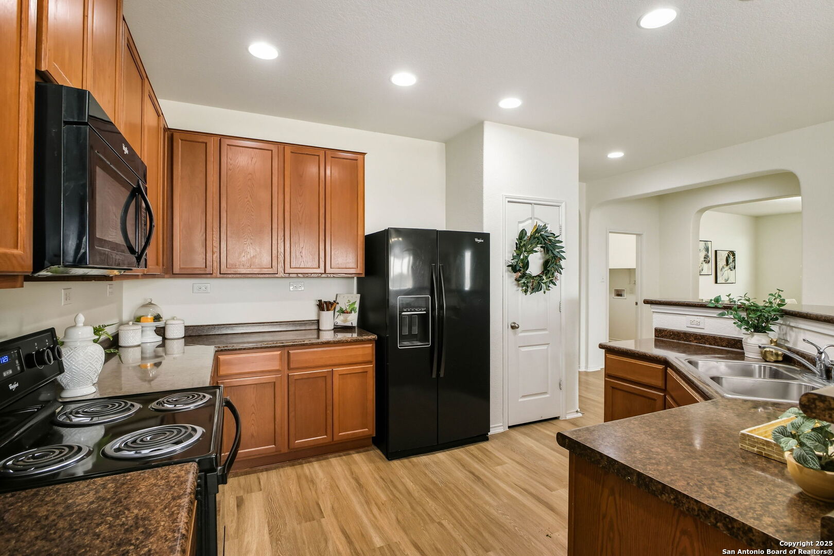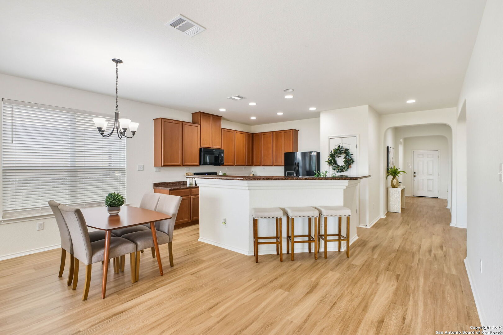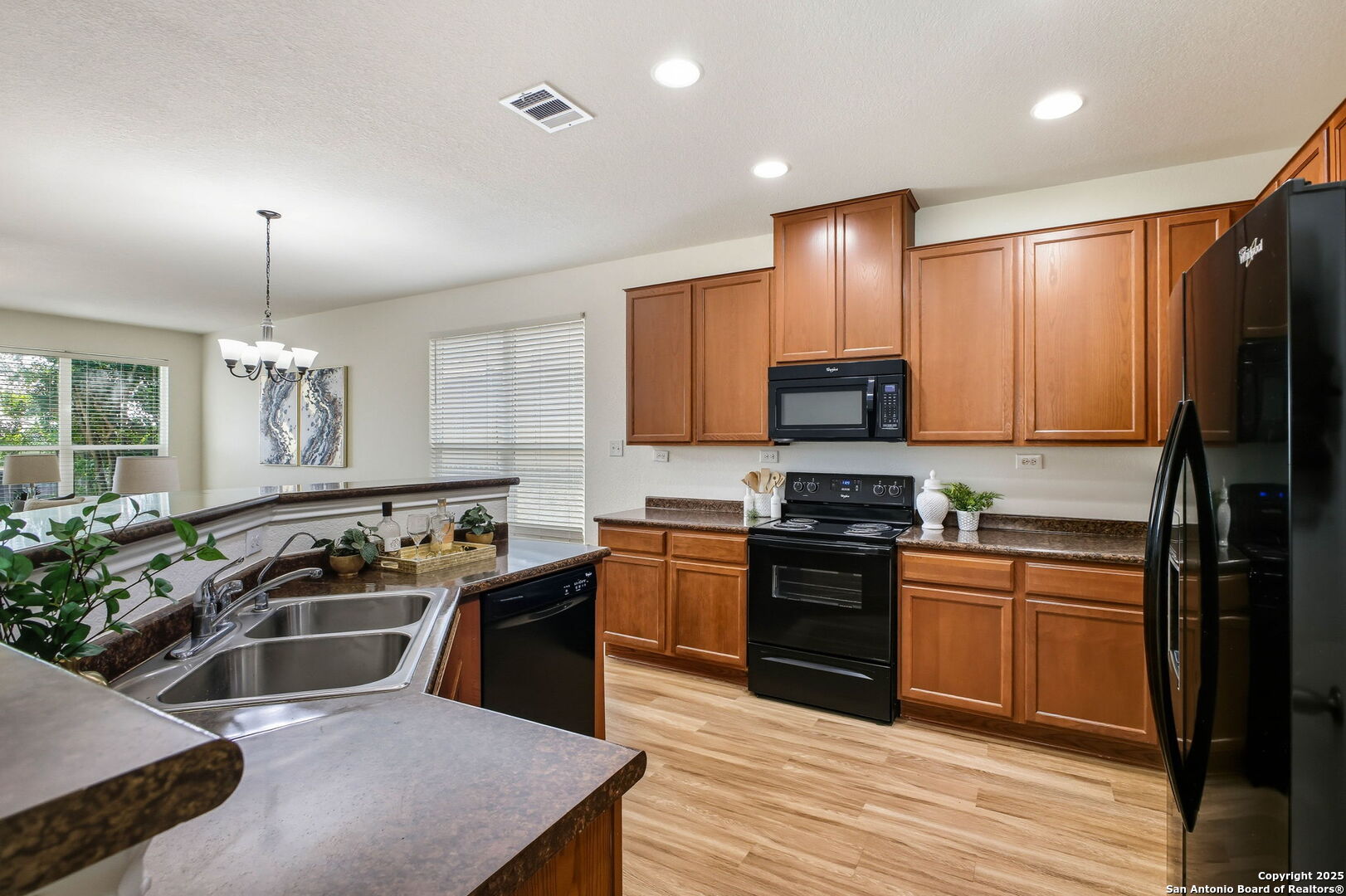 **Open House, Sunday, Nov 2nd, 10AM-12PM** Nestled in the prestigious gated community of the Cobblestone community, this beautifully updated one story home with no back neighbors, offers an inviting open floor plan, featuring new luxury vinyl plank flooring and plush carpet in the bedrooms. The spacious kitchen comes equipped with full appliances and connects seamlessly to the living area, making it perfect for entertaining. A versatile bonus room adds endless possibilities, ideal as a home office, dining area, or playroom. Step outside to your private backyard retreat, where stunning Hill Country views and a thriving orange tree await with no back neighbors. Located in the highly sought after Northside ISD, this home provides quick access to shopping, dining, and essential services just minutes away. This is a rare opportunity. Schedule your showing today!