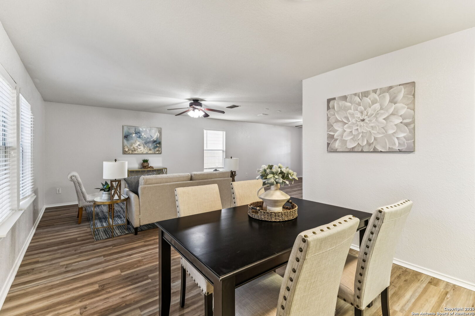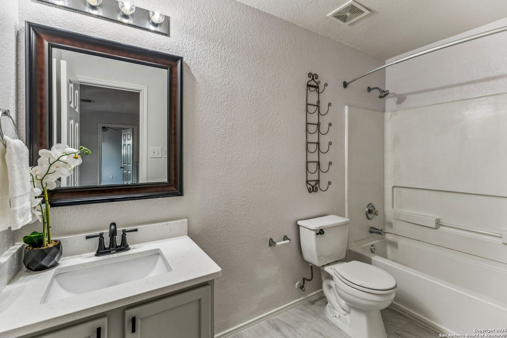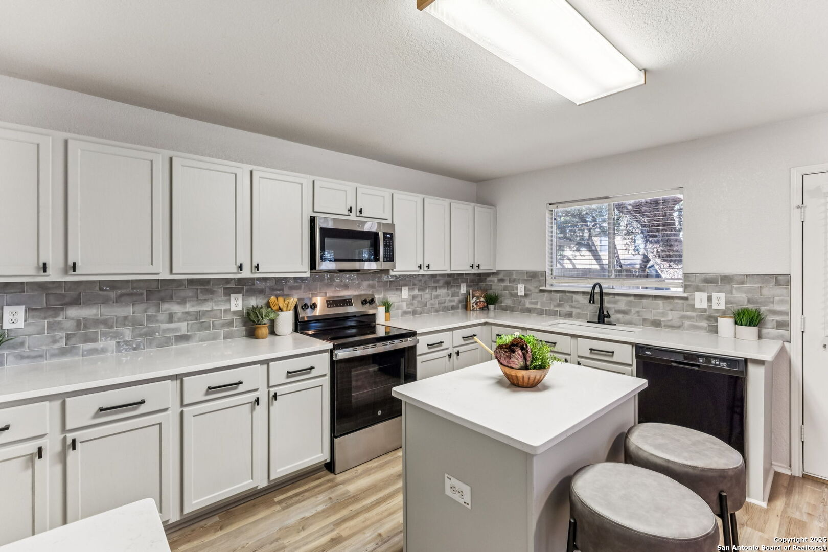 Welcome to this beautifully updated 4-bedroom, 2.5-bath home located in the highly sought-after Lost Creek community-just minutes from IH-10, La Cantera, The Rim, and Boerne. Step inside to discover a bright, modern interior featuring fresh paint throughout, refinished cabinets, and quartz countertops in the kitchen and upstairs baths. The kitchen shines with a designer tile backsplash, open layout, and updated finishes ready for daily living or entertaining. The home features recently installed laminate wood-like flooring across the main living areas and staircases, plus recently installed carpet upstairs for added comfort. HVAC system just installed on October 30th of 2025 ensures year-round efficiency and peace of mind. The thoughtful floor plan includes two spacious living areas, formal and casual dining options, and all bedrooms upstairs-including a generous primary suite with walk-in closet and private bath. A versatile loft offers flexible space for a home office, playroom, or media area. Outside, enjoy a large fenced backyard with plenty of space for gatherings, gardening, or play. Clean landscaping and fresh exterior touch-ups complete the move-in-ready feel. Conveniently located near San Antonio's best shopping, dining, and entertainment, this home combines comfort, updates, and location-everything today's buyer is looking for.