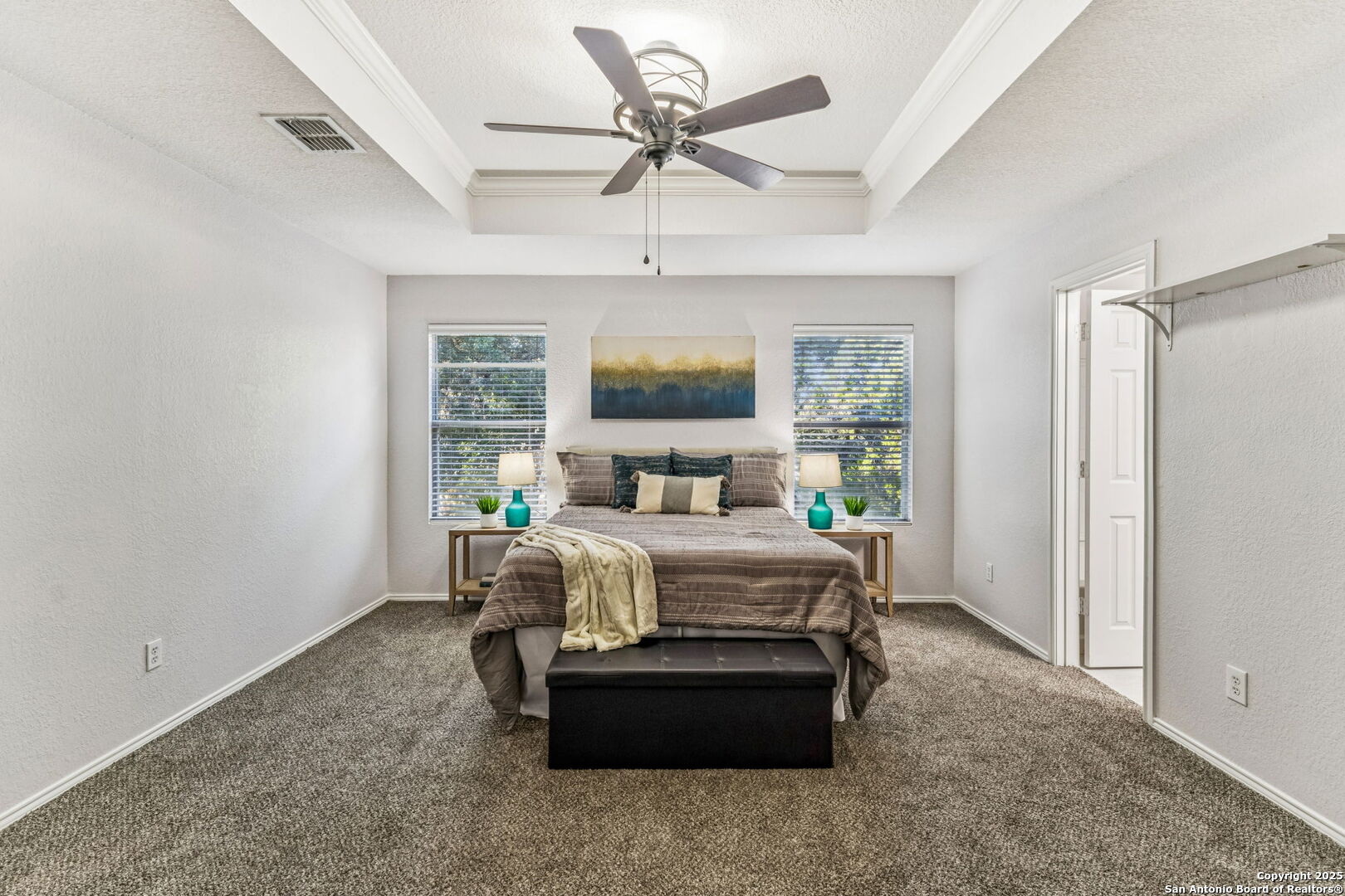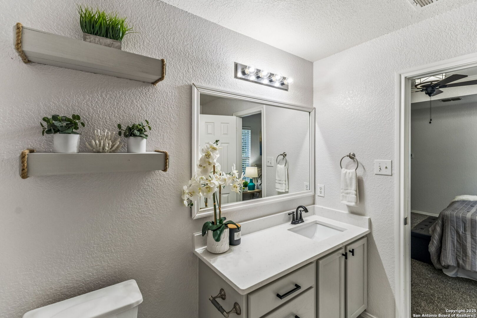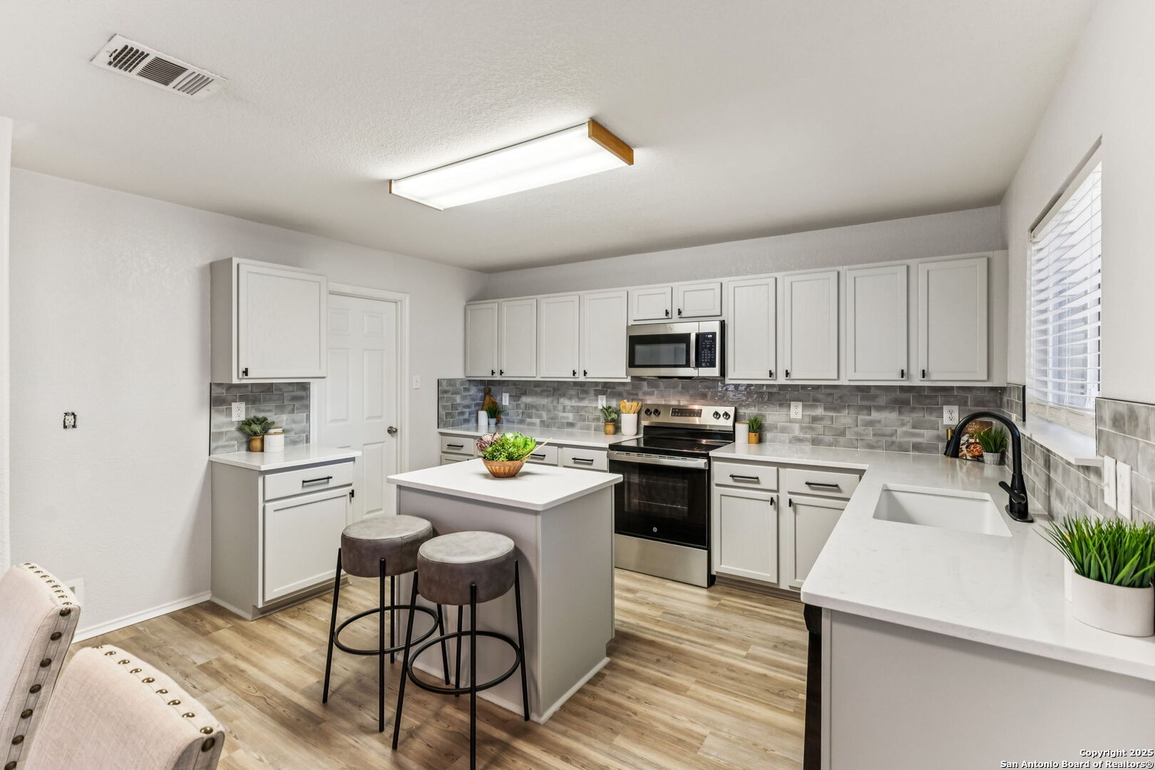 Welcome to this beautifully updated 4-bedroom, 2.5-bath home located in the highly sought-after Lost Creek community-just minutes from IH-10, La Cantera, The Rim, and Boerne. Step inside to discover a bright, modern interior featuring fresh paint throughout, refinished cabinets, and quartz countertops in the kitchen and upstairs baths. The kitchen shines with a designer tile backsplash, open layout, and updated finishes ready for daily living or entertaining. The home features recently installed laminate wood-like flooring across the main living areas and staircases, plus recently installed carpet upstairs for added comfort. HVAC system just installed on October 30th of 2025 ensures year-round efficiency and peace of mind. The thoughtful floor plan includes two spacious living areas, formal and casual dining options, and all bedrooms upstairs-including a generous primary suite with walk-in closet and private bath. A versatile loft offers flexible space for a home office, playroom, or media area. Outside, enjoy a large fenced backyard with plenty of space for gatherings, gardening, or play. Clean landscaping and fresh exterior touch-ups complete the move-in-ready feel. Conveniently located near San Antonio's best shopping, dining, and entertainment, this home combines comfort, updates, and location-everything today's buyer is looking for.