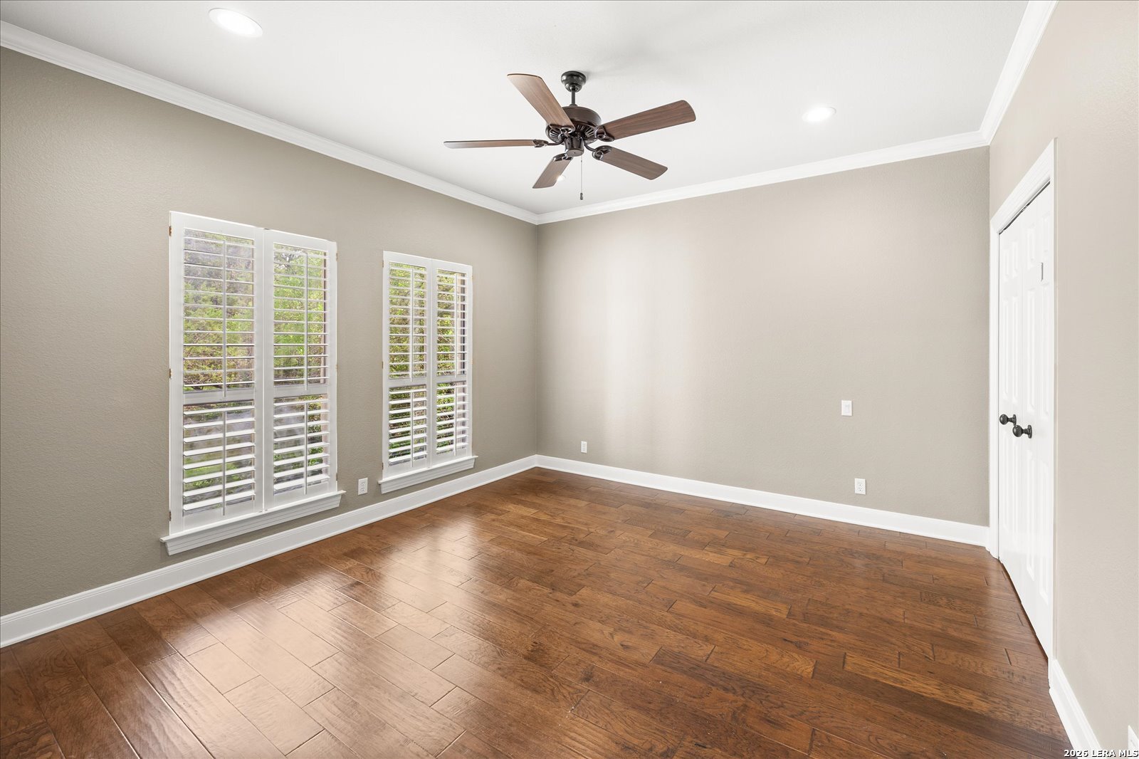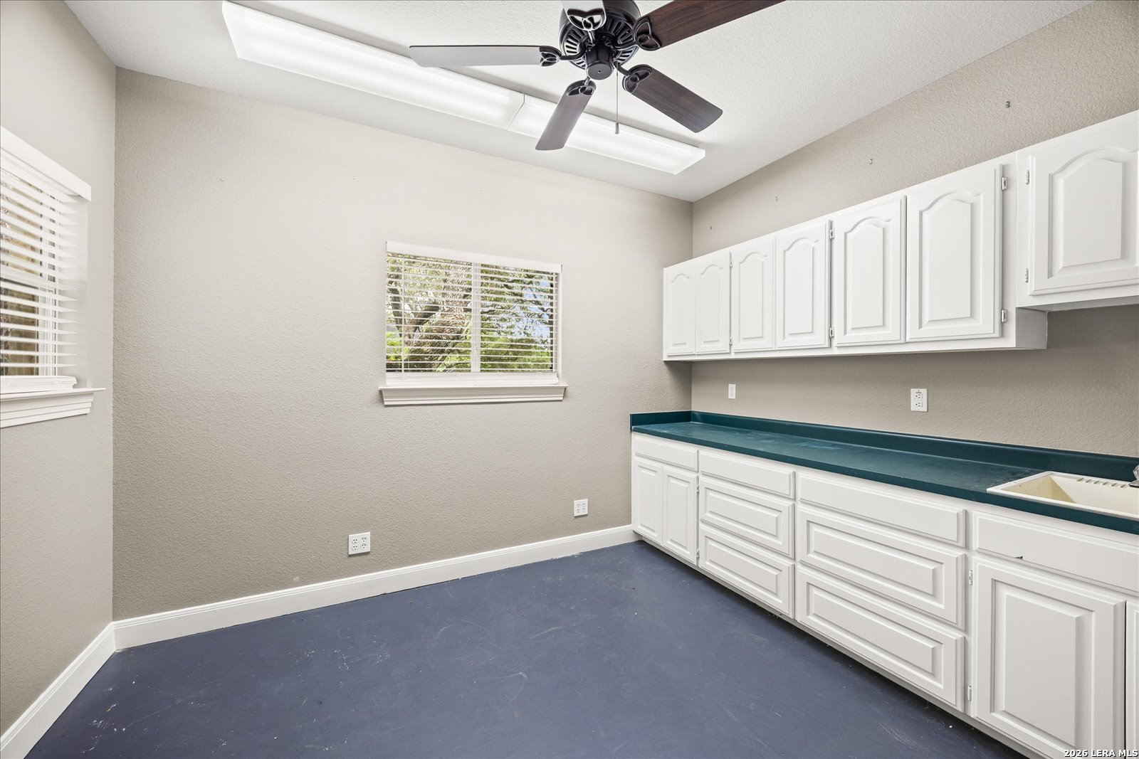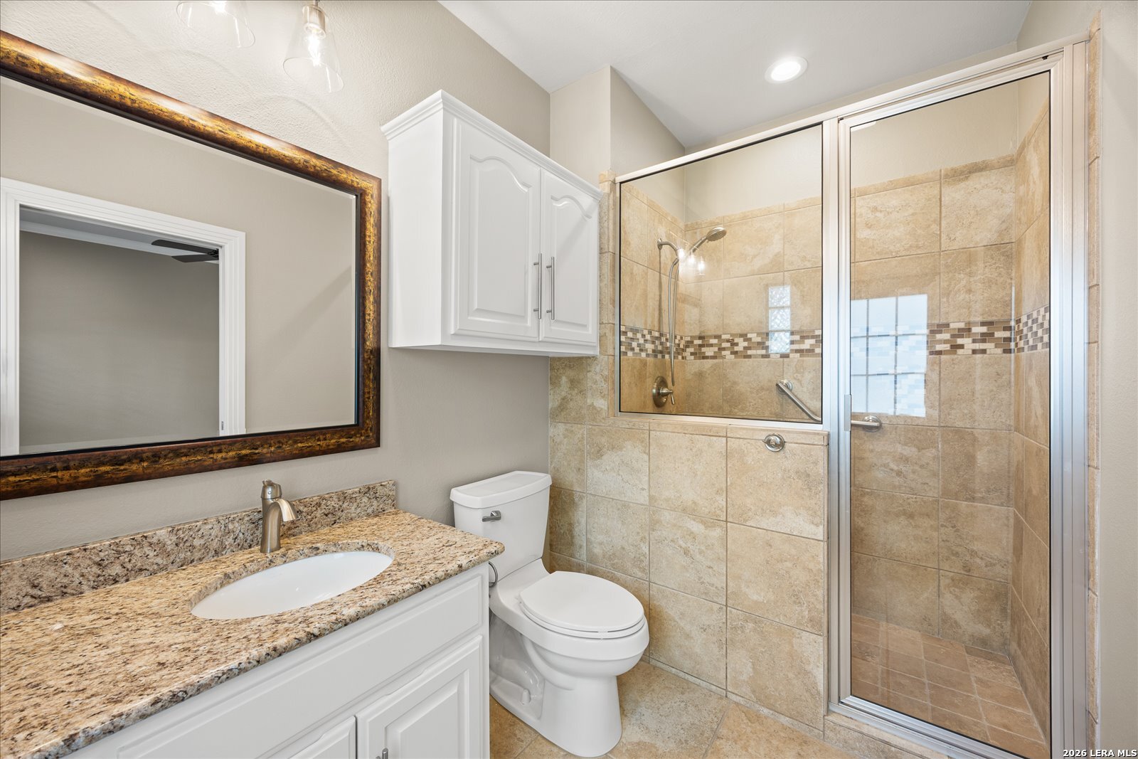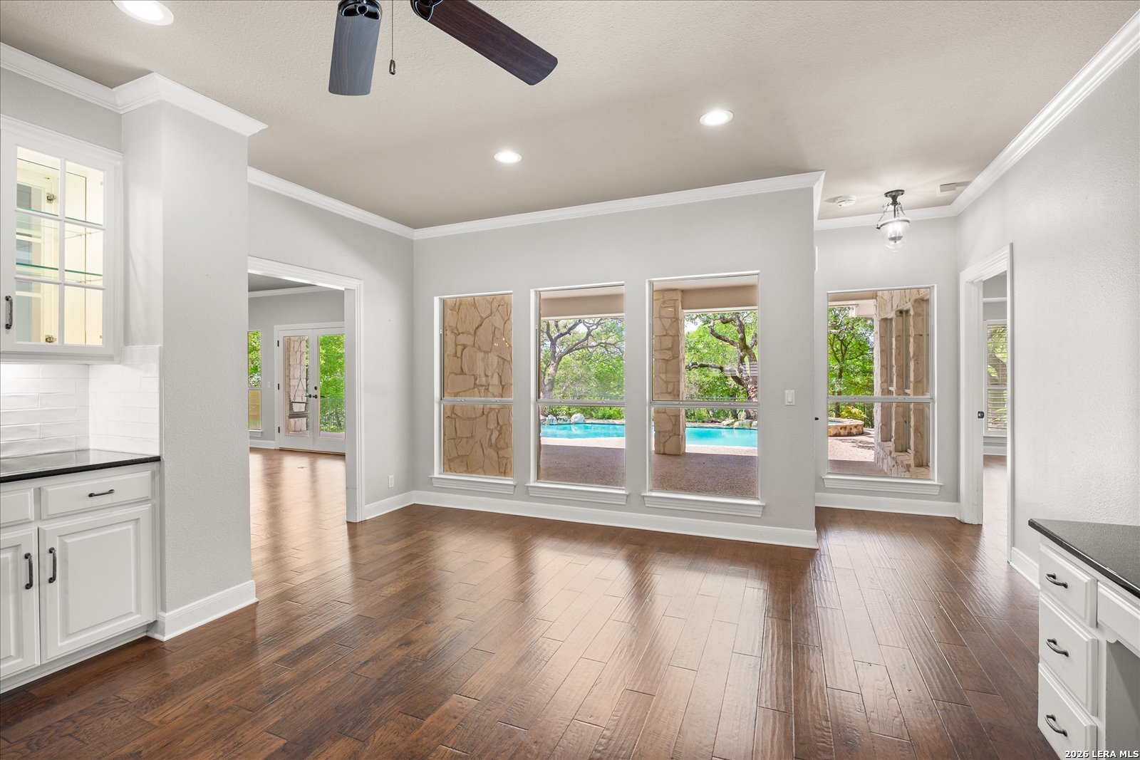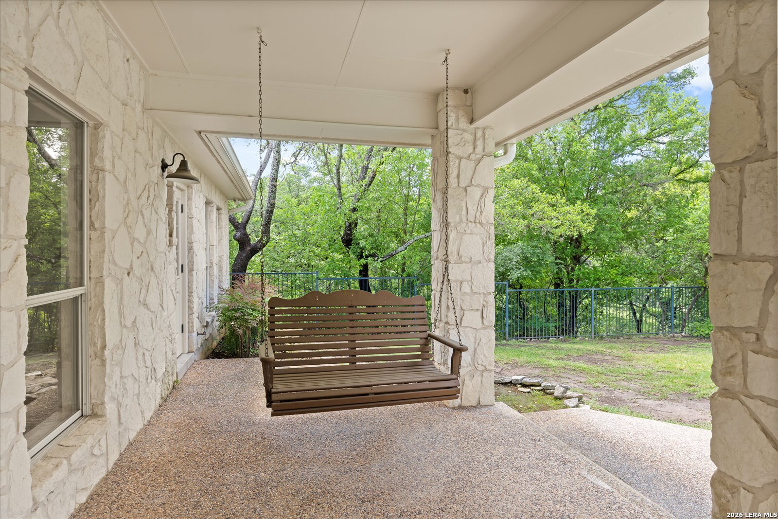 Beautifully updated single-story rock home nestled on a private 1-acre lot in Fair Oaks Ranch, backing to a wooded greenbelt along Cibolo Creek. This 3-bedroom, 3-bath residence offers 2,982 square feet of thoughtfully designed living space with no carpet throughout. The extensively remodeled interior features rich wood flooring, oversized tile, plantation shutters, and custom built-ins. The chef's kitchen is a true centerpiece, showcasing a stunning 4' x 7' granite island, stainless steel appliances, and a GE Monogram gas cooktop-perfect for both everyday living and entertaining. All bathrooms have been tastefully updated with granite and tile finishes. The spacious primary suite offers a spa-like retreat with a large custom closet, walk-in shower, and direct access to the backyard. Additional highlights include an oversized utility room and a climate-controlled flex space in the garage-ideal for a gym, office, or hobby room. Step outside to enjoy the covered patio overlooking a sparkling heated pool and spa, surrounded by mature oak trees and peaceful Hill Country views. With no rear neighbors and direct access to the natural beauty of Cibolo Creek, this property offers exceptional privacy and tranquility. Conveniently located just minutes from the Fair Oaks Ranch Country Club and zoned to highly acclaimed Boerne ISD, this home seamlessly blends luxury, comfort, and location.