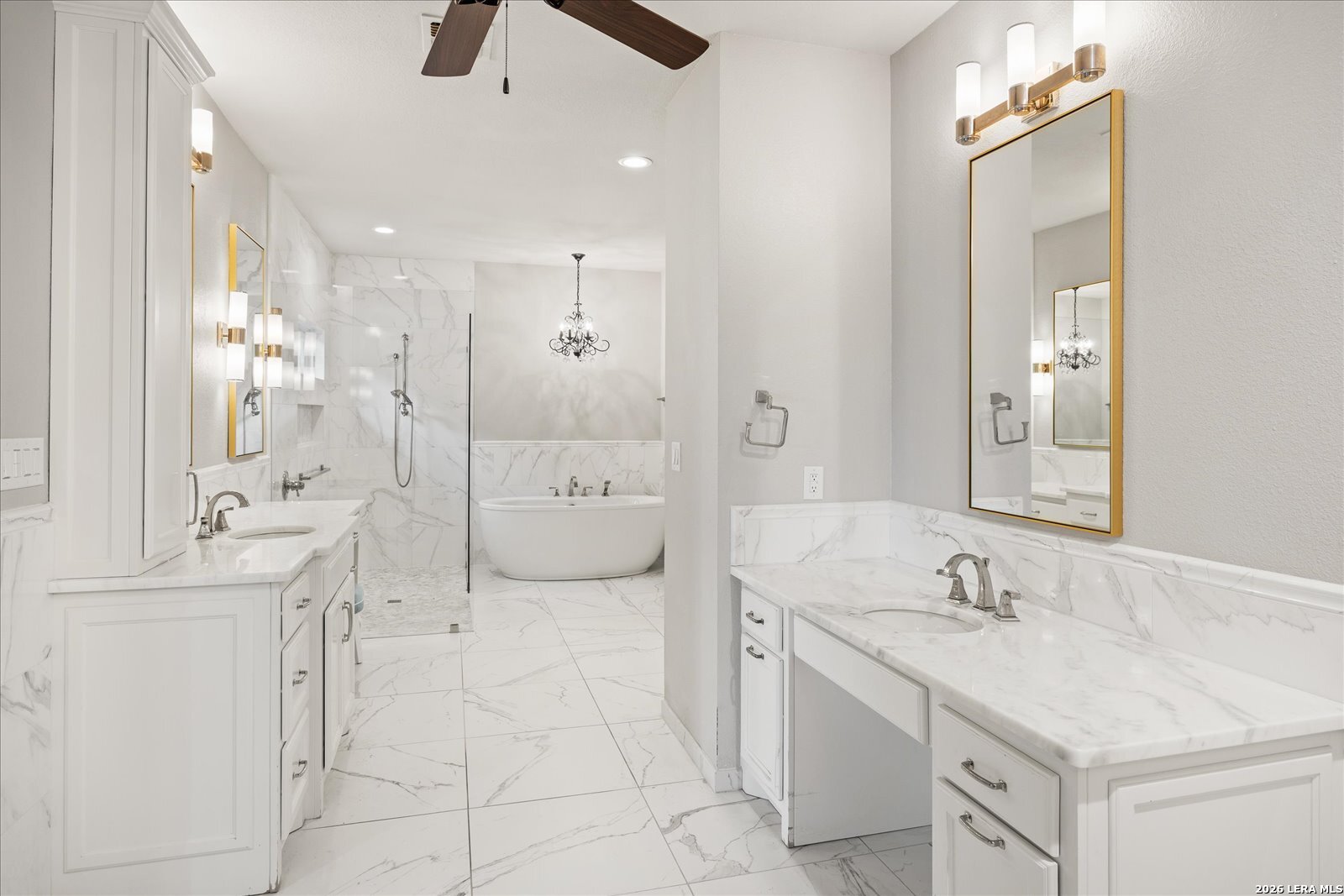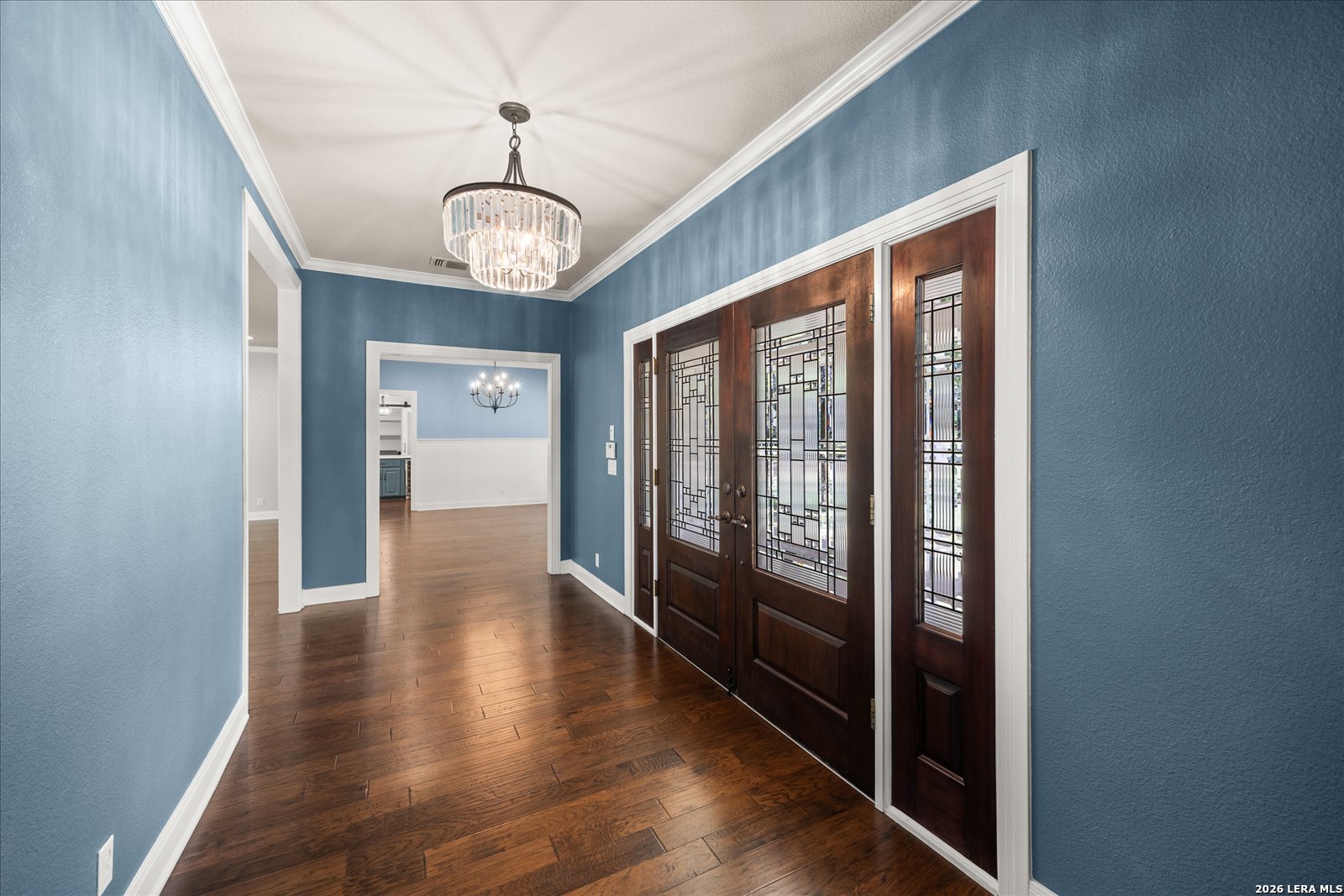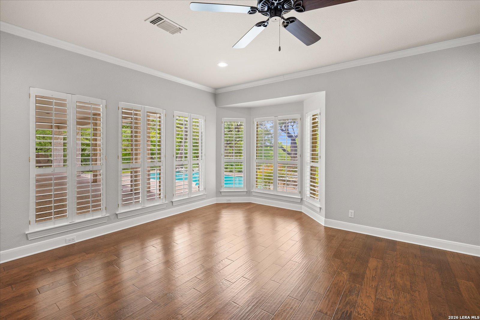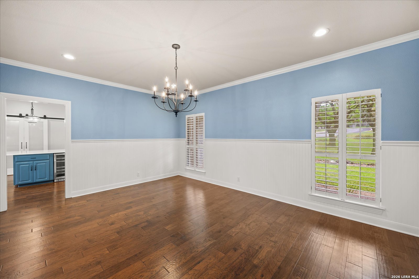 Beautifully updated single-story rock home nestled on a private 1-acre lot in Fair Oaks Ranch, backing to a wooded greenbelt along Cibolo Creek. This 3-bedroom, 3-bath residence offers 2,982 square feet of thoughtfully designed living space with no carpet throughout. The extensively remodeled interior features rich wood flooring, oversized tile, plantation shutters, and custom built-ins. The chef's kitchen is a true centerpiece, showcasing a stunning 4' x 7' granite island, stainless steel appliances, and a GE Monogram gas cooktop-perfect for both everyday living and entertaining. All bathrooms have been tastefully updated with granite and tile finishes. The spacious primary suite offers a spa-like retreat with a large custom closet, walk-in shower, and direct access to the backyard. Additional highlights include an oversized utility room and a climate-controlled flex space in the garage-ideal for a gym, office, or hobby room. Step outside to enjoy the covered patio overlooking a sparkling heated pool and spa, surrounded by mature oak trees and peaceful Hill Country views. With no rear neighbors and direct access to the natural beauty of Cibolo Creek, this property offers exceptional privacy and tranquility. Conveniently located just minutes from the Fair Oaks Ranch Country Club and zoned to highly acclaimed Boerne ISD, this home seamlessly blends luxury, comfort, and location.