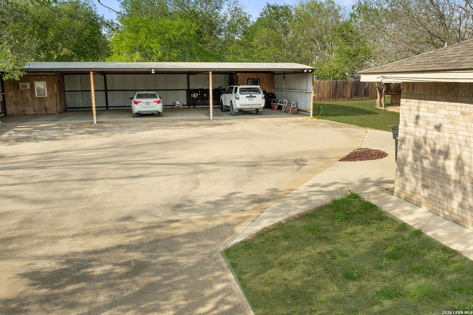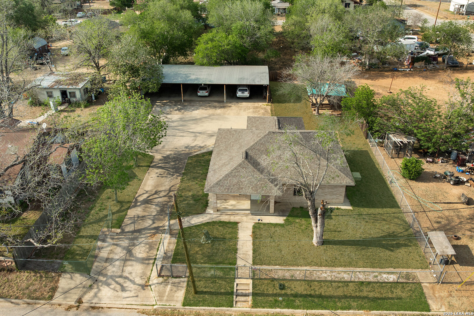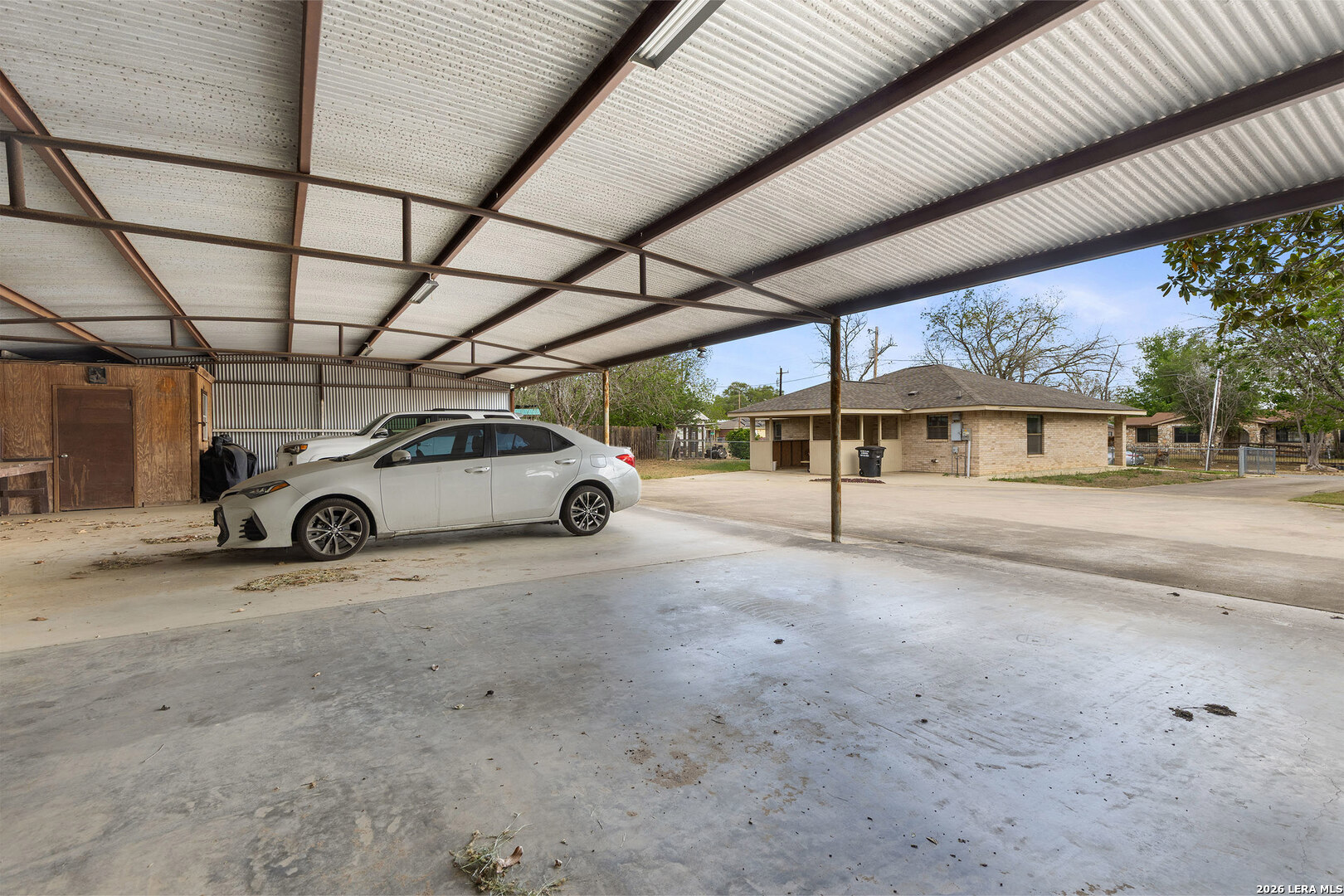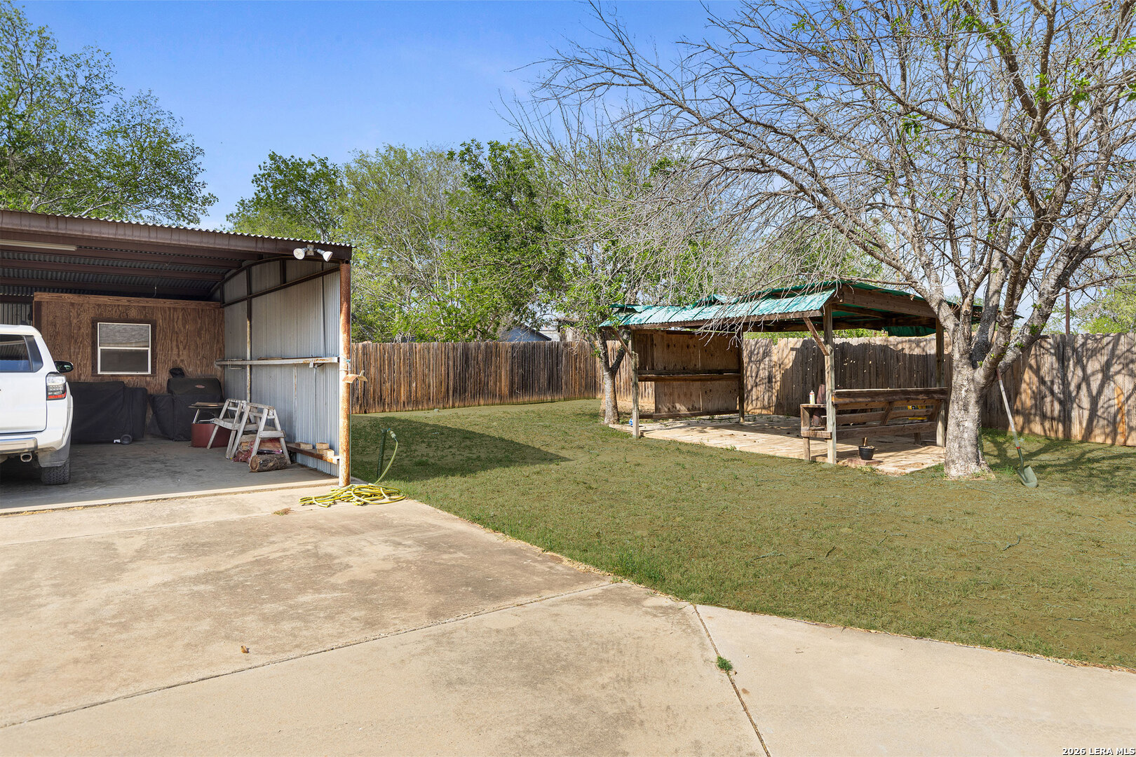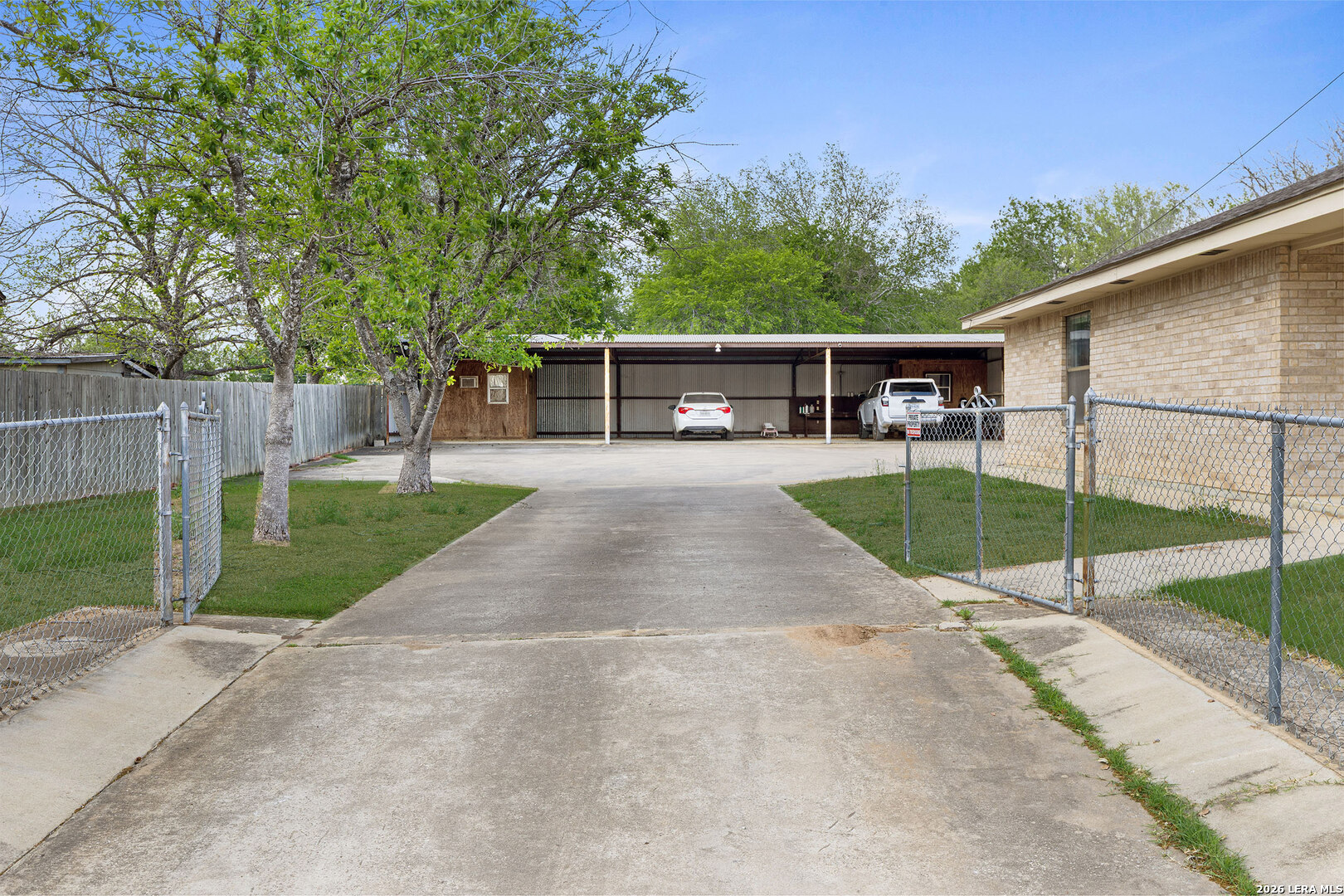Discover the space and flexibility you've been looking for in this charming one story home on a huge oversized lot with endless potential. NO HOA and no restrictions, giving you the freedom to truly make this property your own. Outside, you'll find a 6 car carport with plenty of space for vehicles, work trucks, trailers, or future projects-perfect for anyone needing extra parking or workspace. The property also includes two bonus storage rooms, including a detached space with a window unit that can easily serve as a home gym, workshop, office, or hobby room. Inside, the home features a functional layout with spacious walk-in closets for added storage and convenience. Major updates include the AC system replaced in 2021 and a water heater installed in 2024, offering peace of mind for the next owner.Located in Poteet, known for its small-town charm and the famous Poteet Strawberry Festival, this property offers a peaceful setting while still being a short drive from San Antonio. It's also conveniently close to a local park, perfect for enjoying the outdoors.Don't miss your chance to own a property with this much space, versatility, and freedom. Schedule your showing today!