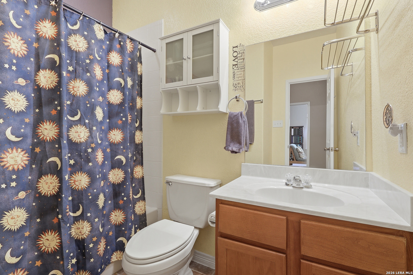 Mornings here begin quietly, with soft sunlight filtering through the windows as you sip your coffee and watch hummingbirds and butterflies drift through the backyard. It's the kind of start that makes you slow down just enough to enjoy the moment before the day begins. As you move through the home, rich hardwood floors guide you into a warm and welcoming living space. A cozy fireplace and built-in bookcase create the perfect setting-whether it's a relaxed evening in or a place to gather with friends. Just beyond, the island kitchen naturally becomes the center of it all, with a built-in oven, cooktop, and microwave thoughtfully arranged so conversations flow easily between the kitchen, dining, and living areas. As the day winds down, the home shifts into a space made for unwinding. You might host dinner around the table or retreat to the primary suite, where French doors open to the patio, inviting in the evening air. A tray ceiling adds character, while the ensuite bath offers a quiet escape with dual vanities, a walk-in shower, and a soaking tub designed for slowing down at the end of the day. Secondary rooms offer the flexibility to fit your life-whether that means hosting guests, working from home, or creating a space for hobbies. Out back, the extended flagstone patio becomes your go-to spot for weekend grilling or peaceful nights under the stars. The backyard feels alive and private, offering a natural backdrop that's both calming and inviting. All of this, just minutes from The Rim and La Cantera, gives you the perfect balance of convenience and retreat-where everything you need is close, but home still feels like your own private escape. Please be aware some photos have been virtually staged.