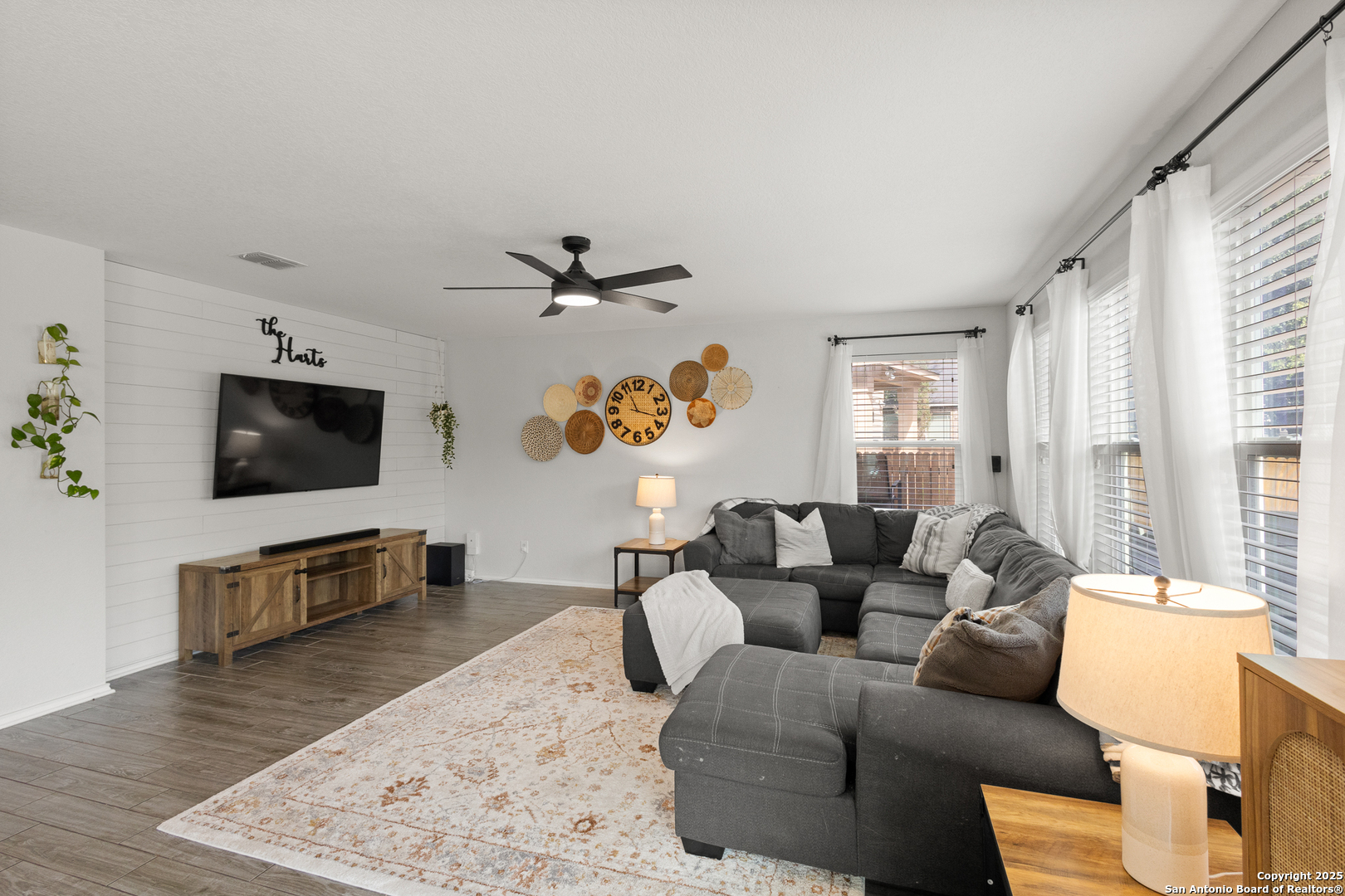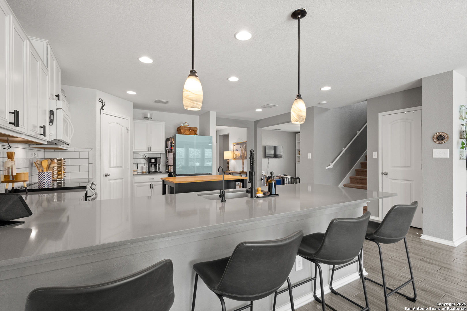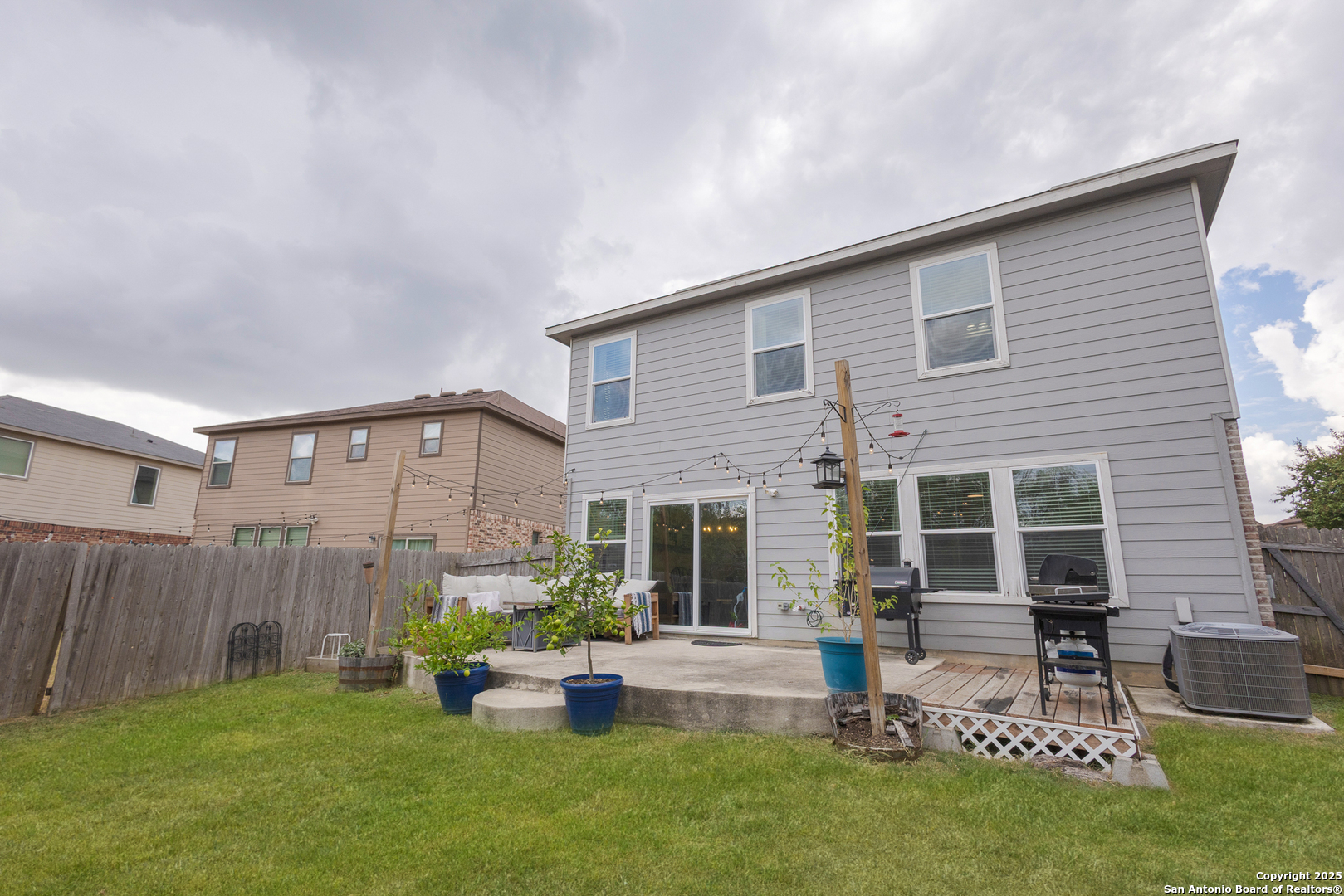 *ASSUMABLE VA LOAN @ 3.99% RATE* Welcome to 7650 Heavenly Arbor, nestled in the desirable Cross Creek community on San Antonio's Northwest side. This charming two-story home offers 3 bedrooms, 2.5 baths, and a versatile bonus room downstairs-perfect for an office, playroom, or flex space. The inviting open-concept layout showcases wood-look tile flooring throughout the main areas and a beautifully designed kitchen that exudes modern farmhouse style. Enjoy quartz countertops, subway tile backsplash, black hardware and fixtures, and a brand-new stainless steel stove-ideal for entertaining or cooking your favorite meals. Upstairs, you'll find all bedrooms along with a spacious loft area and a conveniently located laundry room, eliminating the hassle of carrying laundry up and down the stairs. The serene primary suite offers comfort and privacy, while the secondary bedrooms are well-sized for family or guests. Step outside to your private backyard oasis overlooking a peaceful greenbelt-perfect for relaxing on your patio and enjoying quiet evenings. Located just minutes from Alamo Ranch Shopping Center, Casablanca Theatre, HEB, and major highways including Loop 1604, Hwy 151, and FM 1560, this home combines comfort and convenience. Outside city limits-this property qualifies for USDA financing with $0 money down! Don't miss your opportunity to own this move-in ready home in one of the most sought-after areas of Northwest San Antonio.