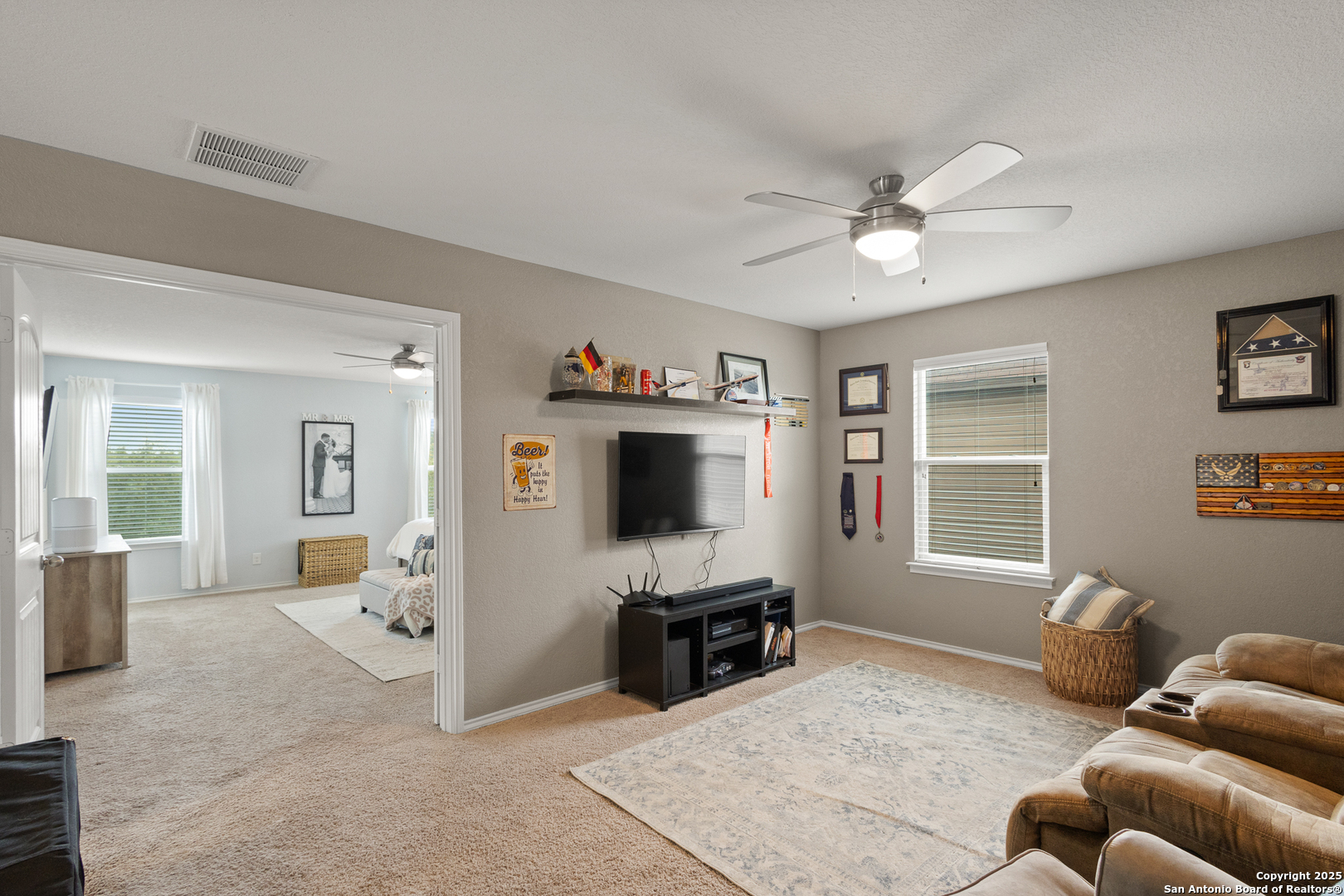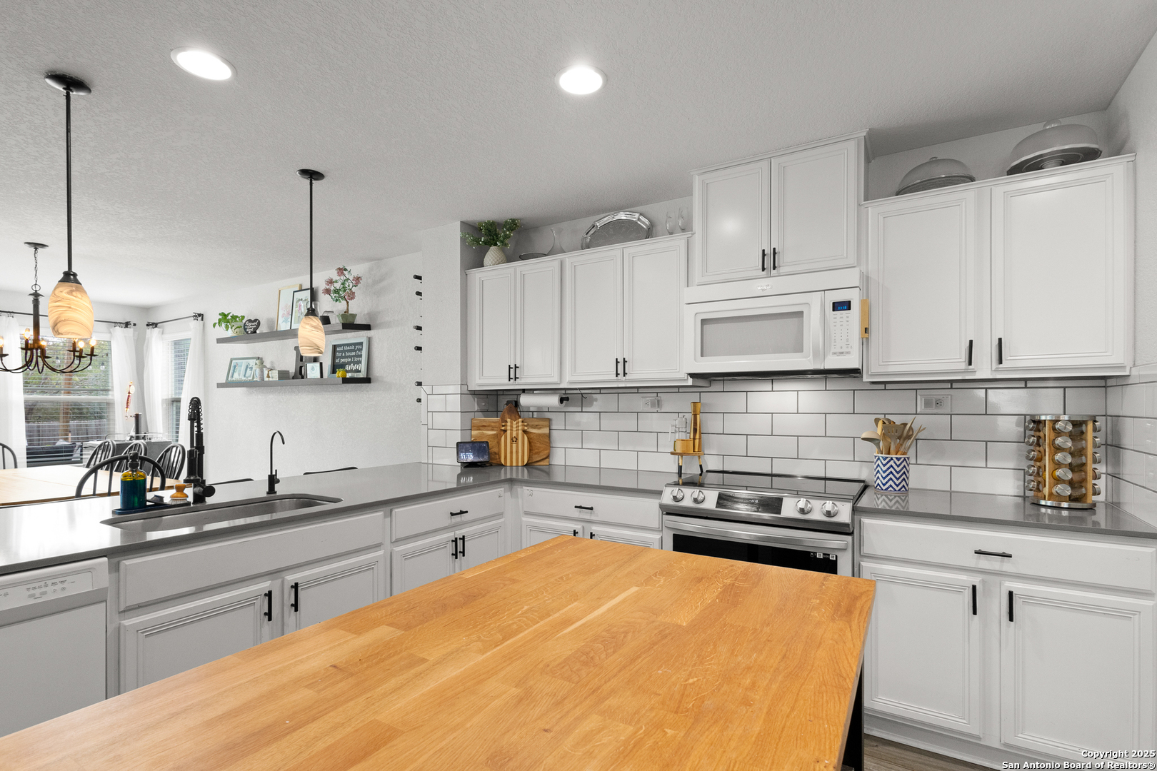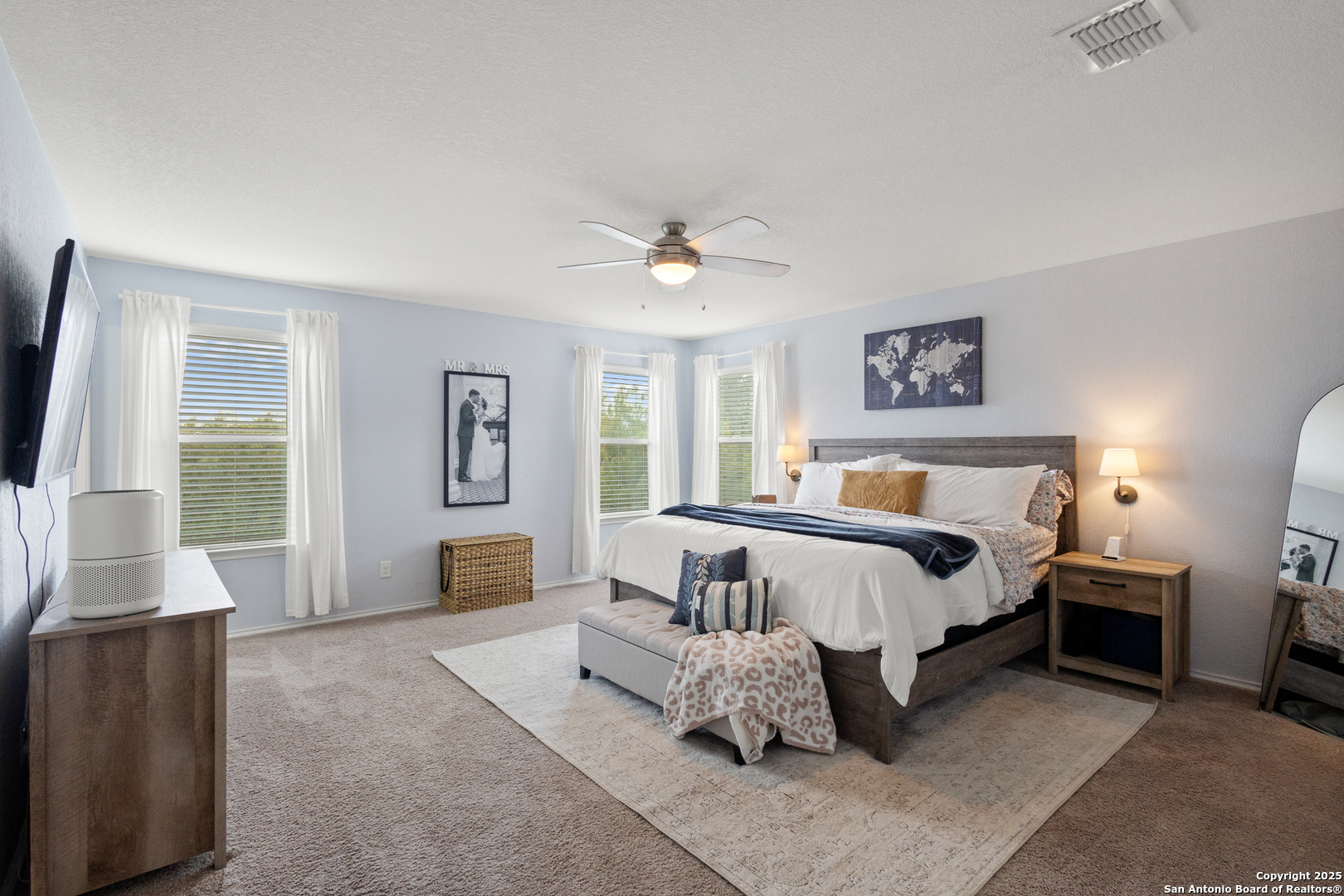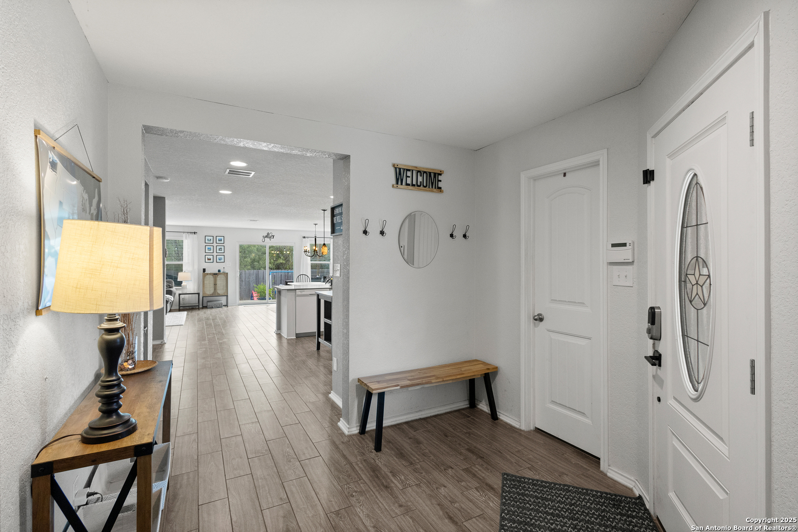 *ASSUMABLE VA LOAN @ 3.99% RATE* Welcome to 7650 Heavenly Arbor, nestled in the desirable Cross Creek community on San Antonio's Northwest side. This charming two-story home offers 3 bedrooms, 2.5 baths, and a versatile bonus room downstairs-perfect for an office, playroom, or flex space. The inviting open-concept layout showcases wood-look tile flooring throughout the main areas and a beautifully designed kitchen that exudes modern farmhouse style. Enjoy quartz countertops, subway tile backsplash, black hardware and fixtures, and a brand-new stainless steel stove-ideal for entertaining or cooking your favorite meals. Upstairs, you'll find all bedrooms along with a spacious loft area and a conveniently located laundry room, eliminating the hassle of carrying laundry up and down the stairs. The serene primary suite offers comfort and privacy, while the secondary bedrooms are well-sized for family or guests. Step outside to your private backyard oasis overlooking a peaceful greenbelt-perfect for relaxing on your patio and enjoying quiet evenings. Located just minutes from Alamo Ranch Shopping Center, Casablanca Theatre, HEB, and major highways including Loop 1604, Hwy 151, and FM 1560, this home combines comfort and convenience. Outside city limits-this property qualifies for USDA financing with $0 money down! Don't miss your opportunity to own this move-in ready home in one of the most sought-after areas of Northwest San Antonio.