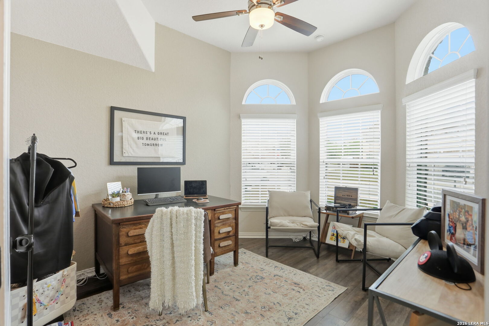 Located in the highly sought-after Heights of Lost Creek in Boerne, this one-story home offers 3 bedrooms, 2 bathrooms, and 1,665 sqft of comfortable living space with a dedicated office. The layout is open and functional, with the kitchen sitting at the center and flowing into the main living area. The kitchen features granite countertops and an oversized 8x4 island, giving you plenty of space for cooking, gathering, or everyday use. There's no carpet throughout the home, creating a clean, low-maintenance feel from room to room. The backyard offers a great amount of space to enjoy, whether that's for pets, entertaining, or simply relaxing outside. Several updates have already been completed, including a roof that's about 3 years old, new microwave and dishwasher, gutters, and updated fans and light fixtures throughout. The water softener and garage door opener were installed in 2017. A unique detail to note, the shiplap under the kitchen island was sourced from an old barn off Boerne Stage Rd, adding a bit of character to the space. Conveniently located with easy access to IH-10 and just minutes from Loop 1604 and La Cantera, making shopping, dining, and daily commutes simple. Schedule your showing today!