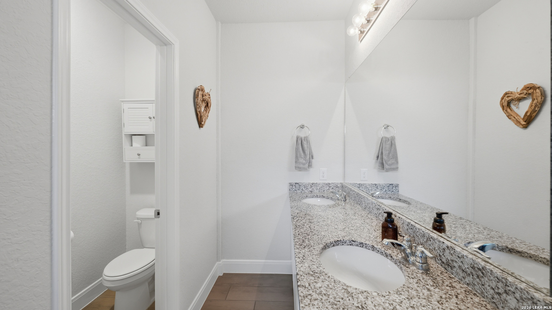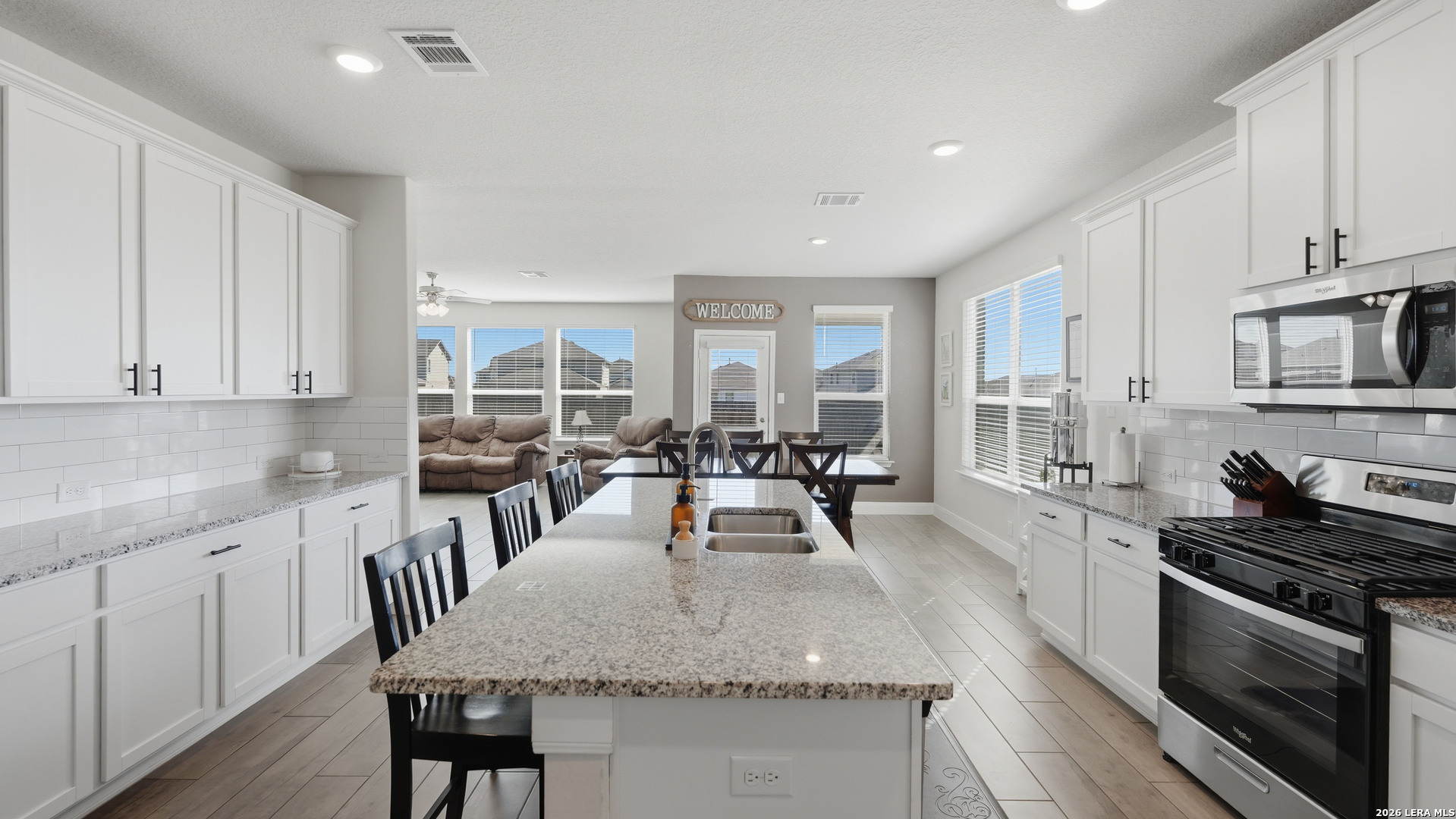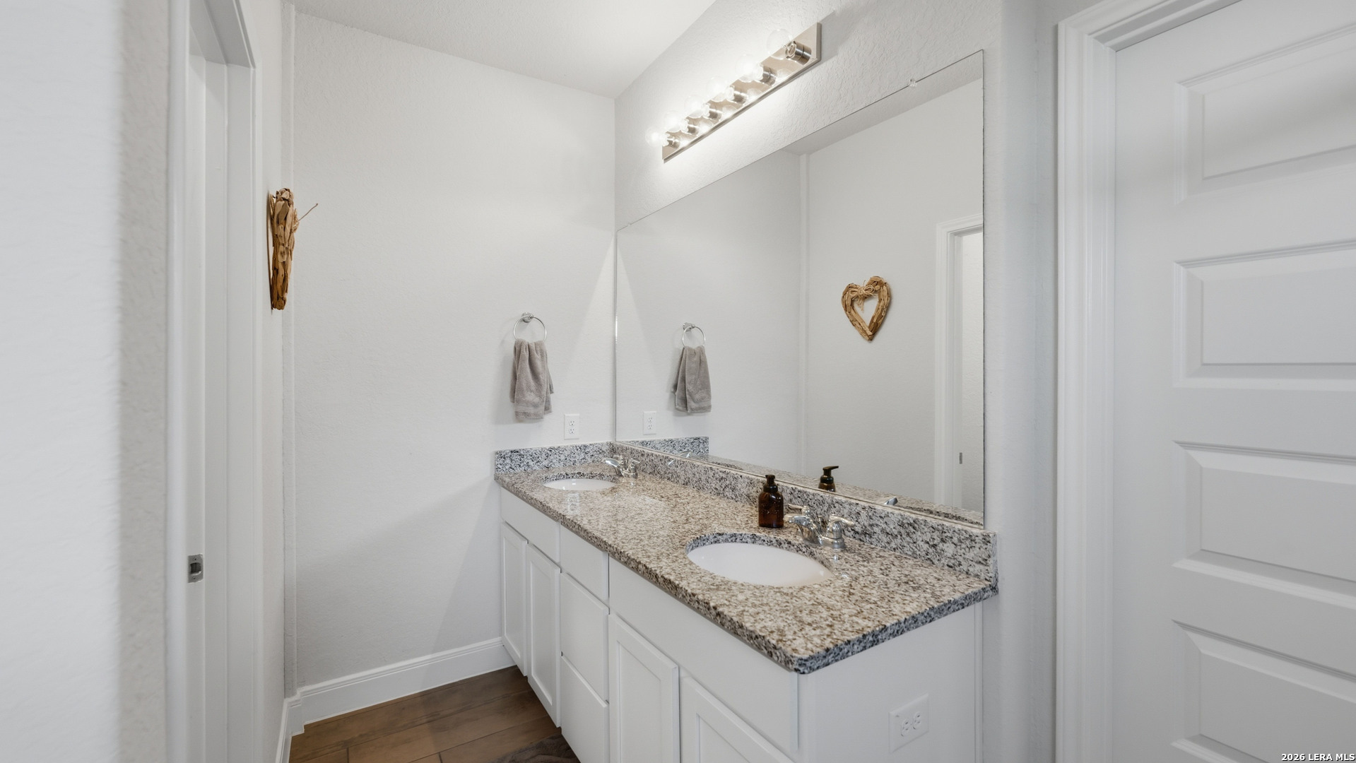 Welcome to this spacious home in the desirable Steele Creek community. The main level offers a functional layout with a dedicated office featuring double glass doors, a formal dining area, and an open-concept living space designed for comfortable everyday living. The kitchen features a large island, granite countertops, gas stove, plenty of cabinet storage, and generous countertop space, making it perfect for both cooking and entertaining. Additional storage can be found throughout the home, including a convenient closet located in the living area. High ceilings create a bright and open feel, while a practical mud area adds everyday convenience. The primary suite is privately located on the main level and features dual closets, a double vanity, and a separate soaking tub and shower for a relaxing retreat. Upstairs you'll find the additional bedrooms along with a massive loft that provides excellent flexibility for a second living area, game room, or study space. One of the upstairs bedrooms includes its own en-suite bathroom, making it ideal for guests or added privacy. The media room, wired for surround sound, can also function as a fifth bedroom depending on your needs. The backyard offers added privacy with no rear neighbors, creating a peaceful setting to relax or entertain. Located within walking distance to the local high school and close to community amenities including a pool, basketball court, playground, and walking trails. One of the larger floor plans in the Steele Creek community, this home offers the space, layout, storage, and flexibility buyers are looking for. Conveniently located near grocery stores, local coffee shops, dining, and entertainment, while still offering an easy commute of approximately 20 minutes to Randolph Air Force Base.
