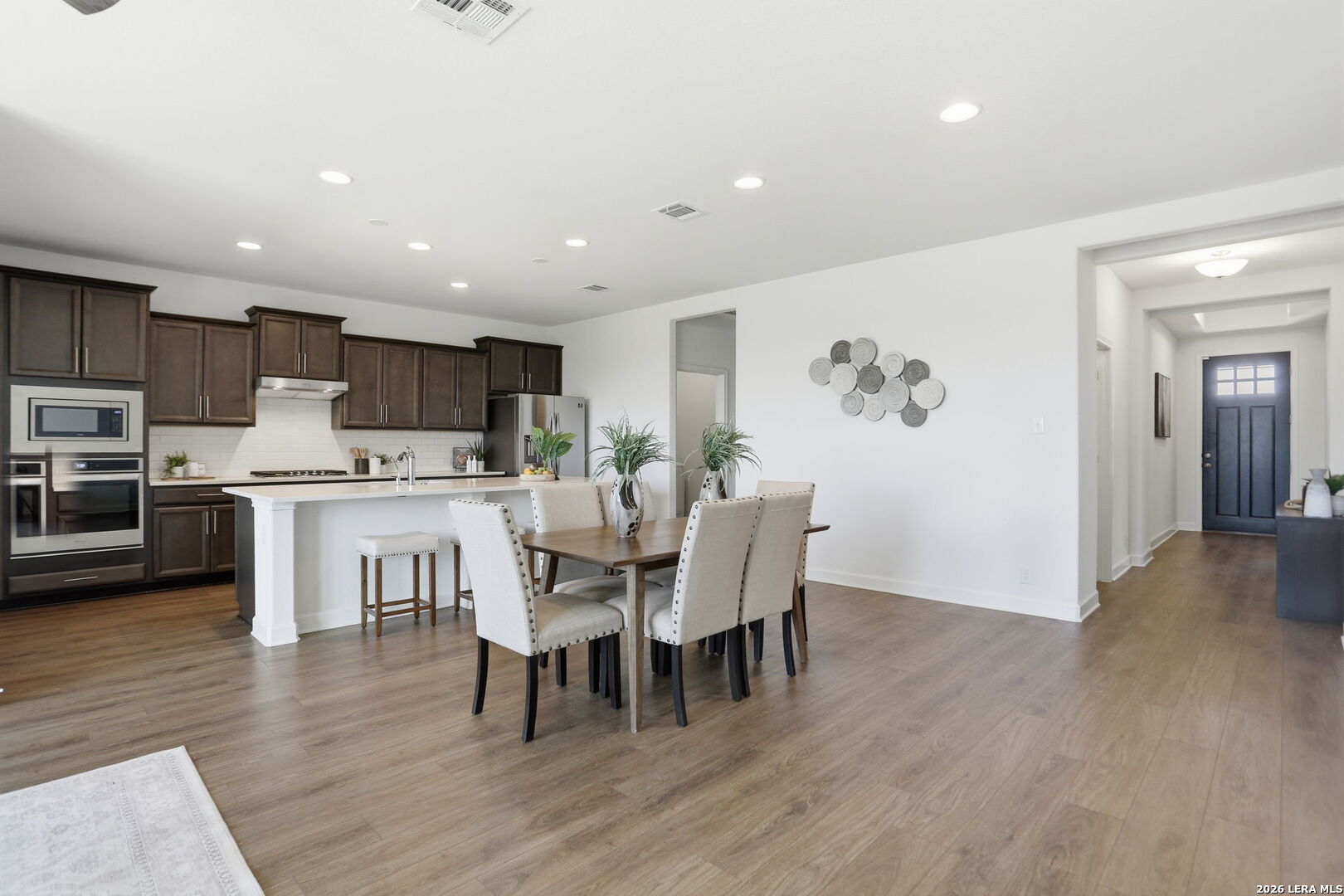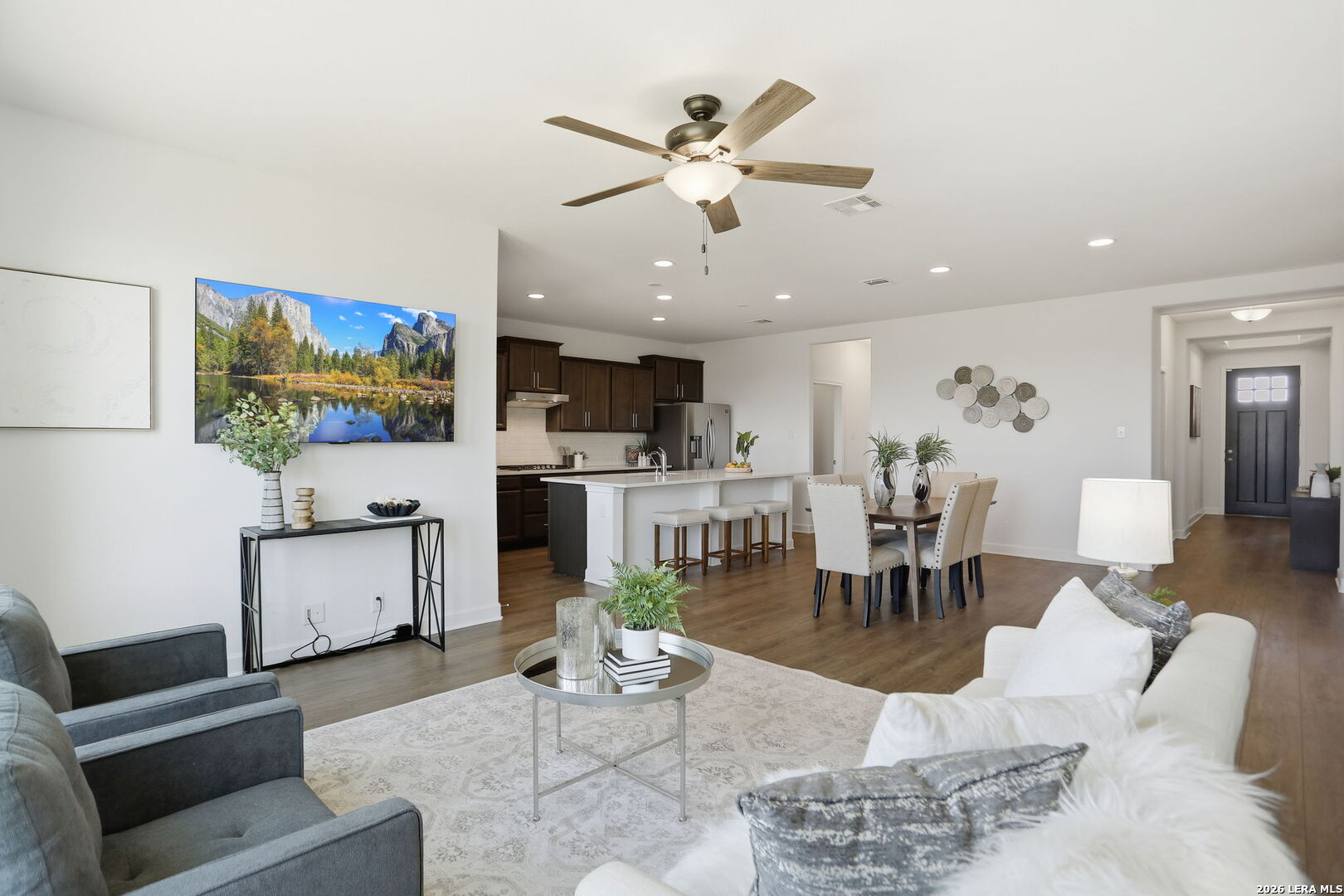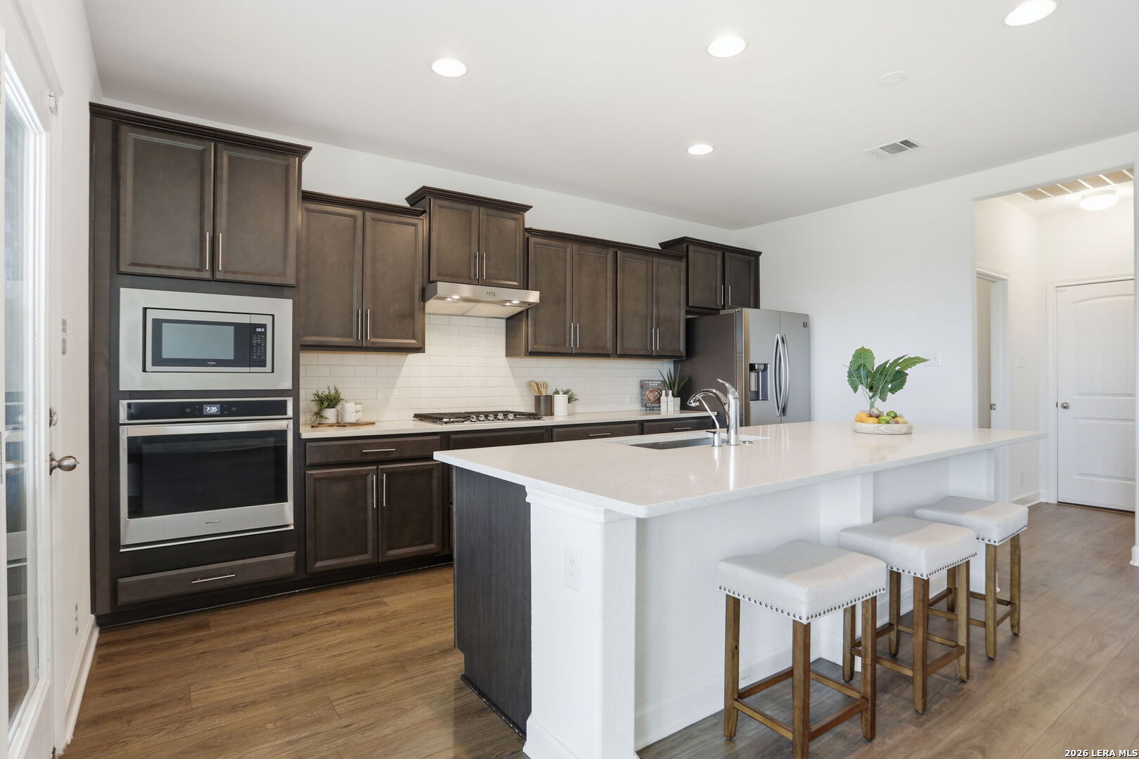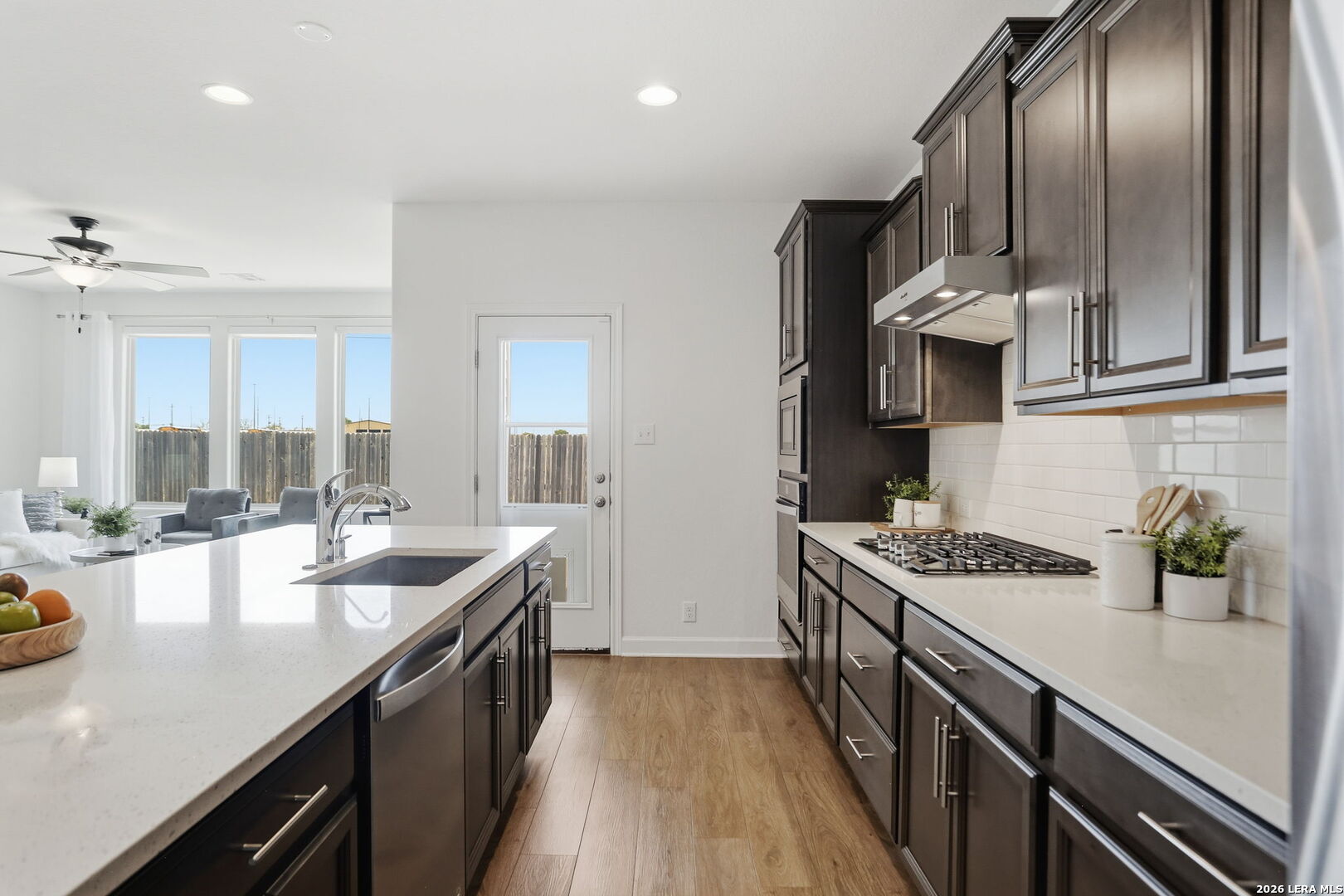 Welcome to this beautifully maintained single story home in the desirable community of Waterford Park, where comfort, style, and thoughtful upgrades come together effortlessly. From the moment you arrive, you will notice the pride of ownership throughout. This 3 bedroom, 2.5 bath home with a 2 car garage feels like new and has been meticulously cared for, offering a move in ready experience for its next owners. Step inside to an inviting open concept layout designed for both everyday living and entertaining. The kitchen is truly the heart of the home, featuring a large oversized silestone (high performing quartz) island, stunning quartz countertops, custom cabinetry with upgraded hardware, deep sink paired with an upgraded faucet, a water filtration system and gas cooking, perfect for those who love to cook and gather. Every detail has been thoughtfully selected to create a space that is both functional and beautiful. The spacious primary suite offers a private retreat, complete with a spa like bathroom featuring dual vanities, a large walk-in shower, and an oversized walk-in closet that provides ample storage. Additional highlights include brand new carpet, an 8 ft. custom front door that adds to the home's curb appeal, a landscaped front yard and a layout that flows seamlessly throughout. Enjoy added privacy with no backyard neighbors, creating a peaceful setting perfect for relaxing evenings or weekend gatherings. Homes like this, with this level of care, upgrades, and location, do not come around often. This is one you truly have to see in person to appreciate.