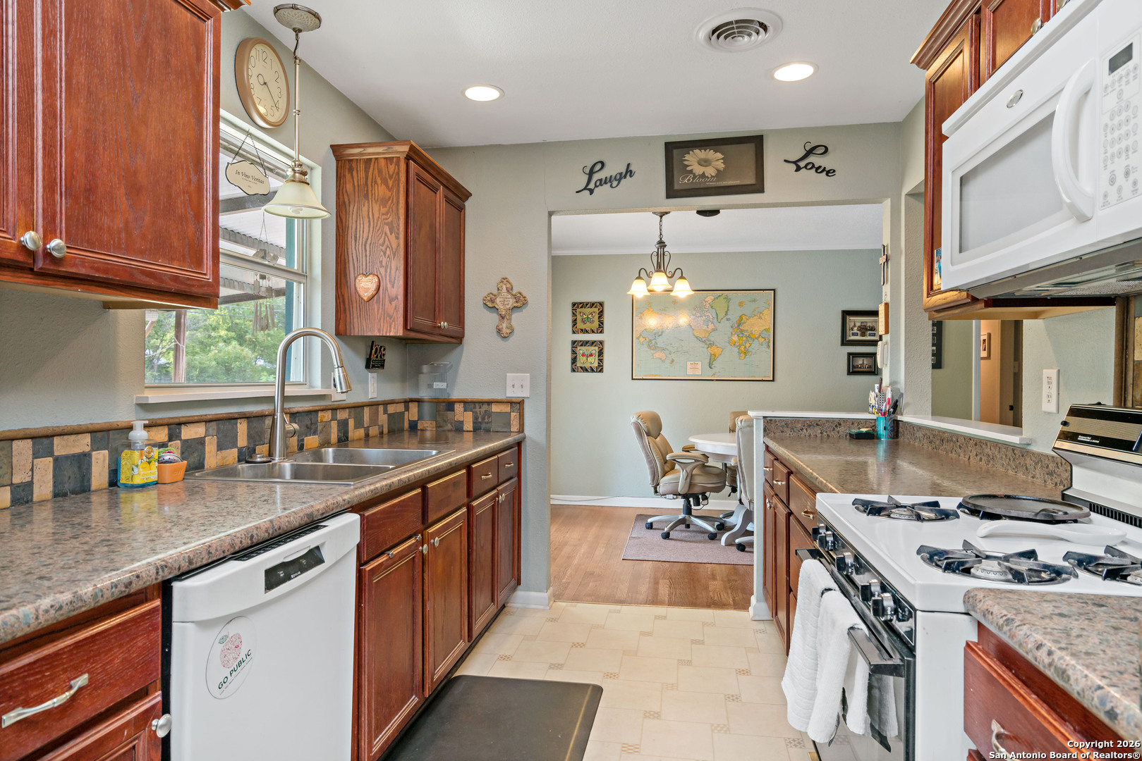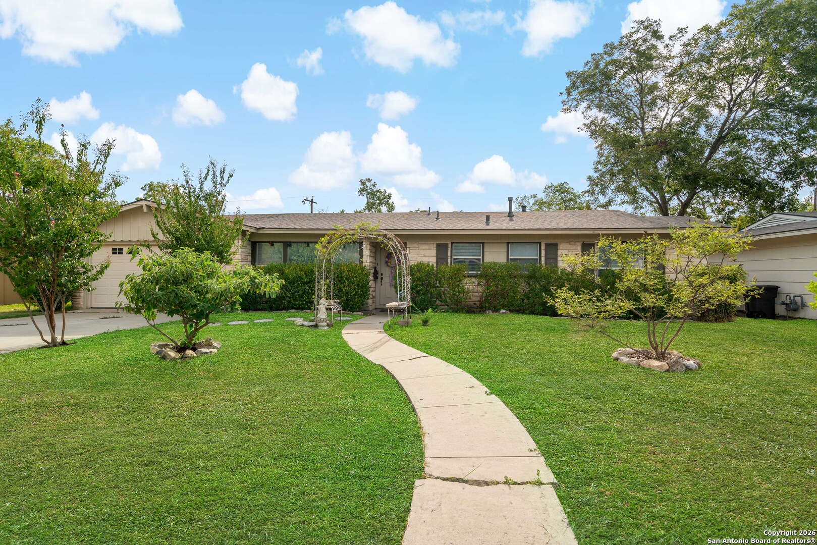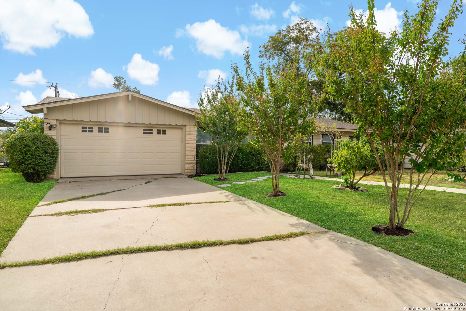 Welcome to 7706 Mertz Dr. Experience cozy living in this newly listed, single-story retreat, featuring a seamless open-concept layout offering 3 bedrooms, 2 baths, oversized 2-car garage, and an expansive backyard oasis designed for unforgettable family gatherings. No HOA. Conveniently located in central San Antonio, this cute home is a hop, skip and a jump away from various parks, golf courses, Airport, the Pearl, Zoo, Botanical Gardens and other downtown amenities. Just off Hwy 281 and Loop 410. Fresh paint in some rooms, orig. hardwood floors, with the following upgrades made within the last 5 years: roof, water heater & dishwasher. Ceiling fans in all bedrooms & living area. No carpet. Crown molding. Contemporary kitchen with lots of storage. Don't wait, make your appointment today!