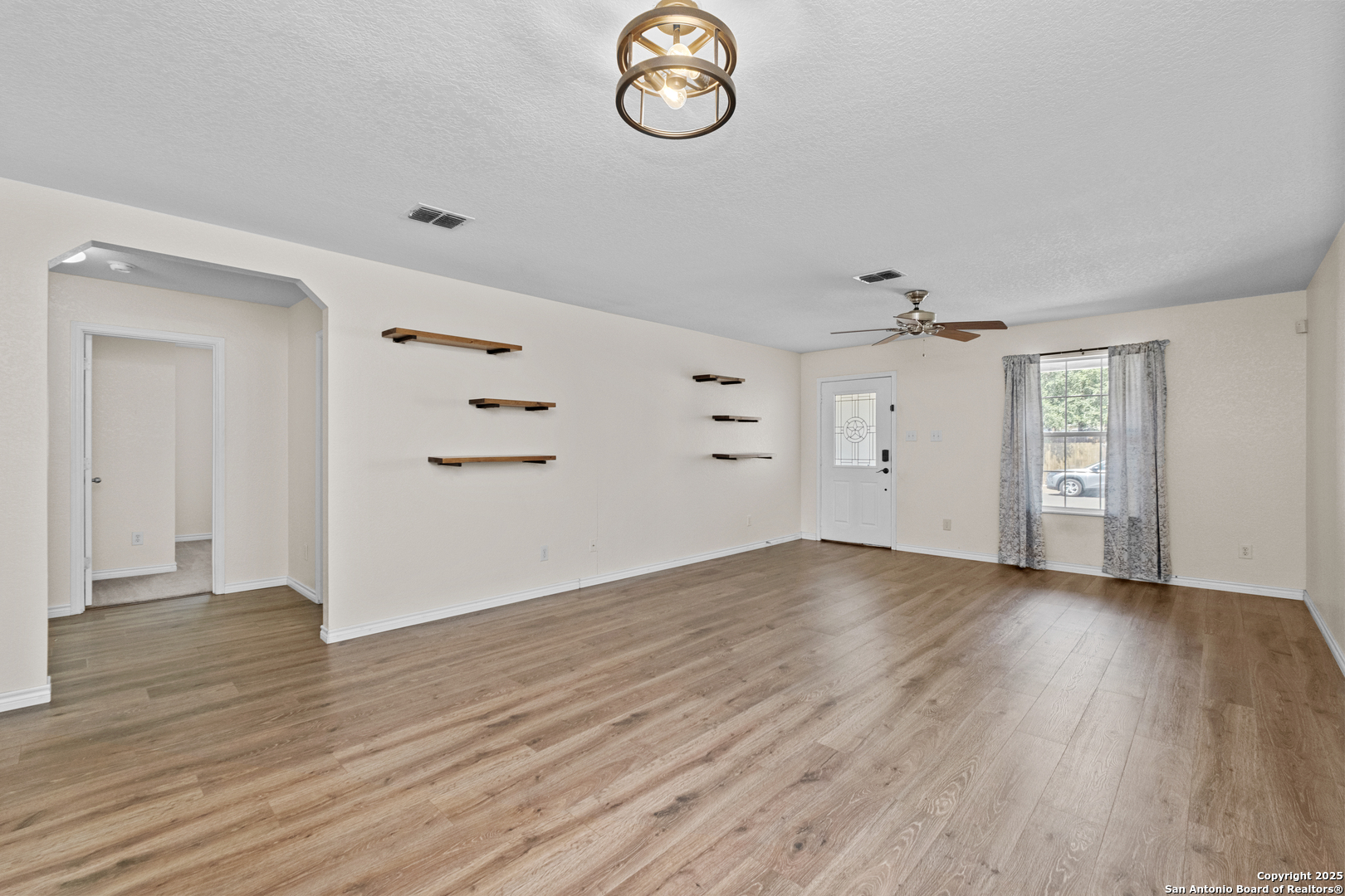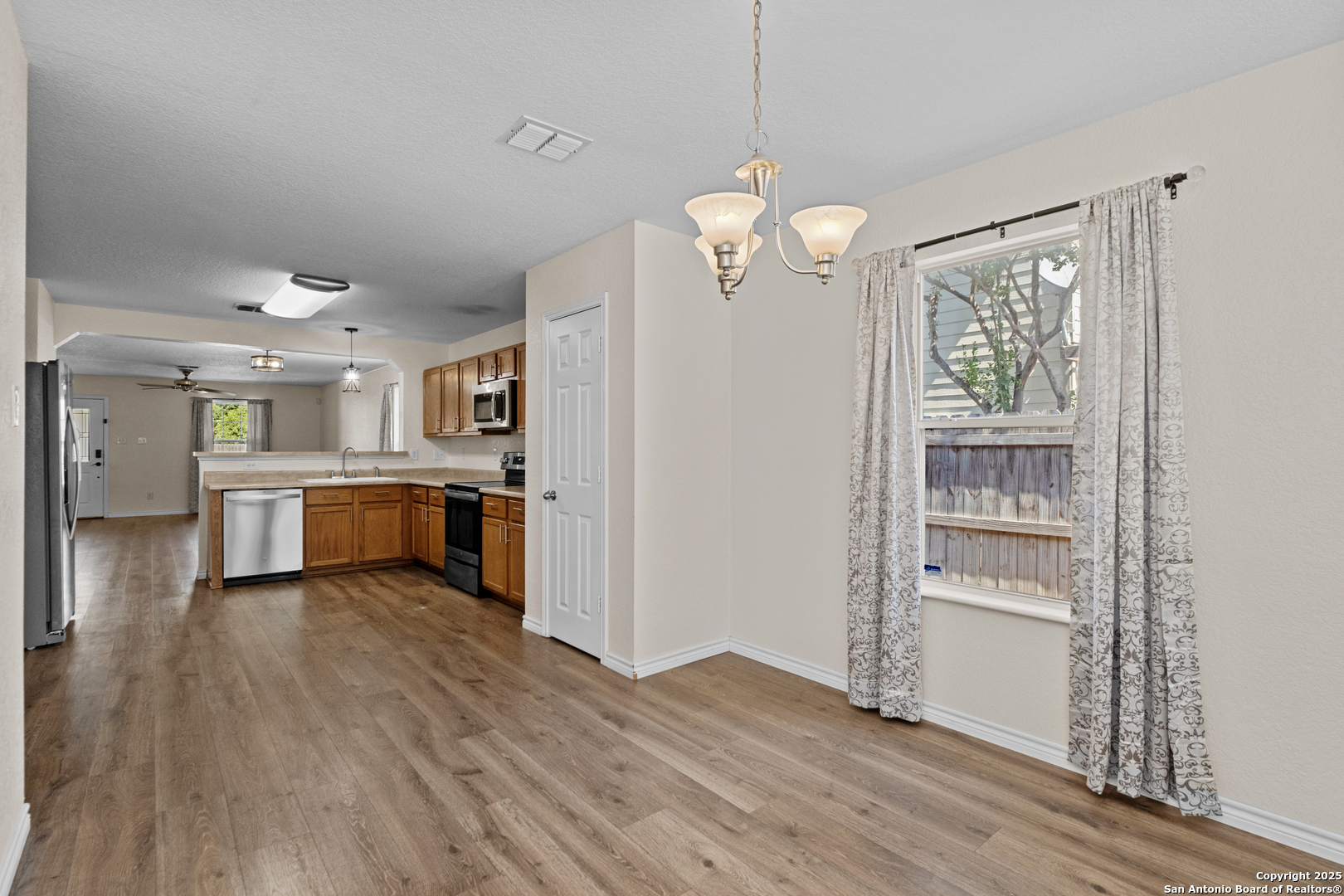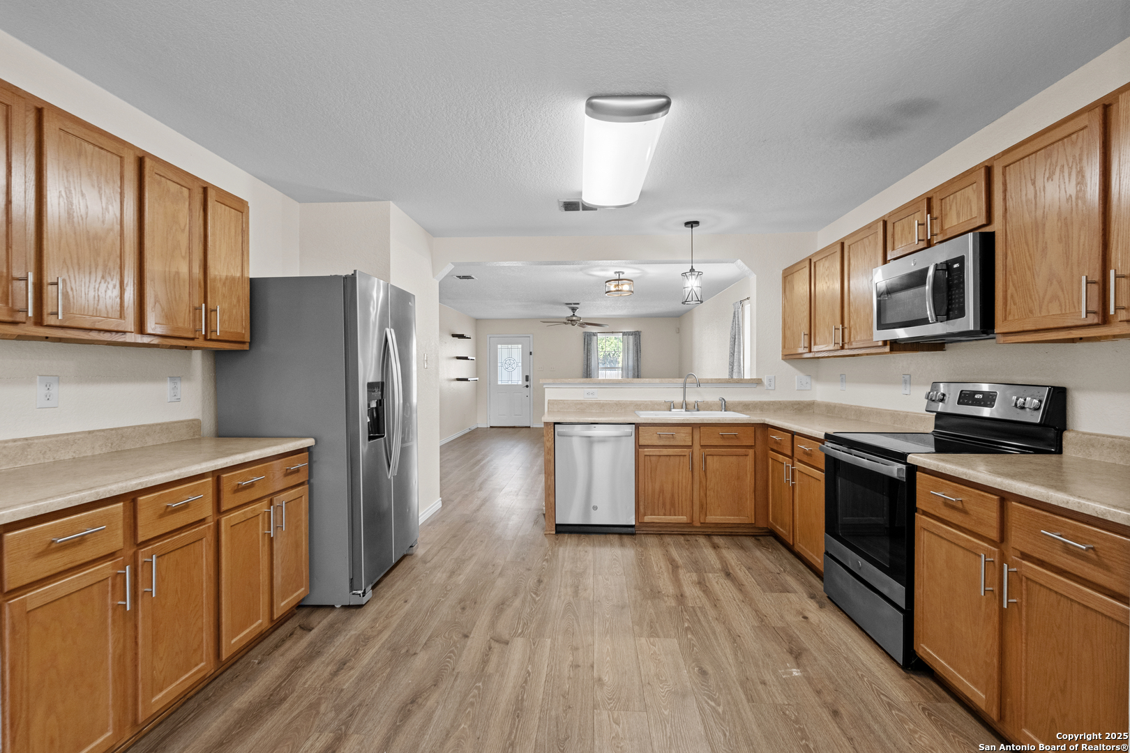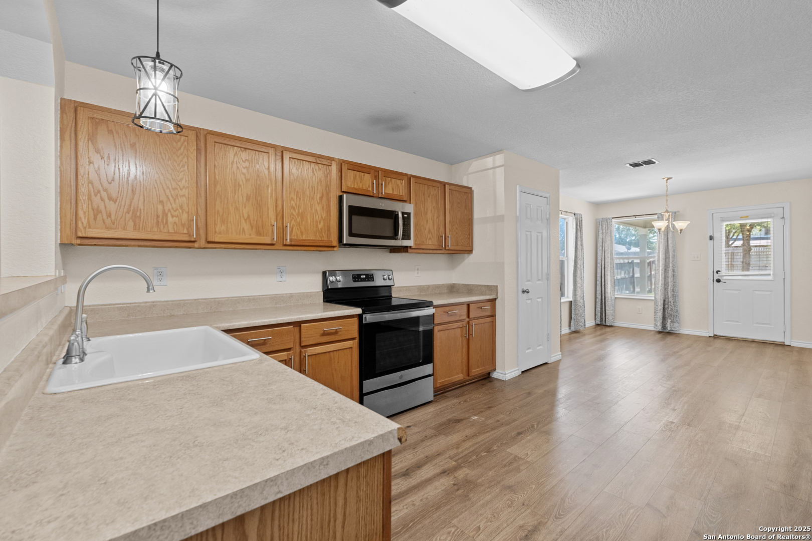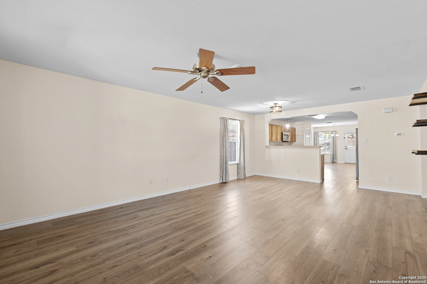 Beautiful home conveniently located near Retama Park, The Forum Shopping Center, major highways, and Northeast Methodist Hospital. Minutes from Randolph AFB and Fort Sam Houston. This open floor plan features an oversized living and dining area, with the kitchen opening to the living space for easy entertaining. The split-bedroom layout offers privacy, and the 4th bedroom with double doors and a closet can be used as an office, guest room, or media room. Enjoy a covered patio overlooking the spacious, fenced backyard-perfect for outdoor gatherings and pets. This home is ready to make your own.