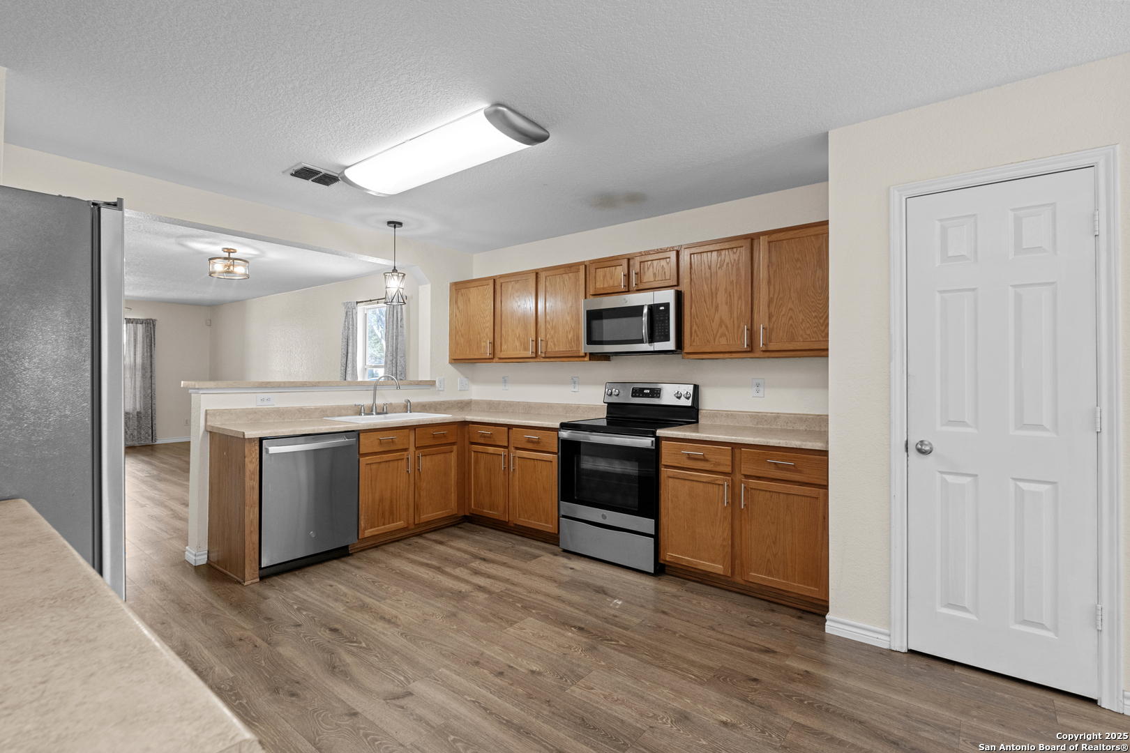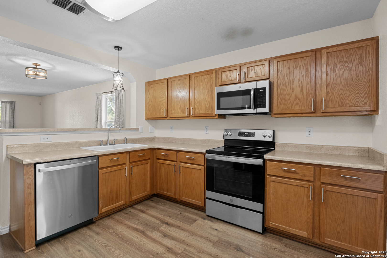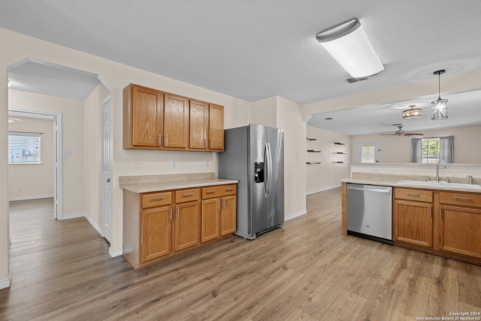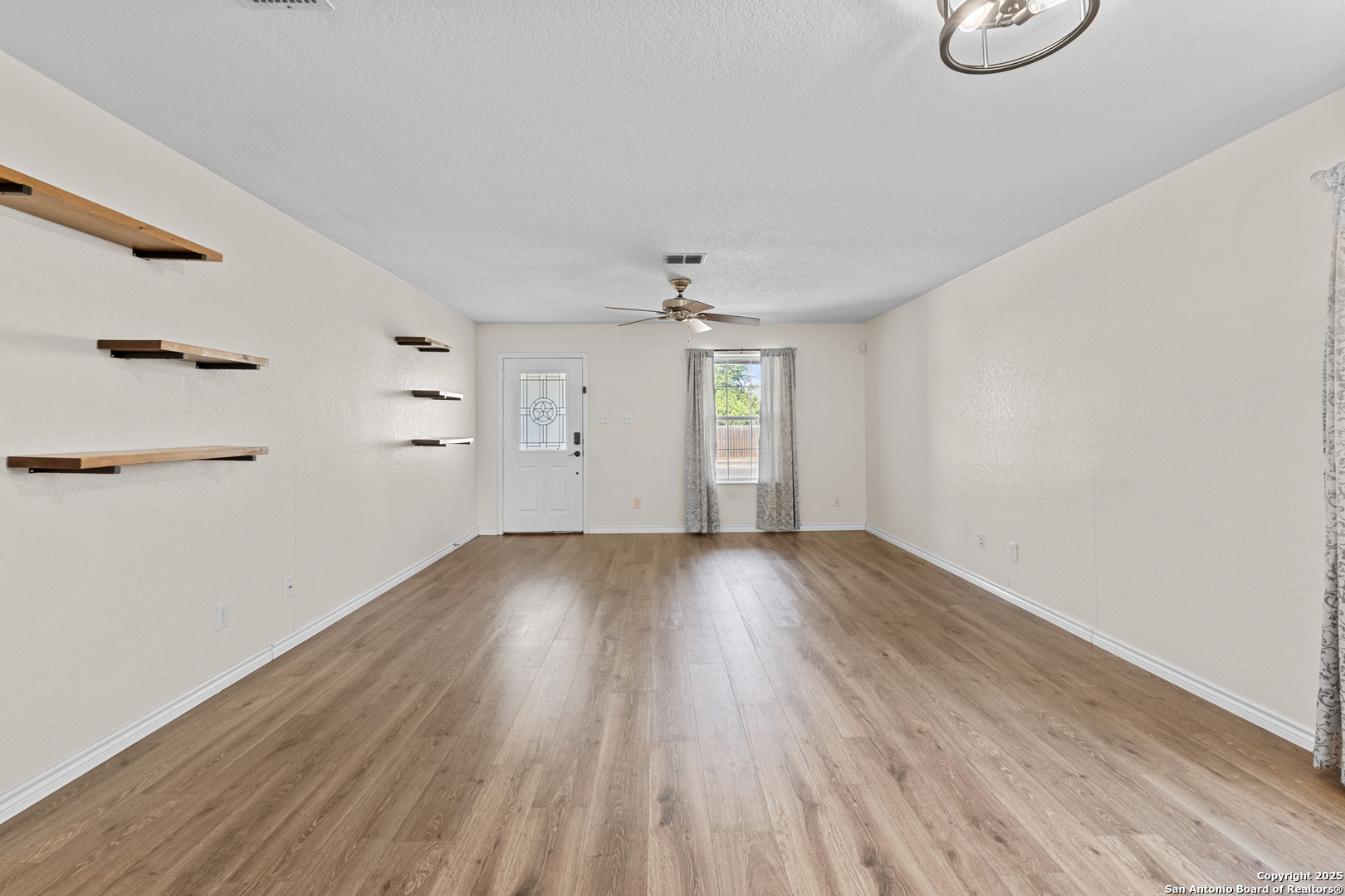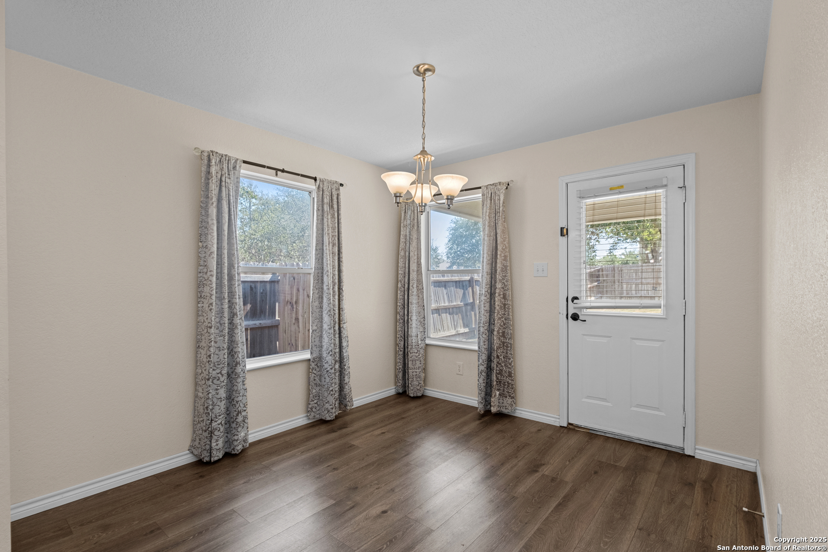 Beautiful home conveniently located near Retama Park, The Forum Shopping Center, major highways, and Northeast Methodist Hospital. Minutes from Randolph AFB and Fort Sam Houston. This open floor plan features an oversized living and dining area, with the kitchen opening to the living space for easy entertaining. The split-bedroom layout offers privacy, and the 4th bedroom with double doors and a closet can be used as an office, guest room, or media room. Enjoy a covered patio overlooking the spacious, fenced backyard-perfect for outdoor gatherings and pets. This home is ready to make your own.