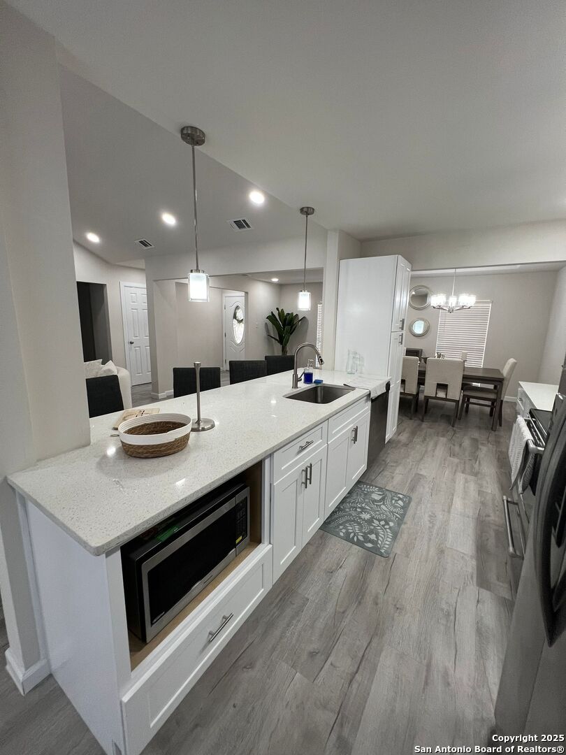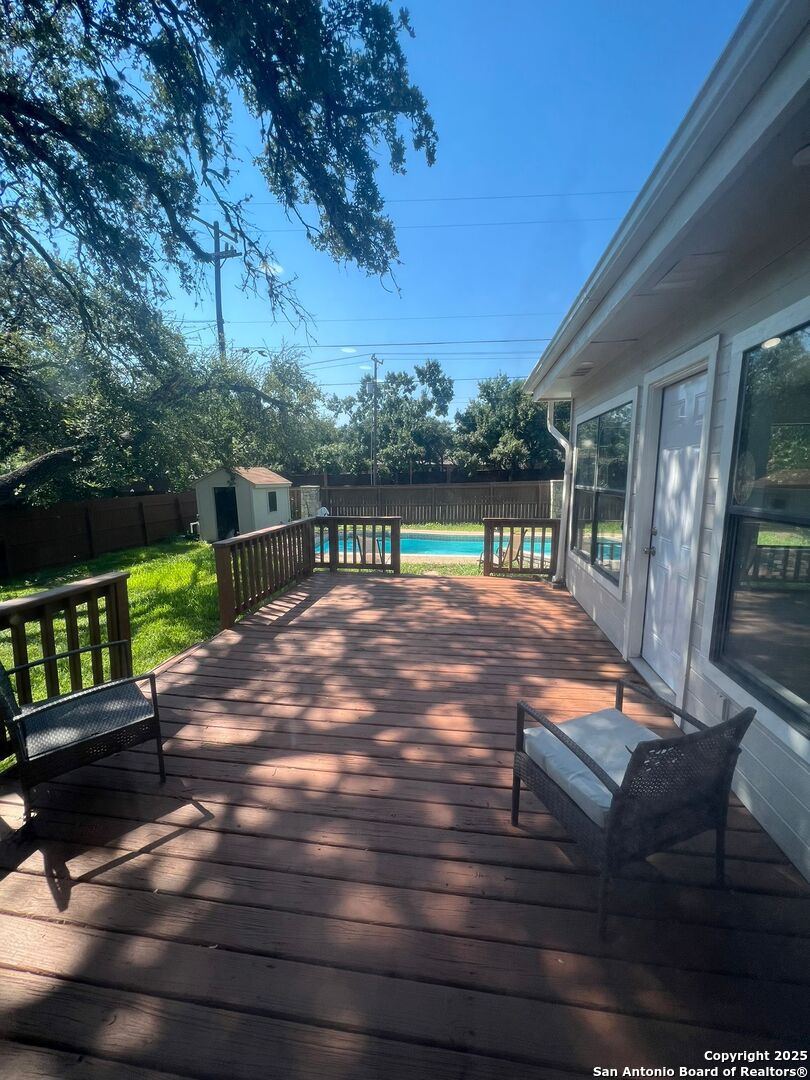 *SPECIAL FOR THIS MONTH ONLY: NO SECURITY DEPOSIT PAYMENT AT MOVE-IN, ONLY IF APPLICATION QUALIFIES. WELCOME TO YOUR DREAM RENTAL IN SUNNY SAN ANTONIO! THIS BEAUTIFULLY REMODELED AND FULLY FURNISHED 3-BEDROOM, 2-BATHROOM HOME BOASTS MODERN FINISHES, SPACIOUS INTERIORS, AND A BACKYARD PARADISE COMPLETE WITH A SPARKLING POOLPERFECT FOR RELAXING AND ENTERTAINING. STEP INSIDE TO FIND A STYLISH OPEN-CONCEPT LAYOUT FEATURING A BRIGHT AND AIRY LIVING AREA, COMPLETE WITH COMFORTABLE FURNISHINGS AND DECOR. THE GOURMET KITCHEN INCLUDES BRAND-NEW STAINLESS STEEL APPLIANCES, QUARTZ COUNTERTOPS, AND IS FULLY STOCKED WITH ESSENTIALS TO MAKE COOKING A BREEZE. THE PRIMARY BEDROOM OFFERS A SERENE RETREAT WITH A PRIVATE EN-SUITE BATHROOM AND LUXURIOUS BEDROOM FURNISHINGS, WHILE TWO ADDITIONAL BEDROOMS ARE READY TO ACCOMMODATE GUESTS OR PROVIDE WORK-FROM-HOME OPTIONS. THE OUTDOOR SPACE IS TRULY A GEM! ENJOY A FULLY FENCED BACKYARD WITH A PRIVATE POOL, LUSH LANDSCAPING, AND A COVERED PATIO AREA COMPLETE WITH OUTDOOR FURNITURE, IDEAL FOR AL FRESCO DINING OR LOUNGING ON WARM TEXAS DAYS. LOCATED IN A FAMILY-FRIENDLY NEIGHBORHOOD, YOU'RE JUST MINUTES AWAY FROM TOP-RATED SCHOOLS, SHOPPING, DINING, AND EASY ACCESS TO HIGHWAYS FOR COMMUTING. DON'T MISS OUT ON THIS RARE OPPORTUNITY TO MOVE INTO A TURN-KEY HOME. SCHEDULE A VIEWING TODAY!