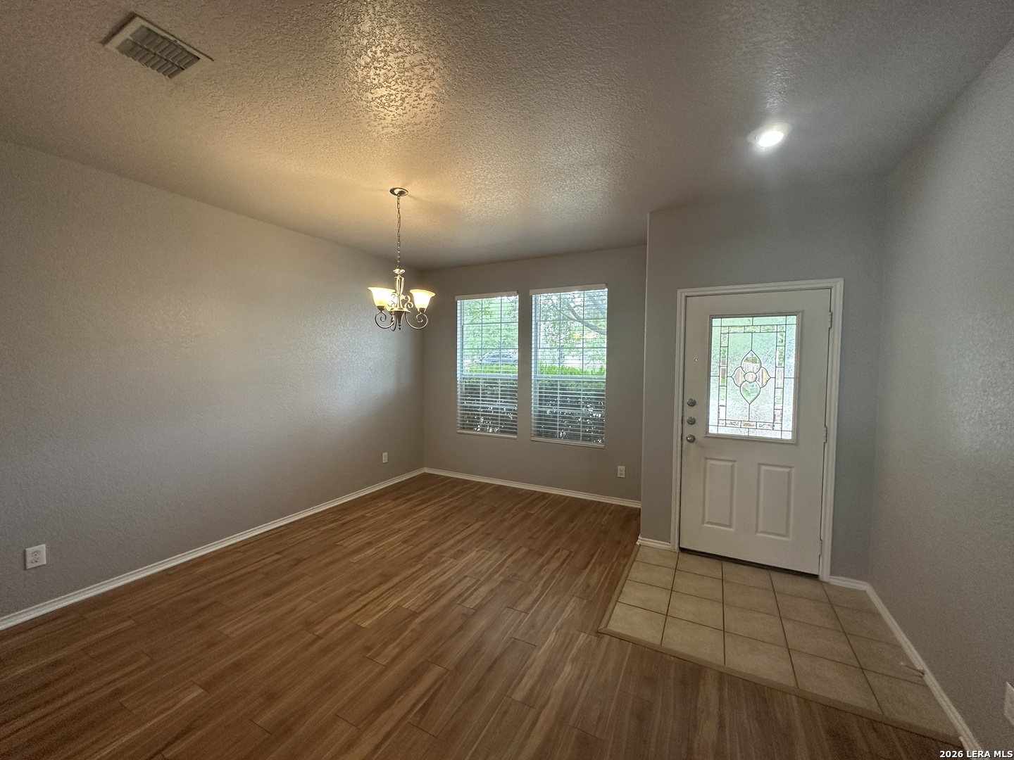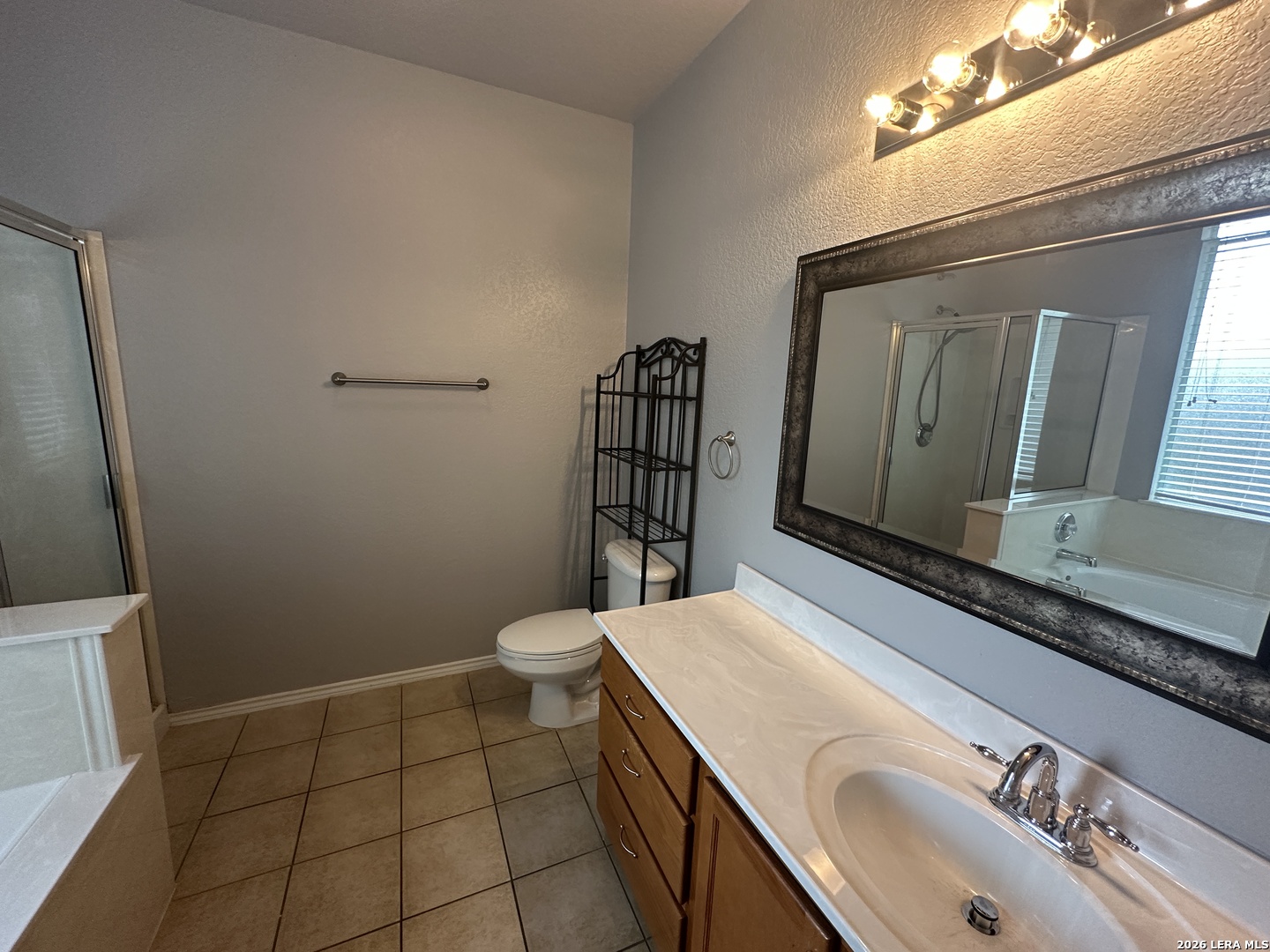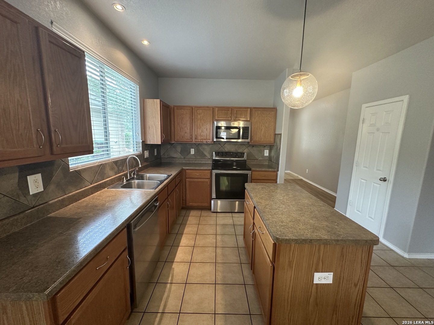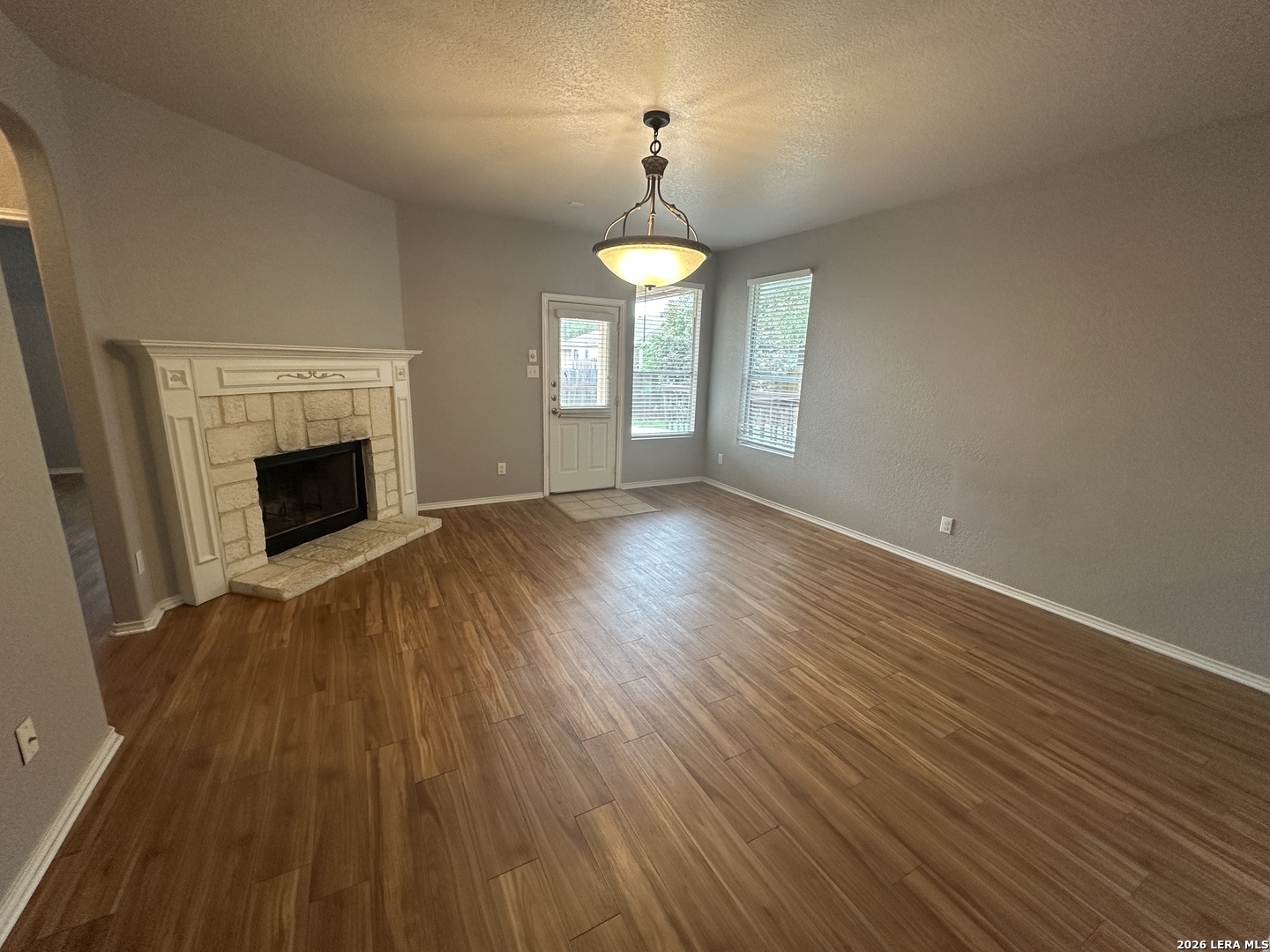 Charming single story home located on a cul-de-sac street w/upgrades throughout, including fireplace with mantel, 9' ceilings, light and fan fixtures, decorative paint, coffered ceiling in master bedroom. Spacious kitchen w/island & stainless appliances open to family room, separate formal dining, split master bedroom floor plan. Master bath has separate garden tub and shower. Covered Patio with deck. Convenient to IH10, minutes from La Cantera, The Rim, UTSA, USAA, Medical Center. Excellent schools!