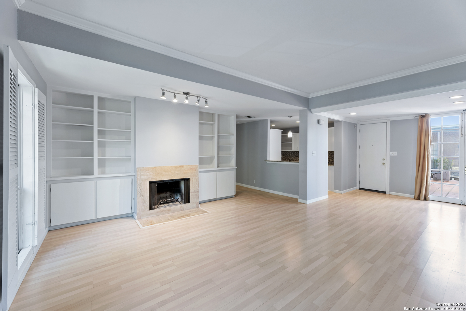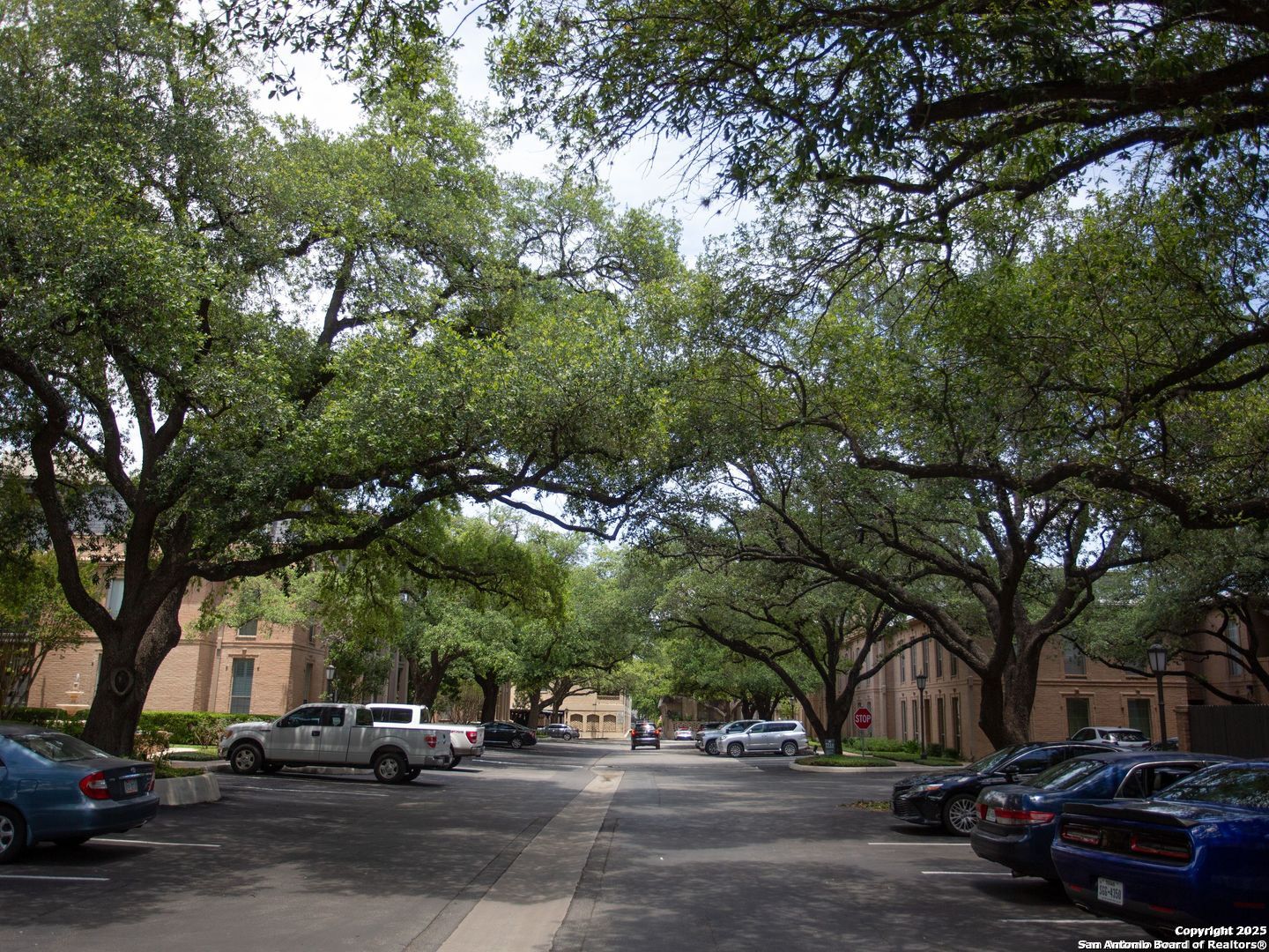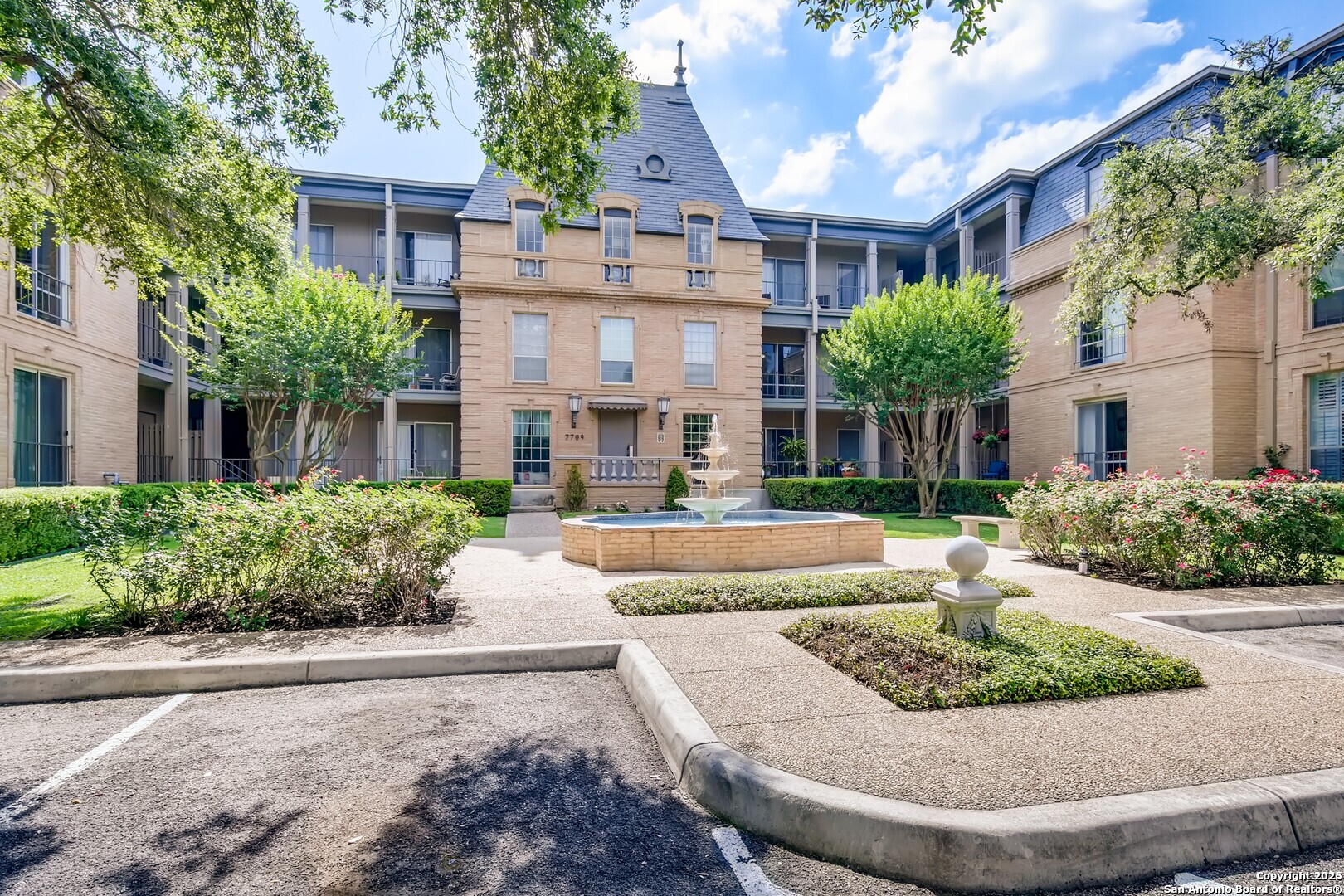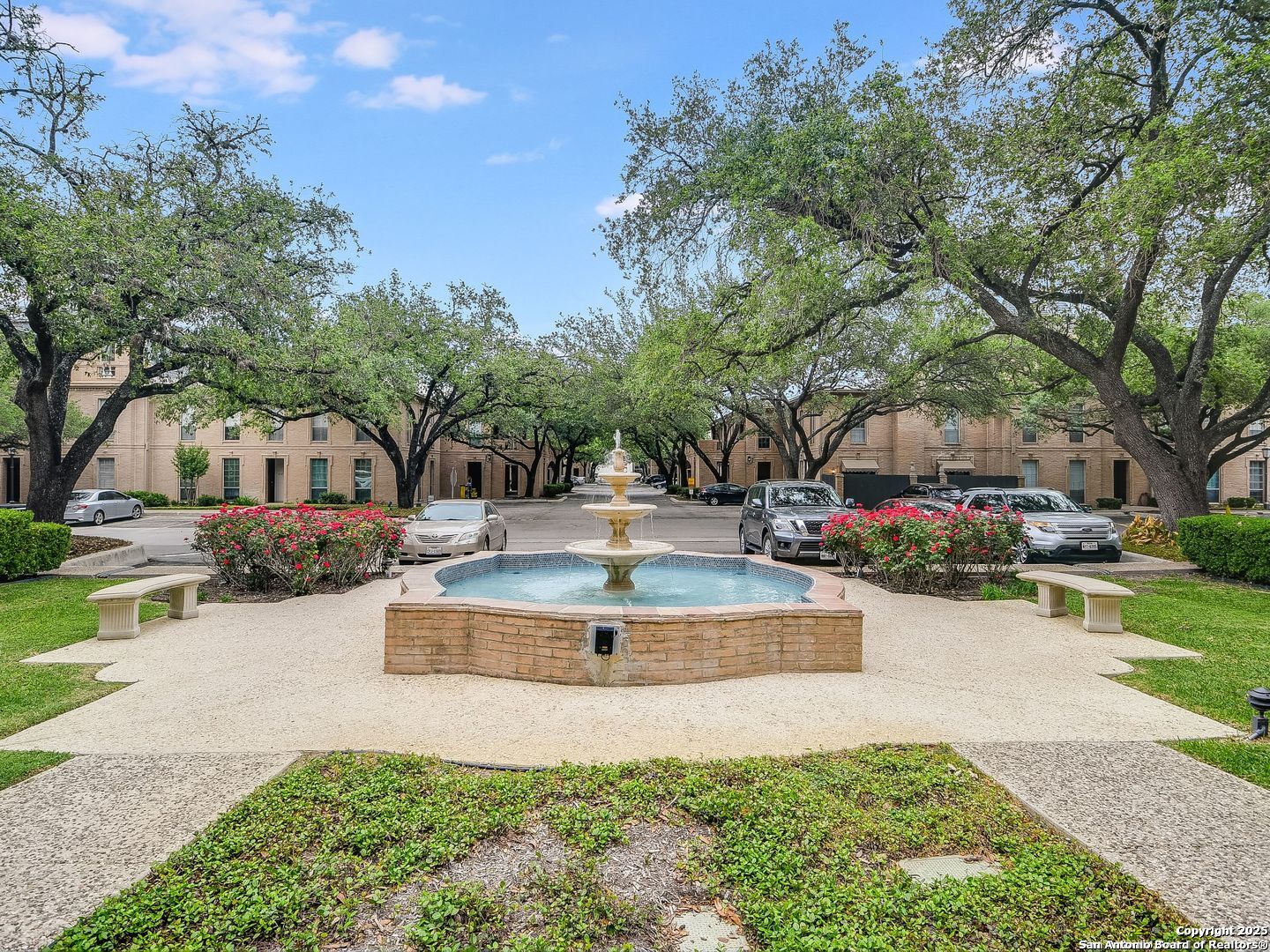 This charming 2 bedroom, 2 bath condo is nestled in one of the most desirable school districts and neighborhoods in San Antonio, offering a perfect blend of comfort, style and convenience. Desirable floorplan with living area separating the two bedrooms each with their own bath. Floorplan is perfect for a child or a roommate situation. Master bedroom has it's own fireplace and bookshelves. Located just steps from upscale shopping and proximity to renowned museums, and fine dining, this residence places you at the heart of culture and sophistication. Enjoy the beautiful landscaping and grounds complete with pickeball courts, dog park and swimming pools.