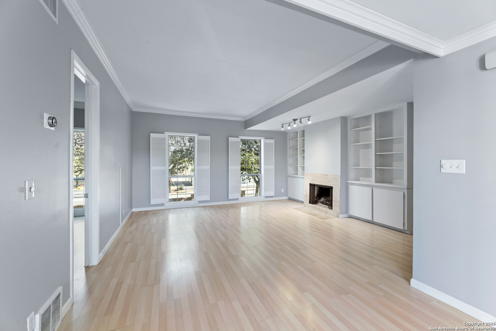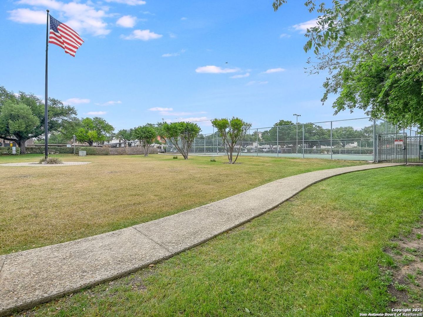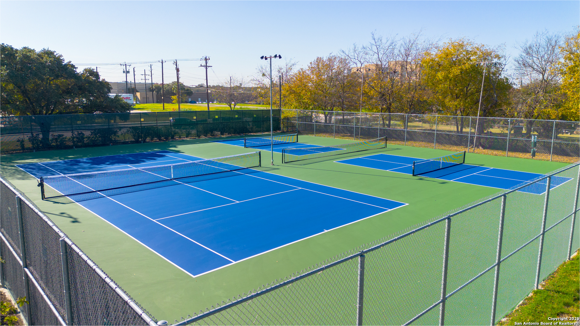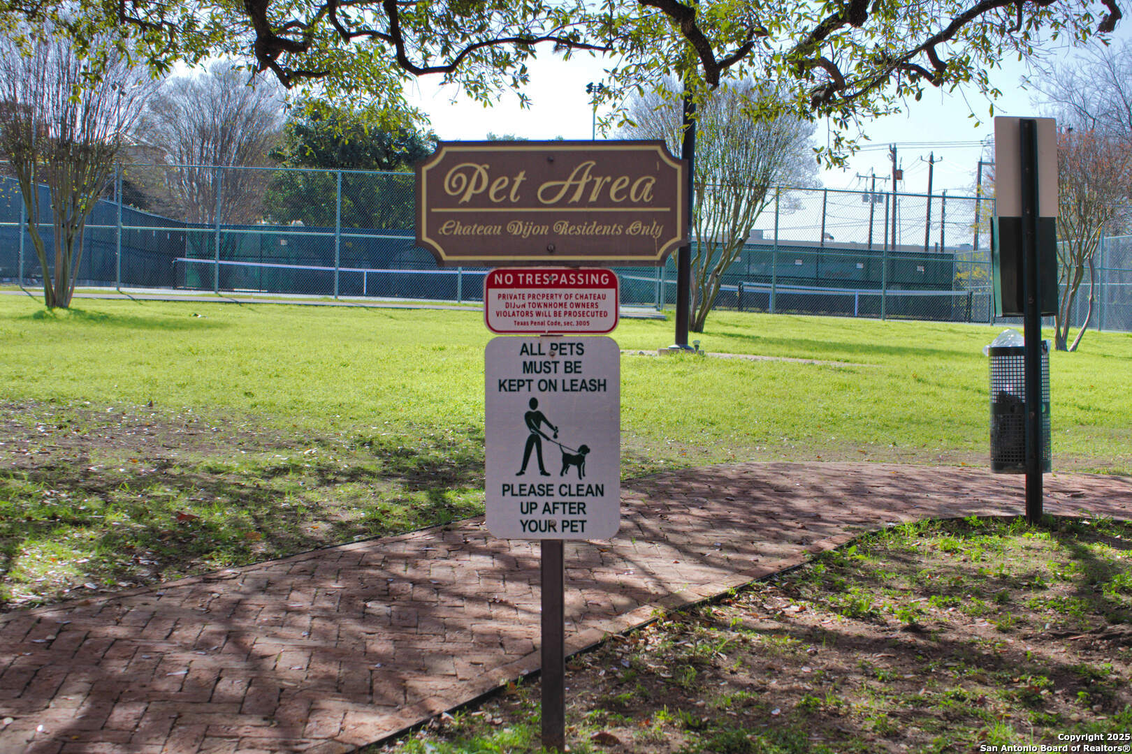 This charming 2 bedroom, 2 bath condo is nestled in one of the most desirable school districts and neighborhoods in San Antonio, offering a perfect blend of comfort, style and convenience. Desirable floorplan with living area separating the two bedrooms each with their own bath. Floorplan is perfect for a child or a roommate situation. Master bedroom has it's own fireplace and bookshelves. Located just steps from upscale shopping and proximity to renowned museums, and fine dining, this residence places you at the heart of culture and sophistication. Enjoy the beautiful landscaping and grounds complete with pickeball courts, dog park and swimming pools.