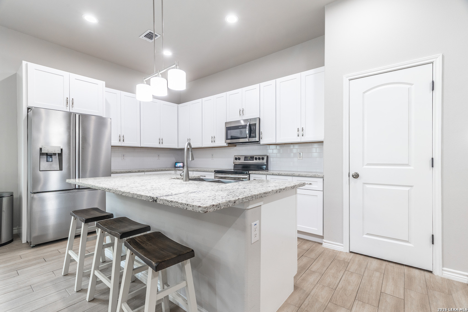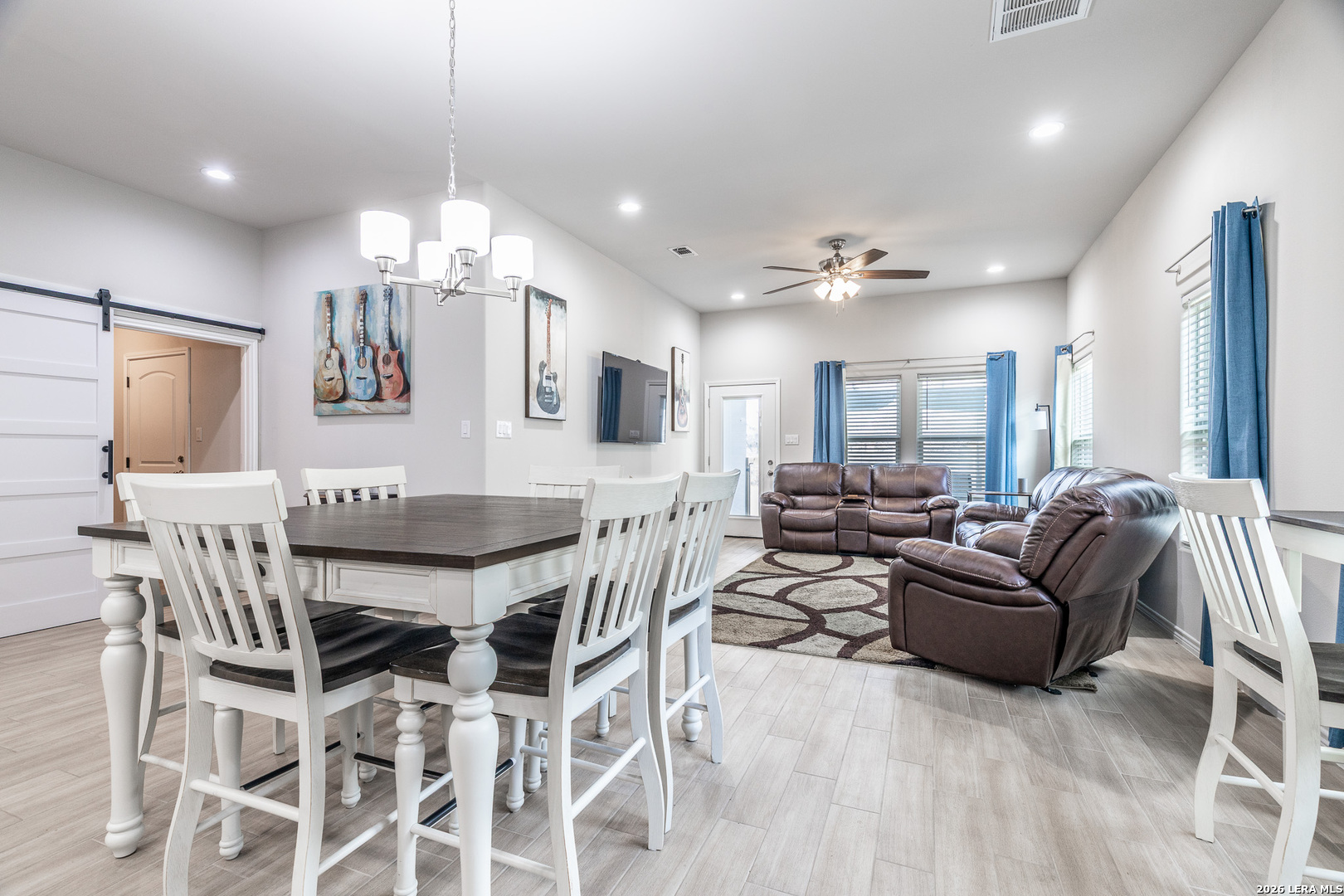 Welcome to 772 Crestview, where designer touches and thoughtful details come together in a home built for both everyday comfort and effortless entertaining. This open concept layout features high ceilings, recessed lighting, and ceiling fans throughout, creating a bright and inviting atmosphere from the moment you walk in. The kitchen is a true centerpiece, complete with granite countertops, 42-inch cabinetry, a classic subway tile backsplash, a farmhouse sink, and a spacious pantry. Stylish barn doors add character and charm, elevating the overall design. The large primary suite offers a relaxing retreat with a spacious walk-in closet and an appointed bathroom designed for comfort and functionality. Secondary bedrooms are generously sized, each featuring ceiling fans and convenient two door closet entries. The oversized laundry room provides ample storage space and direct access to the two-car garage. Ideally located just minutes from shopping, dining, and golf.