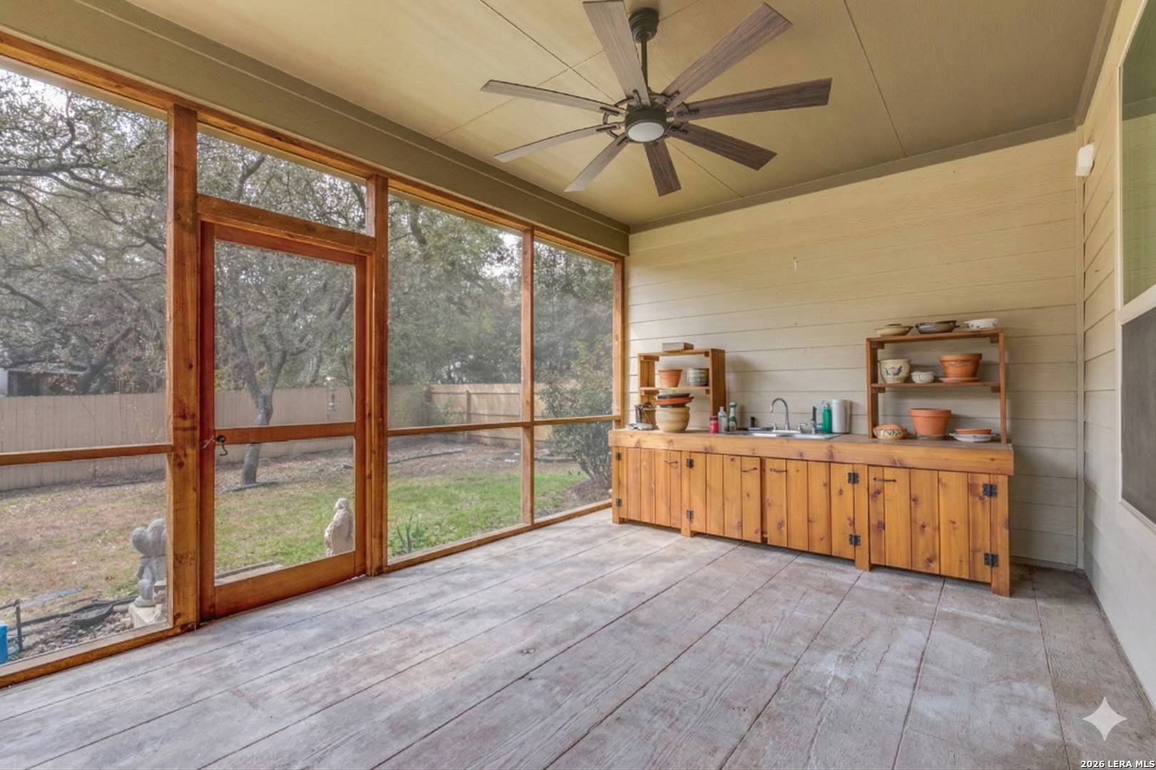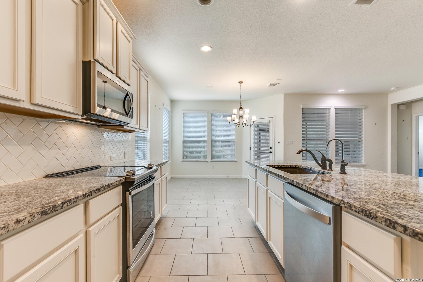 Charming single-story home in the desirable Pomona Park community, ideally located near the Medical Center with quick access to major highways, shopping, and dining. This 3-bedroom, 2-bath home features an inviting open-concept layout with high ceilings and abundant natural light, perfect for everyday living and entertaining. The kitchen offers granite countertops, a spacious island, white cabinetry, subway tile backsplash, and stainless steel appliances that flow seamlessly into the family room. The private primary suite includes a generous walk-in closet and full bath, while secondary bedrooms provide flexibility for guests, a home office, or hobbies. Step outside to a covered patio overlooking the backyard, complete with a mature pear tree, creating a great space to relax or host gatherings. Additional highlights include solar panels for improved energy efficiency, a two-car garage, and access to neighborhood amenities including a pool, park, and jogging trails. Located within the Northside ISD school district and just minutes from the Medical Center, this home offers both comfort and convenience in a prime San Antonio location.