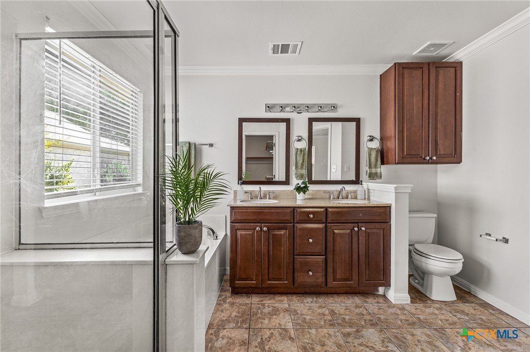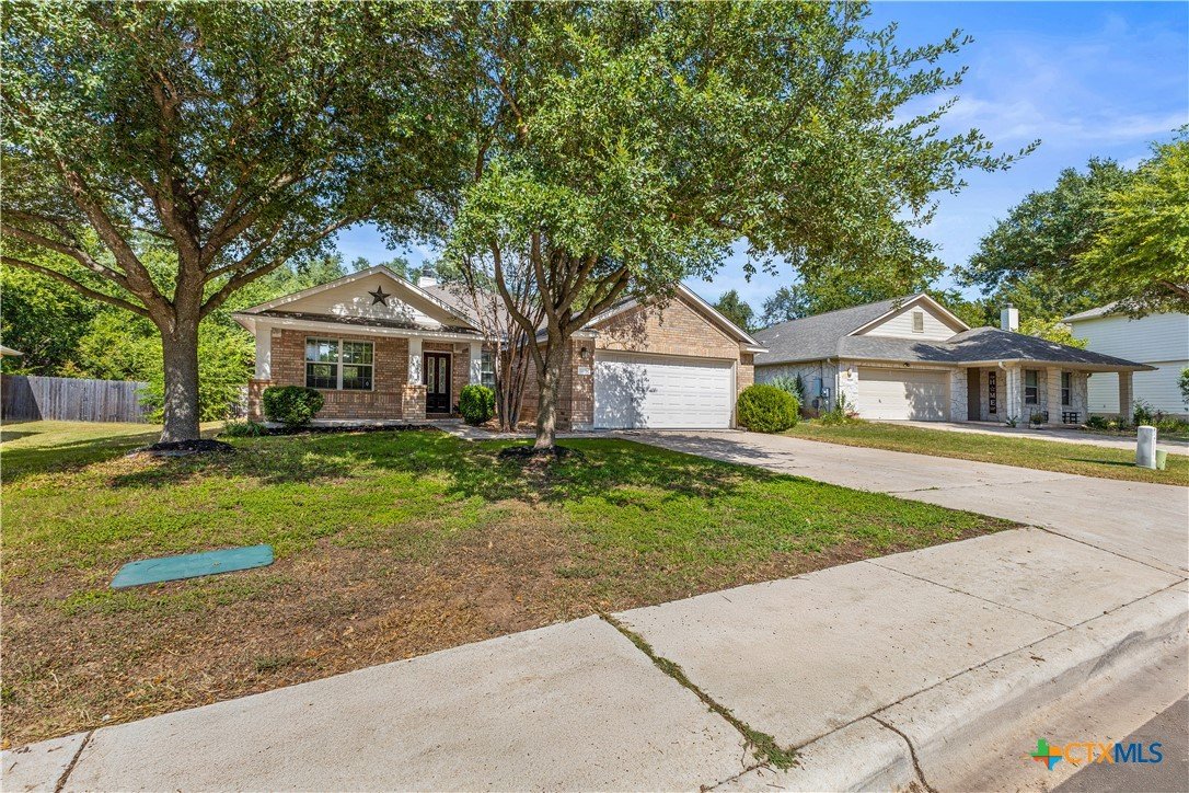 Welcome to this well-maintained 4-bedroom, 2-bathroom home located in the sought-after Villages of Berry Creek community in Georgetown. Offering 2,056 sq. ft. of living space, this home features an open layout with a spacious living room and wood-burning fireplace, a formal dining area, and a kitchen with ample cabinet space, pantry, and electric appliances. The primary suite includes a walk-in closet, double vanity, garden tub, and separate shower. Three additional bedrooms provide space for guests, a home office, or family needs. Out back, enjoy a covered patio, extended deck, and private backyard with mature trees and wood fencing, perfect for outdoor living. Additional highlights include a 2-car garage, tile and vinyl wood flooring, new carpet in bedrooms, and a separate laundry room. Located near schools, shopping, and commuter routes, this home offers comfort and convenience in a quiet neighborhood setting.