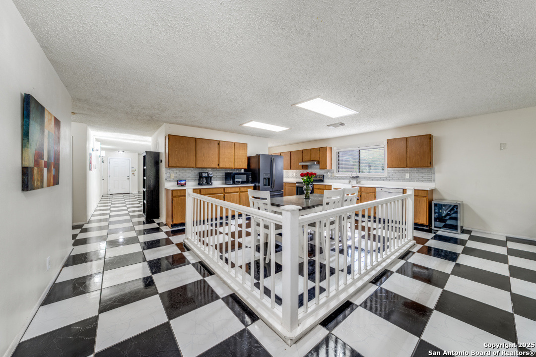 Charming 3-Bedroom, 2-Bath Home in Oak Bluff Nestled deep within the desirable Oak Bluff community, this beautifully maintained single-story home offers both comfort and convenience. Featuring three spacious bedrooms and two full bathrooms, the home boasts two generous living areas seamlessly connected by a bright kitchen with new counters and new backsplash and cozy breakfast nook-perfect for entertaining or relaxing with family. Home has added elegance and sophistication with black and white checkered floor. Kitchen has ample counter space and big farmer's sink. With easy access to I-10 and the Medical Center, this location combines quiet neighborhood living with excellent connectivity. Don't miss your opportunity to tour this inviting home-schedule your visit today!