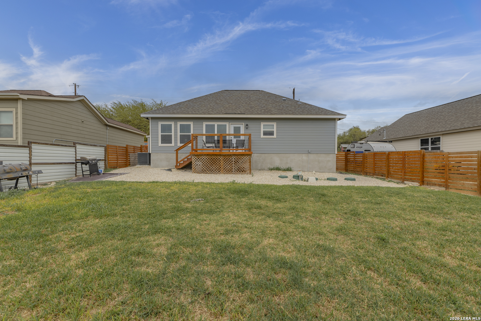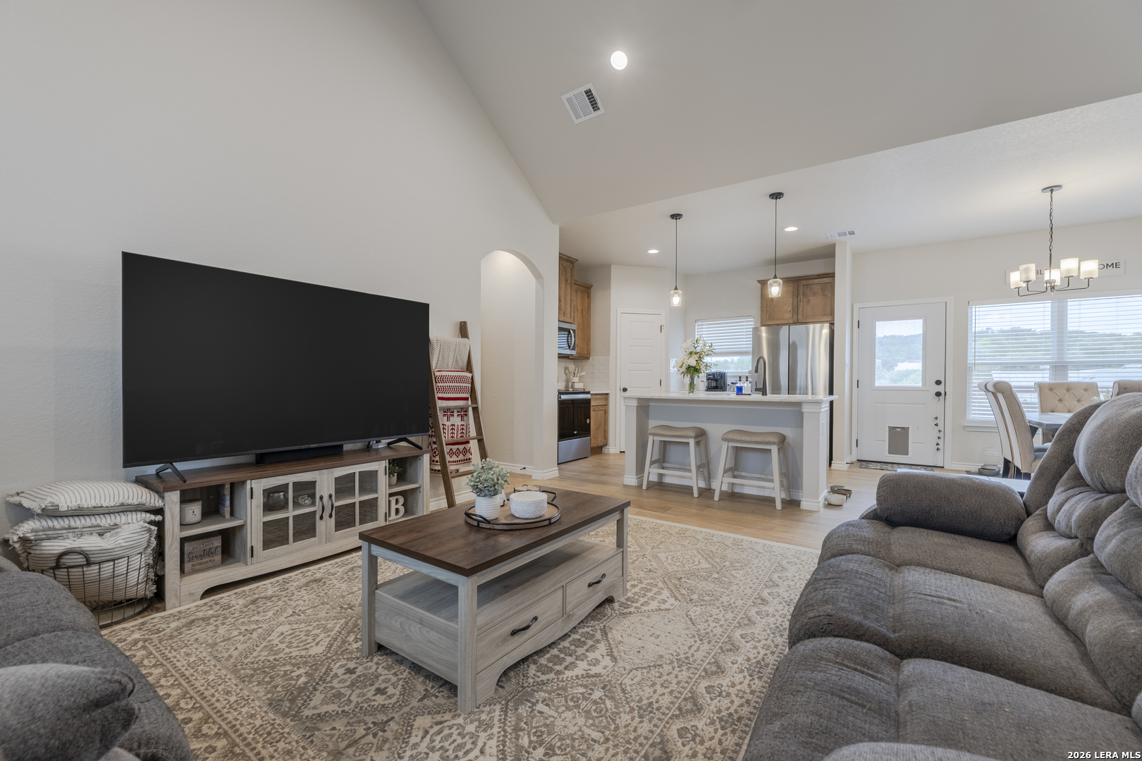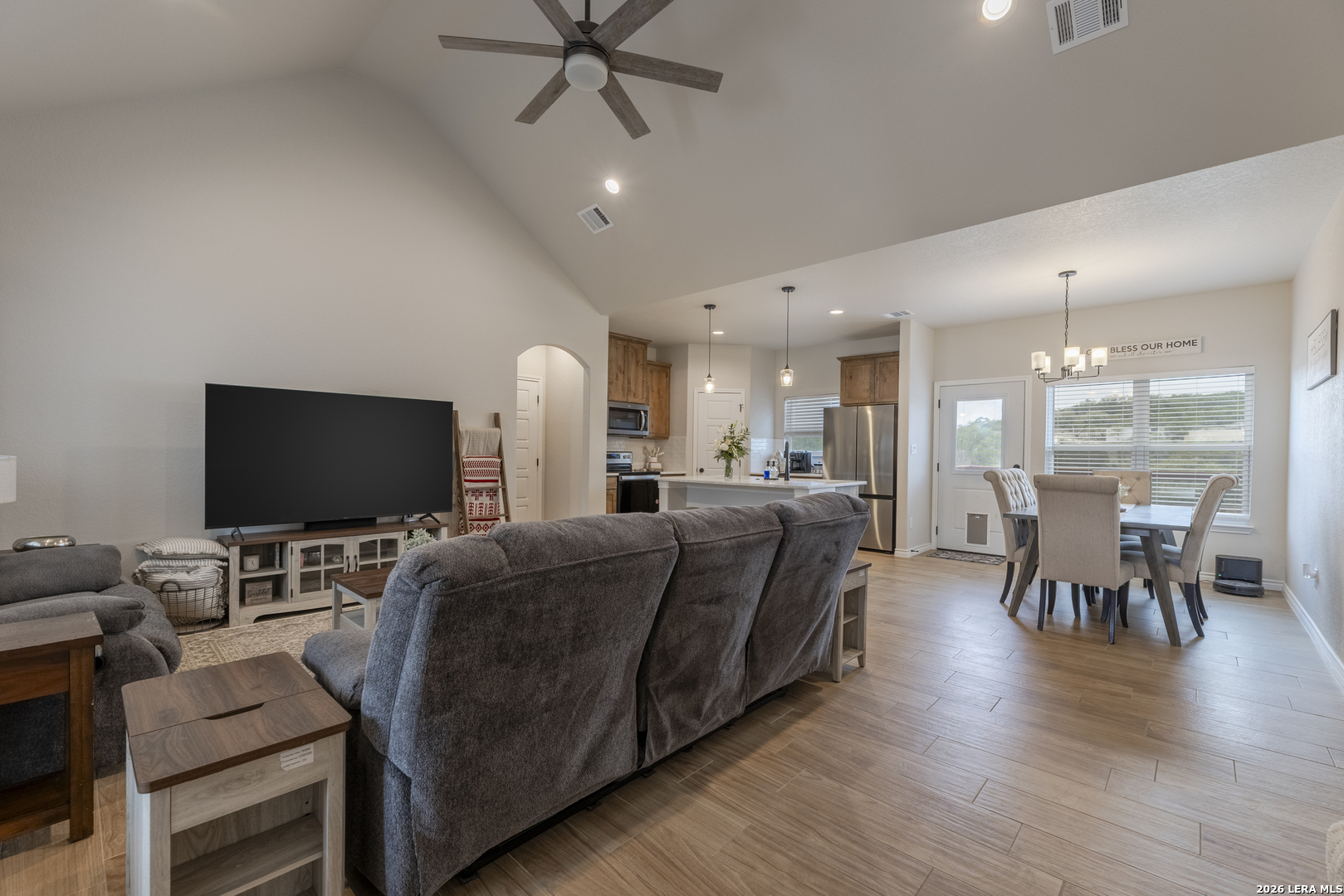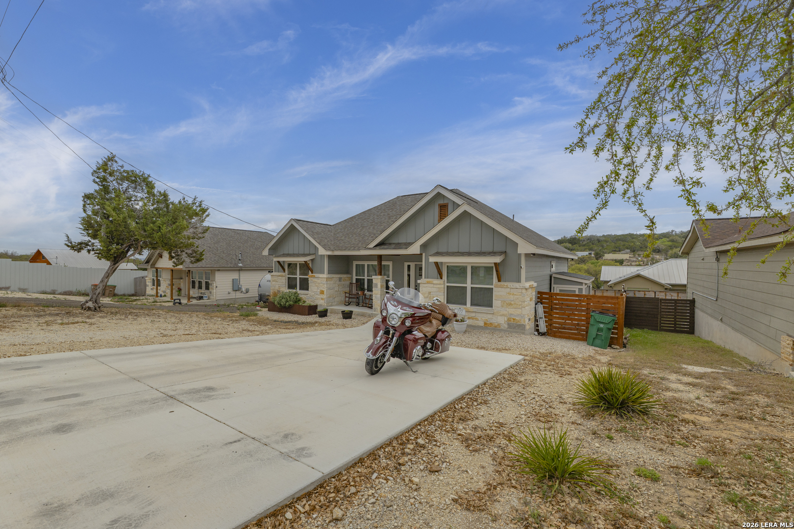 Step into this beautifully designed home featuring soaring 9+ ft ceilings and an abundance of natural light that fills every corner. The heart of the home is the spacious kitchen, complete with a generous pantry, stunning granite countertops, and premium appliances-all included-making it as functional as it is stylish. Built just two years ago, this home offers peace of mind with all major components-roof, HVAC, and more-being the same age and well maintained. You'll also appreciate the no-carpet design throughout, providing a clean, modern feel and easy upkeep. Start your mornings on the inviting front porch with a cup of coffee, and unwind in the evenings on the back porch as you take in breathtaking sunset views. The expansive driveway offers plenty of room for vehicles, boats, or weekend toys-perfect for an active lifestyle. A small outdoor storage shed adds extra space for tools and equipment. Located in a peaceful, well-kept community, you'll enjoy access to a neighborhood pool and scenic trails that lead directly to the lake-bringing nature right to your doorstep. While this home has never been used as a short-term rental, the option is available for added flexibility or investment potential.