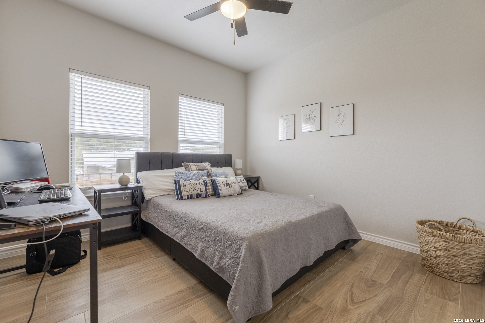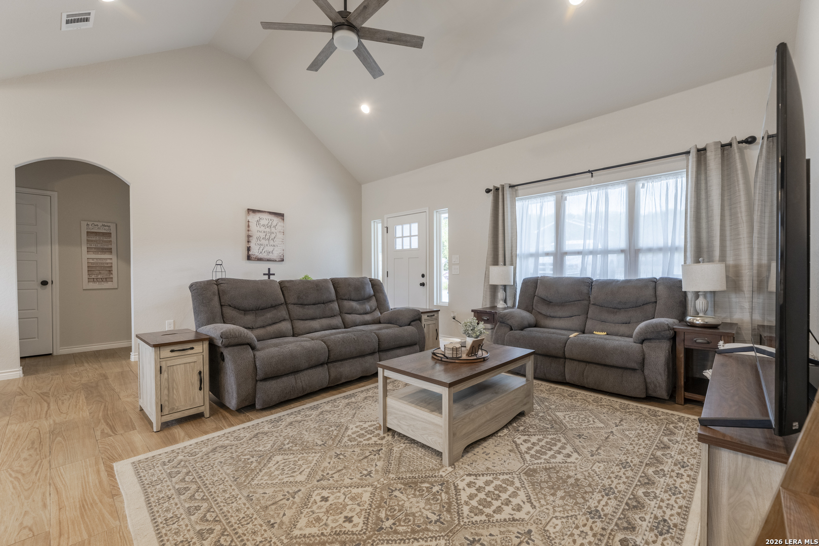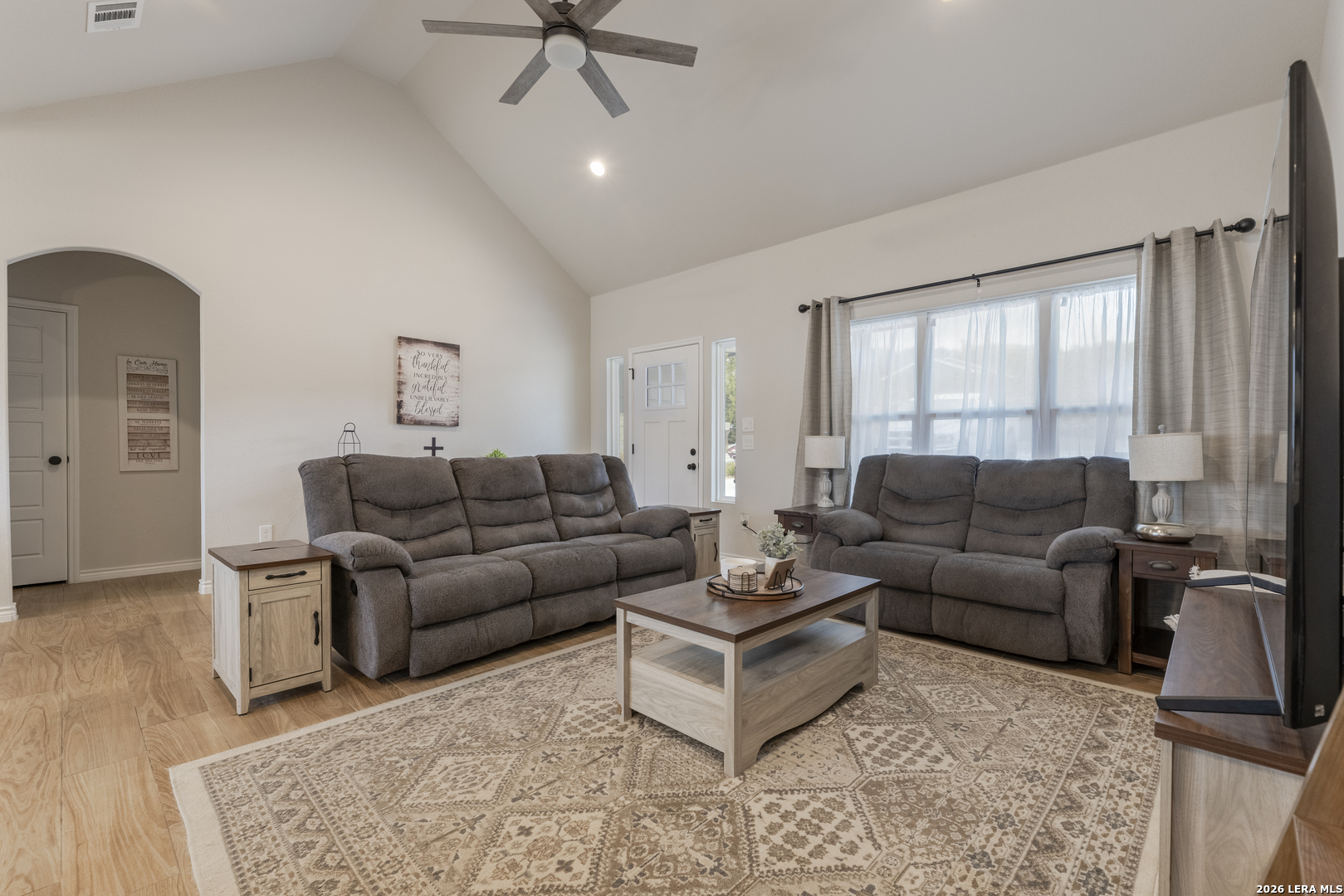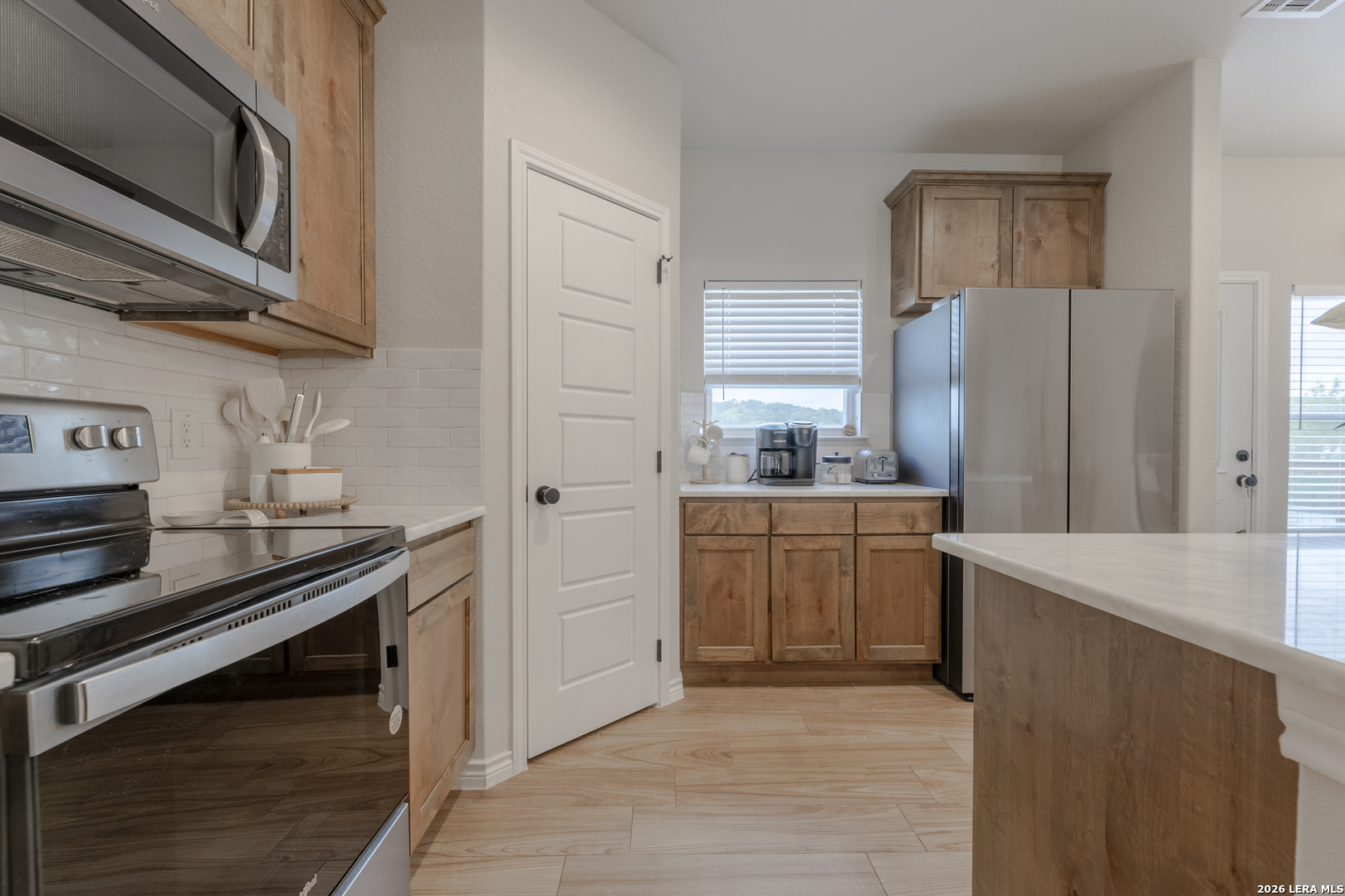 Step into this beautifully designed home featuring soaring 9+ ft ceilings and an abundance of natural light that fills every corner. The heart of the home is the spacious kitchen, complete with a generous pantry, stunning granite countertops, and premium appliances-all included-making it as functional as it is stylish. Built just two years ago, this home offers peace of mind with all major components-roof, HVAC, and more-being the same age and well maintained. You'll also appreciate the no-carpet design throughout, providing a clean, modern feel and easy upkeep. Start your mornings on the inviting front porch with a cup of coffee, and unwind in the evenings on the back porch as you take in breathtaking sunset views. The expansive driveway offers plenty of room for vehicles, boats, or weekend toys-perfect for an active lifestyle. A small outdoor storage shed adds extra space for tools and equipment. Located in a peaceful, well-kept community, you'll enjoy access to a neighborhood pool and scenic trails that lead directly to the lake-bringing nature right to your doorstep. While this home has never been used as a short-term rental, the option is available for added flexibility or investment potential.