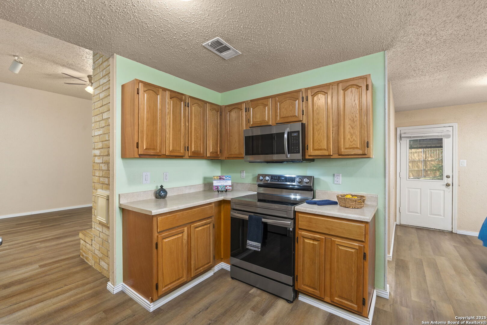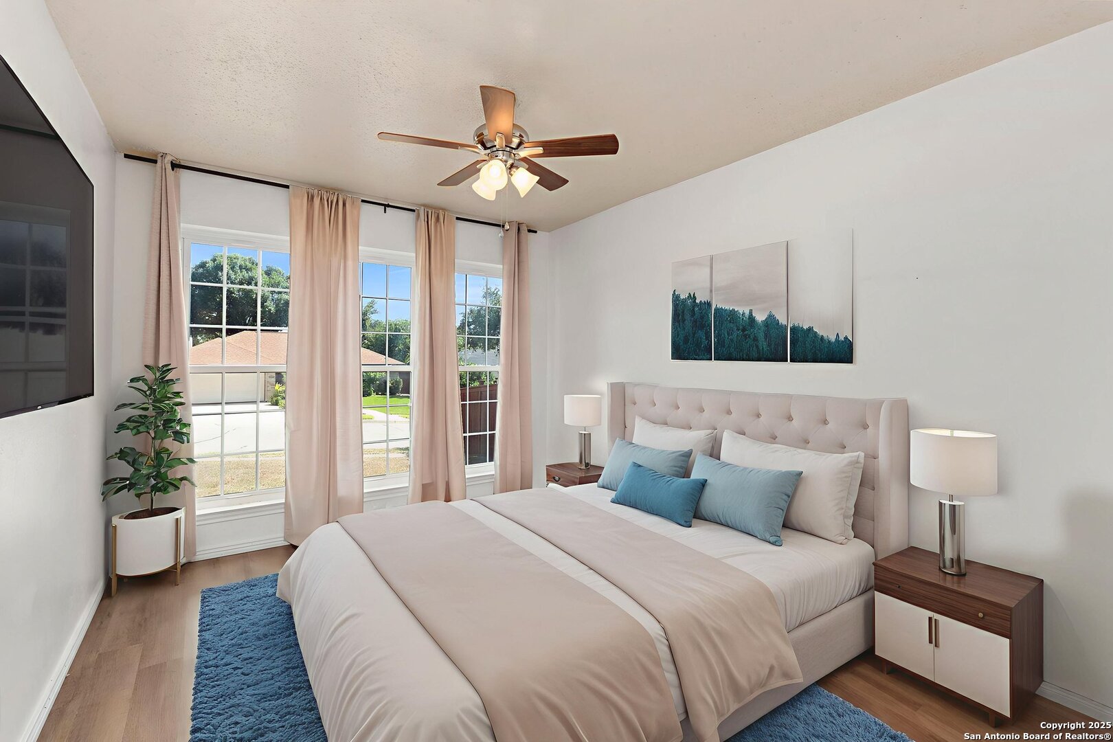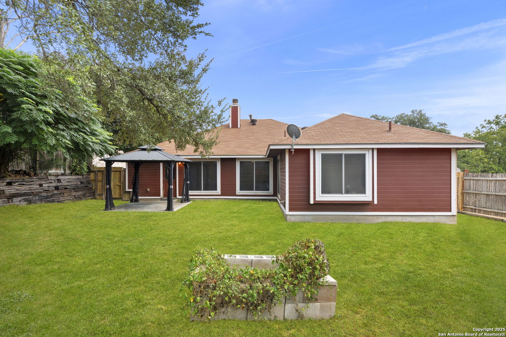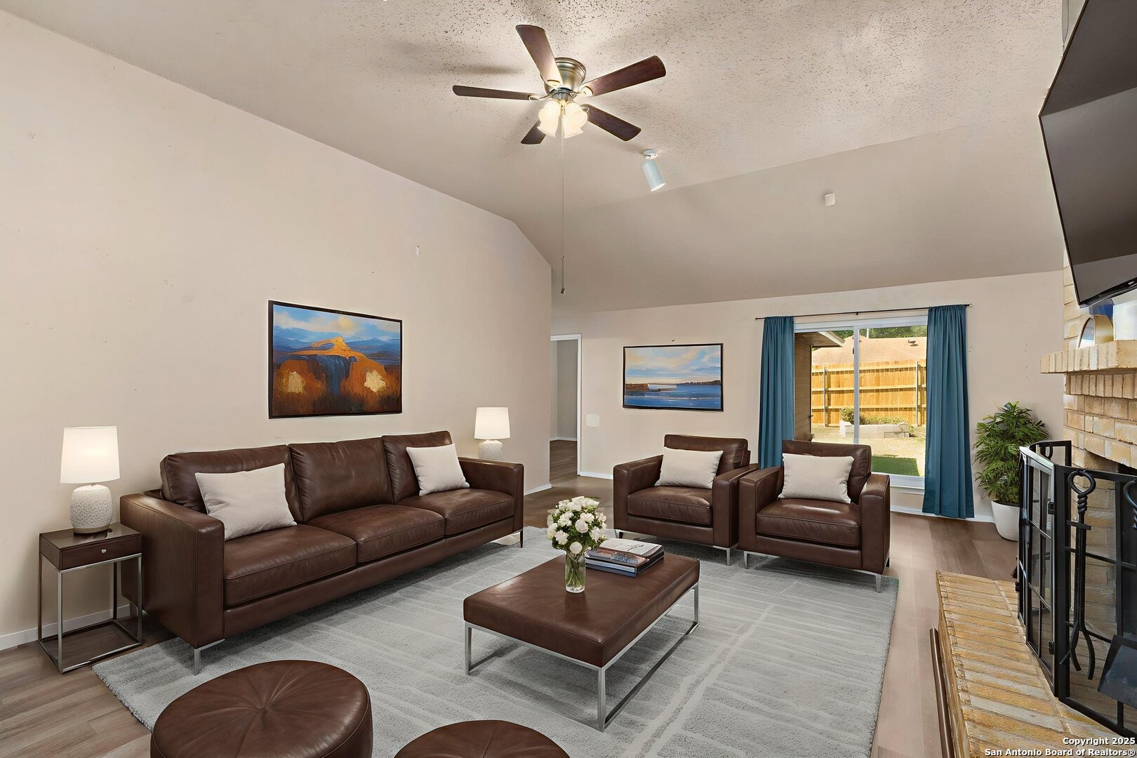 *ASSUMABLE 2.875 INTEREST RATE** Fabulous single story home in Live Oak features high ceilings, central fireplace, and open split four bedroom floor plan! Recent updates include luxury vinyl plank throughout, beautifully renovated baths with new tile tub surrounds and quartz-topped double vanities (2024-25), partial new fence (2025), smooth top stainless stove with air fryer (2021), and water heater (2022). Home boasts updated windows and light fixtures, as well as walk in closets and ceiling fans throughout. Outside, enjoy the ample yard space perfect for relaxation or entertaining. The patio slab and charming gazebo create an ideal setting for gatherings or quiet evenings outdoors. Located near Woodcrest Park, this property offers easy access to recreational opportunities and the natural beauty of the area.