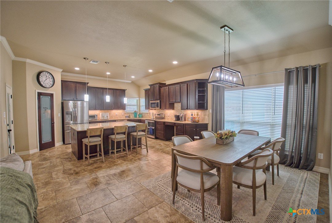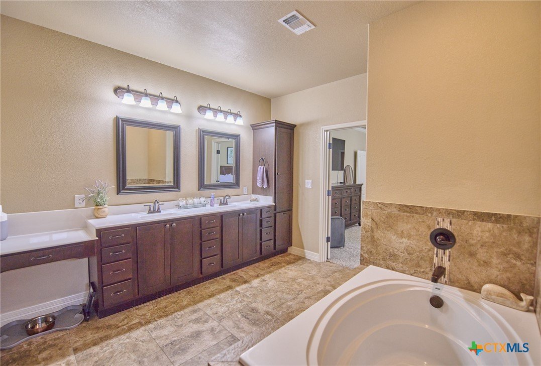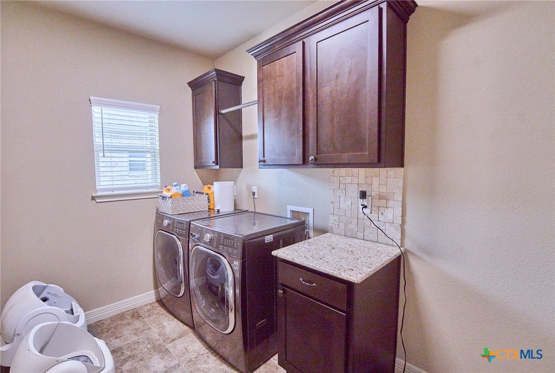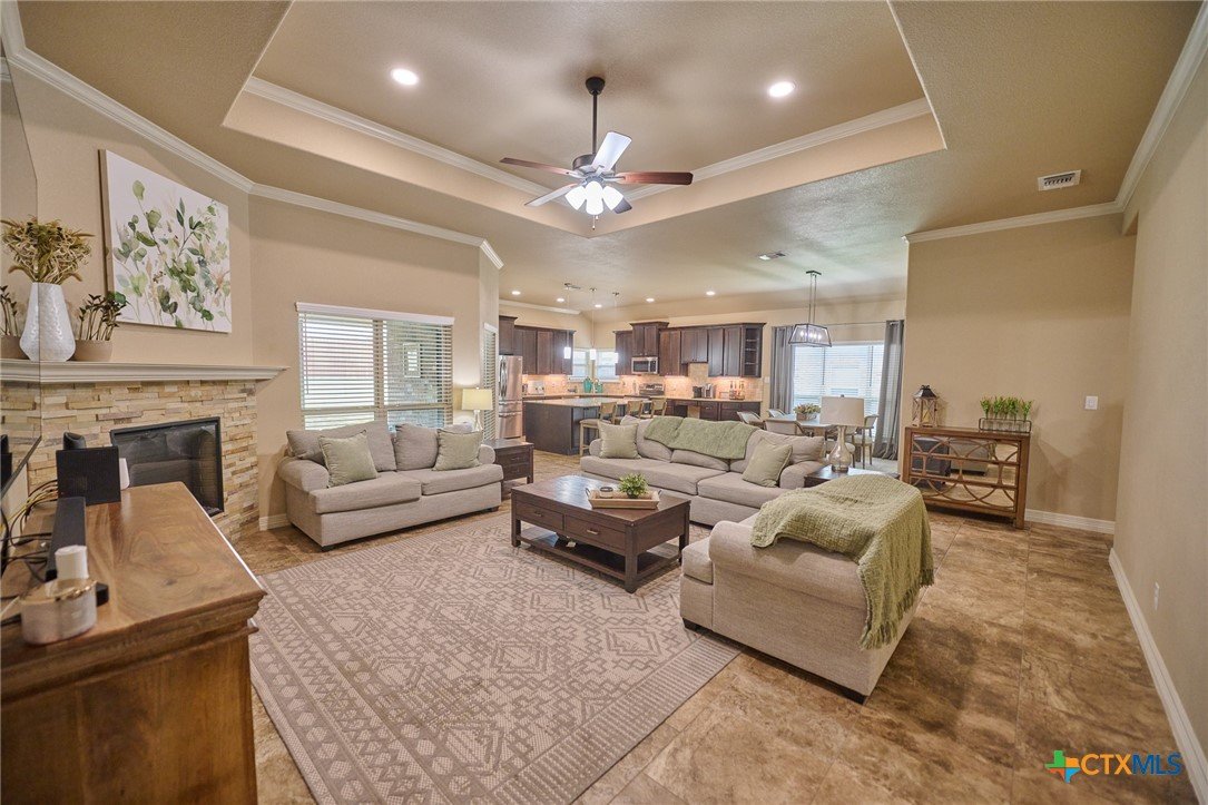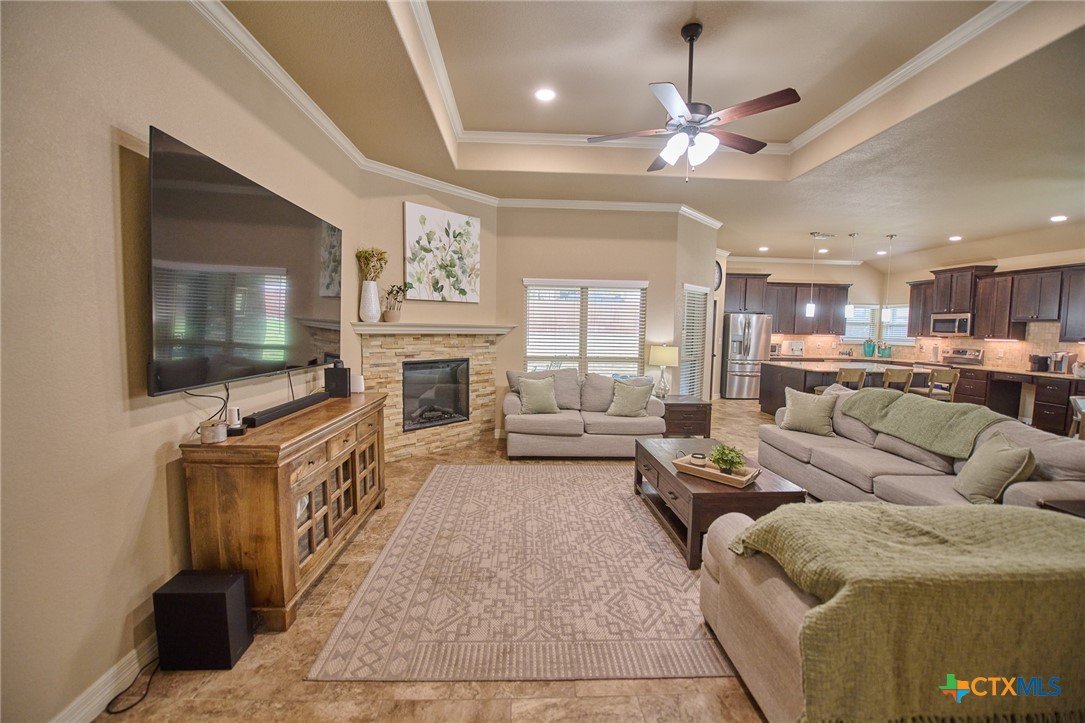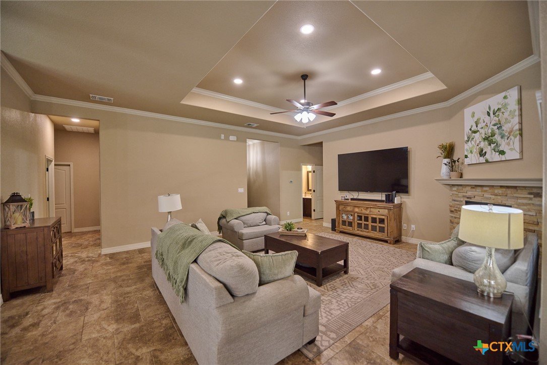 Experience luxury living in this stunning property by award-winning A & G Homes. This thoughtfully designed floor plan blends modern comfort with timeless finishes, from the 2-car garage and soaring ceilings to refined recessed lighting and a spectacular gourmet kitchen. Brand-new enhancements: All-new central air conditioning system for superior comfort and energy efficiency. Gourmet kitchen features granite countertops, stainless steel appliances, a double-oven range with a ceramic cooktop, under-cabinet lighting, and it overlooks the open dining area and expansive family room with a fireplace. The owner’s suite is generously sized with a Texas-sized walk-in closet and a spa-like bathroom featuring a garden tub and a large walk-in ceramic tile shower. The floor plan offers a split layout with secondary bedrooms and a full bath situated away from the owner’s suite, plus a convenient half bath for guests. Upscale moldings and ceramic tile flow throughout, with plush carpet in bedrooms and closets and faux blinds for easy light control. Exterior and energy features include pre-plumbing for an outdoor kitchen, a privacy fence, and irrigation system. Pride in ownership is apparent at this beauty! It is owner occupied, but showing is easy! 2 hr notice please!