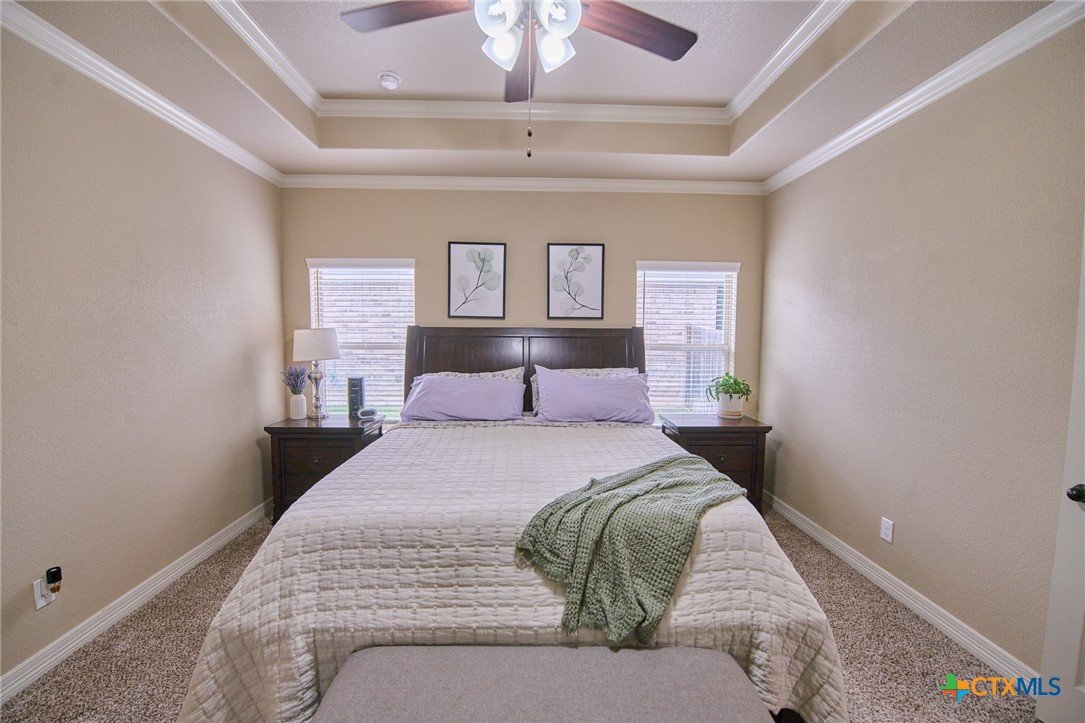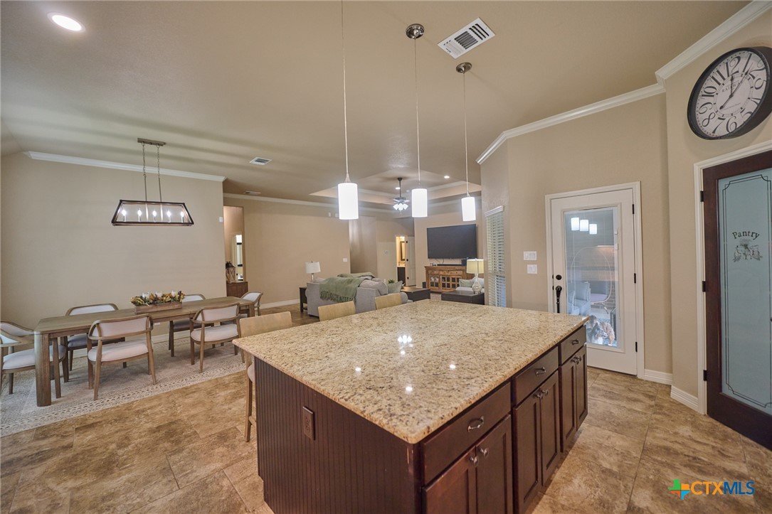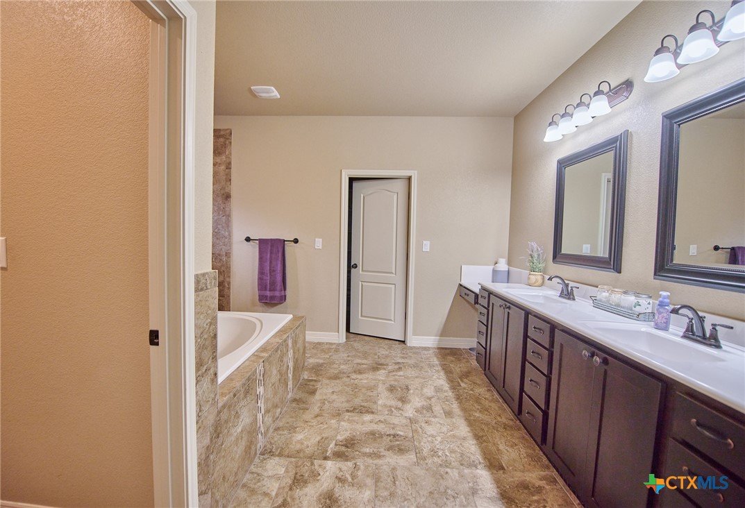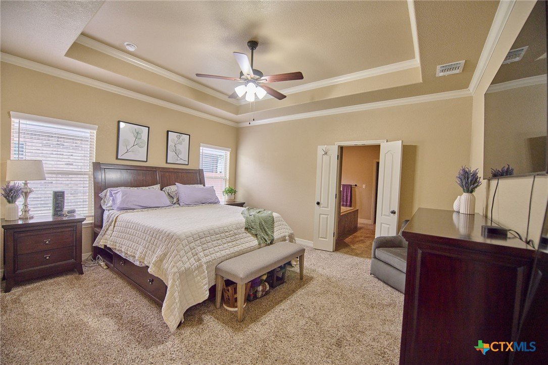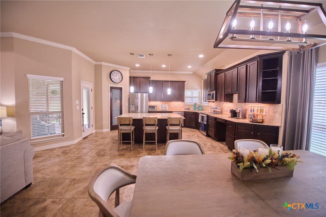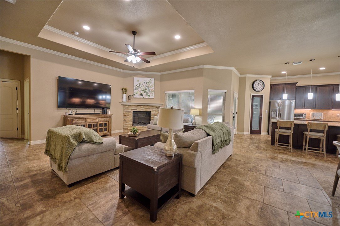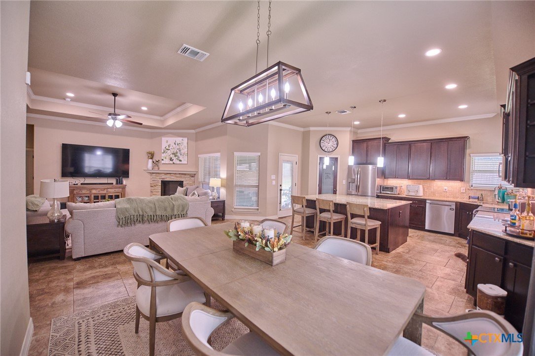 Experience luxury living in this stunning property by award-winning A & G Homes. This thoughtfully designed floor plan blends modern comfort with timeless finishes, from the 2-car garage and soaring ceilings to refined recessed lighting and a spectacular gourmet kitchen. Brand-new enhancements: All-new central air conditioning system for superior comfort and energy efficiency. Gourmet kitchen features granite countertops, stainless steel appliances, a double-oven range with a ceramic cooktop, under-cabinet lighting, and it overlooks the open dining area and expansive family room with a fireplace. The owner’s suite is generously sized with a Texas-sized walk-in closet and a spa-like bathroom featuring a garden tub and a large walk-in ceramic tile shower. The floor plan offers a split layout with secondary bedrooms and a full bath situated away from the owner’s suite, plus a convenient half bath for guests. Upscale moldings and ceramic tile flow throughout, with plush carpet in bedrooms and closets and faux blinds for easy light control. Exterior and energy features include pre-plumbing for an outdoor kitchen, a privacy fence, and irrigation system. Pride in ownership is apparent at this beauty! It is owner occupied, but showing is easy! 2 hr notice please!