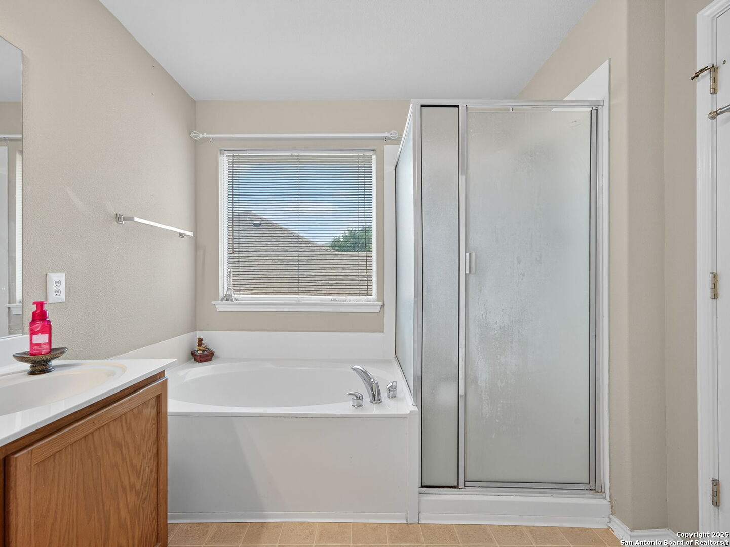 Step into this beautifully cared for 4-bedroom, 3.5-bath home, a place that you will captivate your heart. With soaring ceilings, elegant finishes, and a thoughtful layout with dual primary bedrooms, this home was designed for both meaningful gatherings and everyday moments that make life special. As soon as you enter the home you are greeted by the elegant formal dining room that invites celebrations around the table. With plenty of space in the dining area, you can host delightful evenings with your loved ones. The open kitchen, with abundant cabinetry, a breakfast nook, and a breakfast bar overlooking the living room, keeps the heart of the home connected. On the main floor, you'll also find a private primary bedroom with its own full bath, perfect for creating a cozy guest retreat or giving multi-generational living its own peaceful corner. Upstairs, the spacious secondary primary suite is tucked away for privacy and relaxation, complete with dual vanities, a soaking tub, and a walk-in shower that feels like a personal spa. Two additional bedrooms, separated by a versatile game room, give household members or guests their own comfortable space. Charming touches like the spindled staircase and a welcoming back patio add warmth and character, while the spacious backyard offers endless possibilities for play, pets, and outdoor fun. Conveniently located near H-E-B, Walmart, and Sam's Club, this home offers not just beauty, but also the ease of having everything you need nearby. Just minutes away is the Emory Oak Trailhead, a favorite spot for walking, hiking, and birdwatching: nature enthusiasts will feel right at home in this location! Come and explore this beautiful home today!