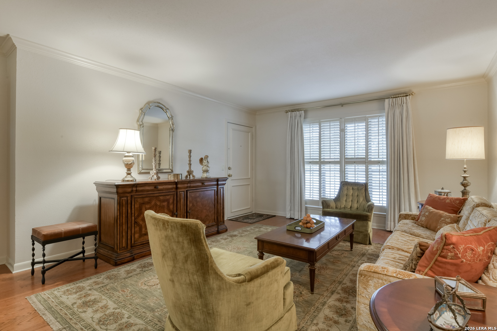This ground floor, all one level unit at Hampshire House has everything that is needed for low mantinence, "lock & leave" living. The unit has been so very lightly lived in and maintained to perfection. The wood floors are in excellent condition and the laundry space is large enough to have an office area making work from home easy without ultilizing a bedroom. This complex has a Broadway address, but sits on Corita Street making it easy for friends & family to park directly in front of the unit. The Refrigerator and the Washer & Dryer convey, so, if you are looking for easy condo living in 78209, this one has no objections. I am so excited for you to see this wonderful unit!