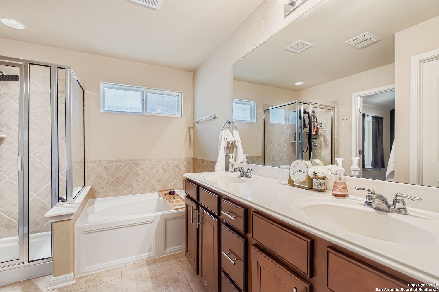 Located in the desirable Silver Oaks community, this thoughtfully designed and former model home offers a flexible layout and inviting spaces for everyday living and entertaining. The main-level primary suite provides a spacious retreat with a walk-in closet and separate tub and shower. Upstairs, a second private living area can easily function as an additional primary-style retreat, multigenerational setup, or versatile bonus space and has a full bathroom. Three additional secondary bedrooms, two flexible living areas, and a dedicated office create options for work, relaxation, and/or gatherings. Enjoy outdoor living on the covered patio overlooking perfect for unwinding or hosting. Current owners had HVAC replaced in 2021, updated floors with engineered hardwood in primary bedroom, office and one of the secondary bedrooms. With its adaptable floor plan and comfortable design, this home presents a wonderful opportunity in Silver Oaks.