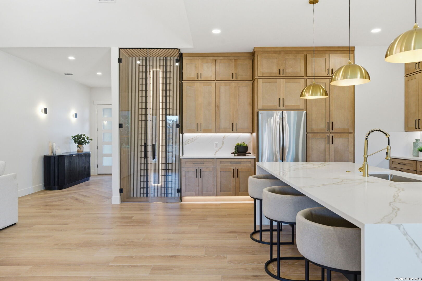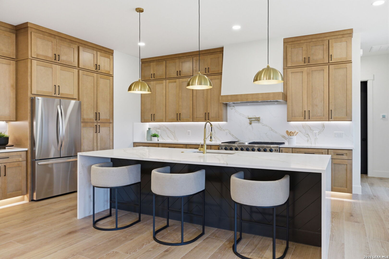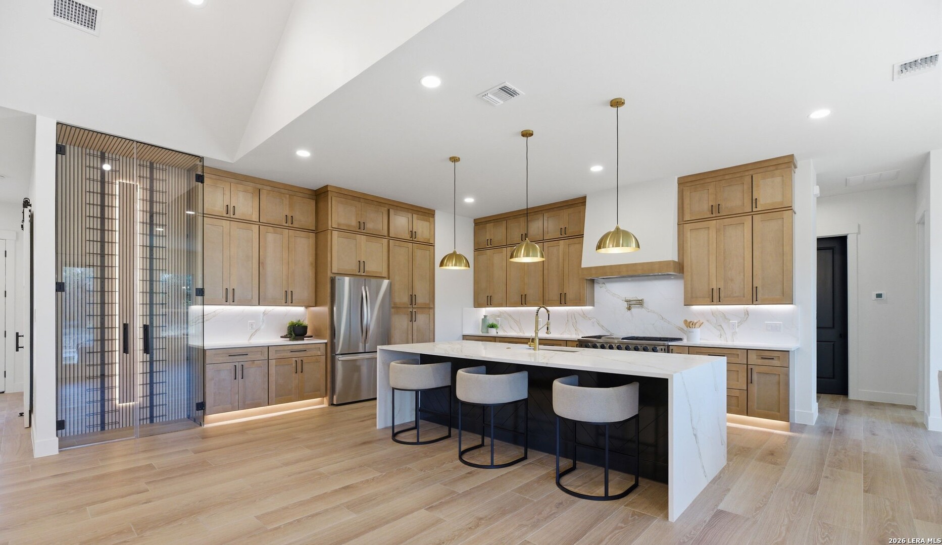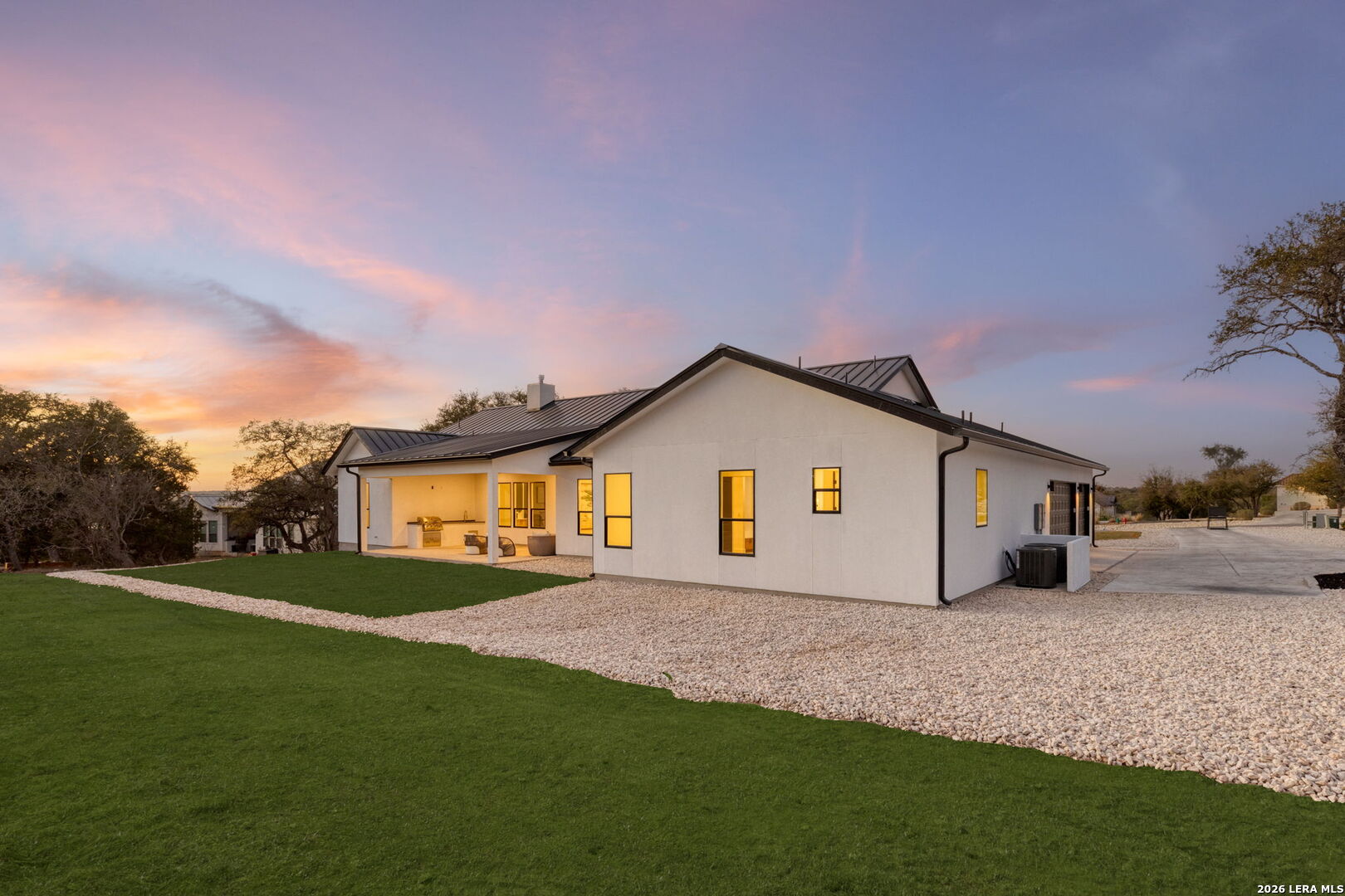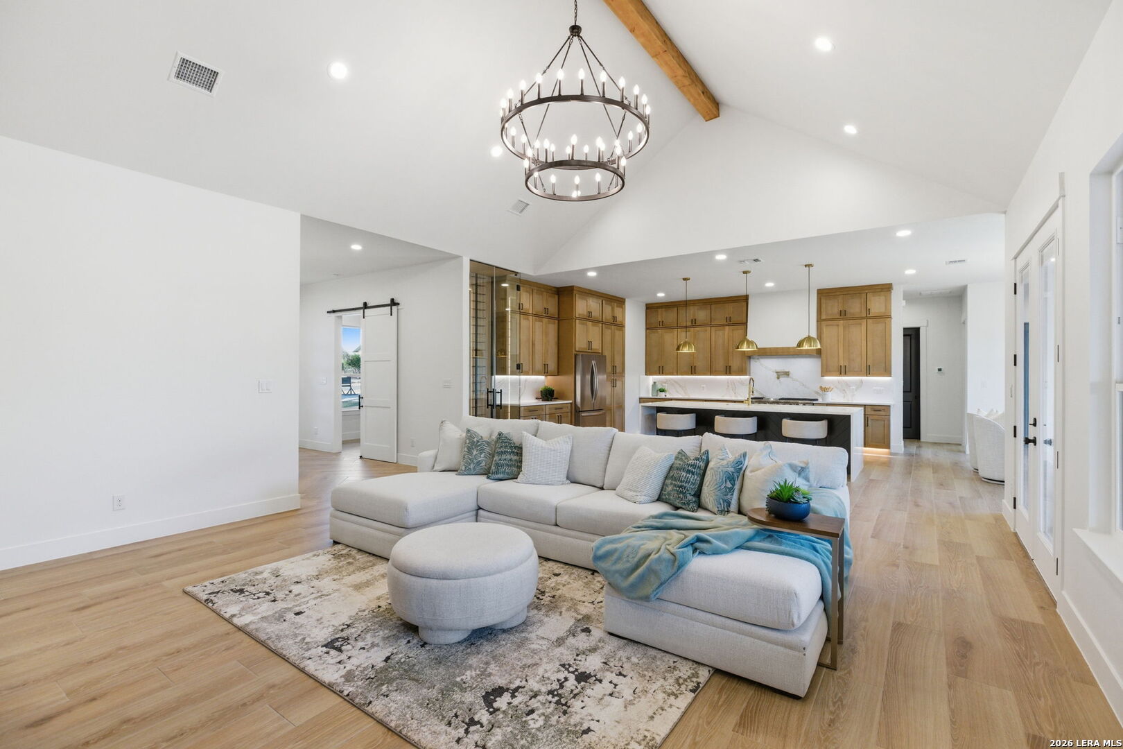 Welcome to a stunning blend of modern elegance and ultimate comfort in this exquisite home, nestled within the highly coveted Belle Oaks neighborhood. This residence offers not just a place to live, but a lifestyle to cherish, featuring an impressive 5 bedrooms and 4.5 baths, or the flexibility of 4 bedrooms with an office. With an attached guest house serving as the fifth bedroom complete with its own bathroom, laundry, kitchen, and full bath, this home is designed to cater to your every need. Step inside and be captivated by the expansive open floor plan that seamlessly connects living spaces. At its heart is a gourmet gas kitchen that will delight any culinary enthusiast. The centerpiece is a magnificent 6-burner stove with a grill, perfect for both cooking and entertaining. Complemented by a striking quartz waterfall island and backsplash, and ample storage in the butler's pantry, this kitchen exudes contemporary sophistication. For those who love to entertain, the outdoor kitchen is fully equipped and ready for unforgettable gatherings. Imagine hosting friends and family by your dream pool, complete with a full bath for convenience. Throughout the home, vast tile floors lead you to dual master suites with vaulted ceilings. This home's utility is unparalleled, boasting features such as a dedicated dog wash station and EV outlets in the spacious 3-car garage. Energy efficiency is ensured with modern foam insulation, creating a warm and sustainable atmosphere. Outside, the natural beauty of mature trees on the expansive 1-acre lot offers tranquility and a perfect retreat from everyday life. This beautifully crafted home embodies luxury living while meeting practical needs with grace. Don't miss your chance to claim this dream home as your own today!