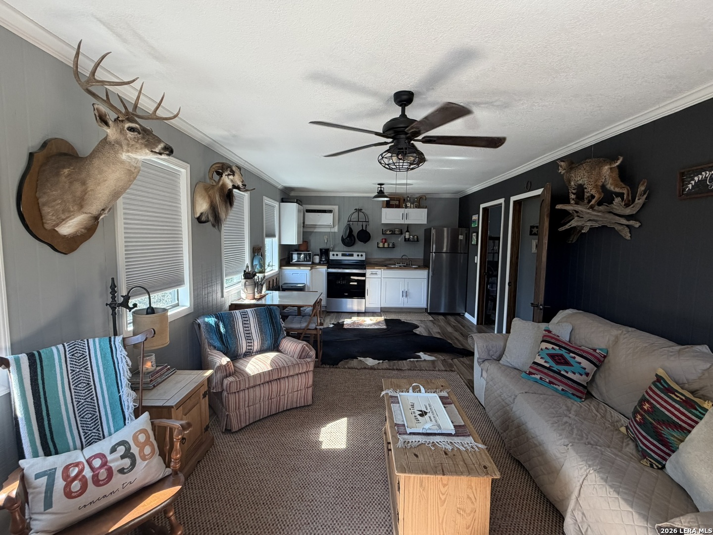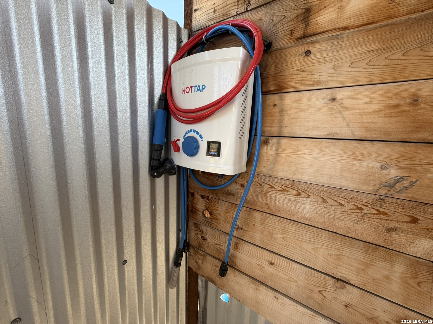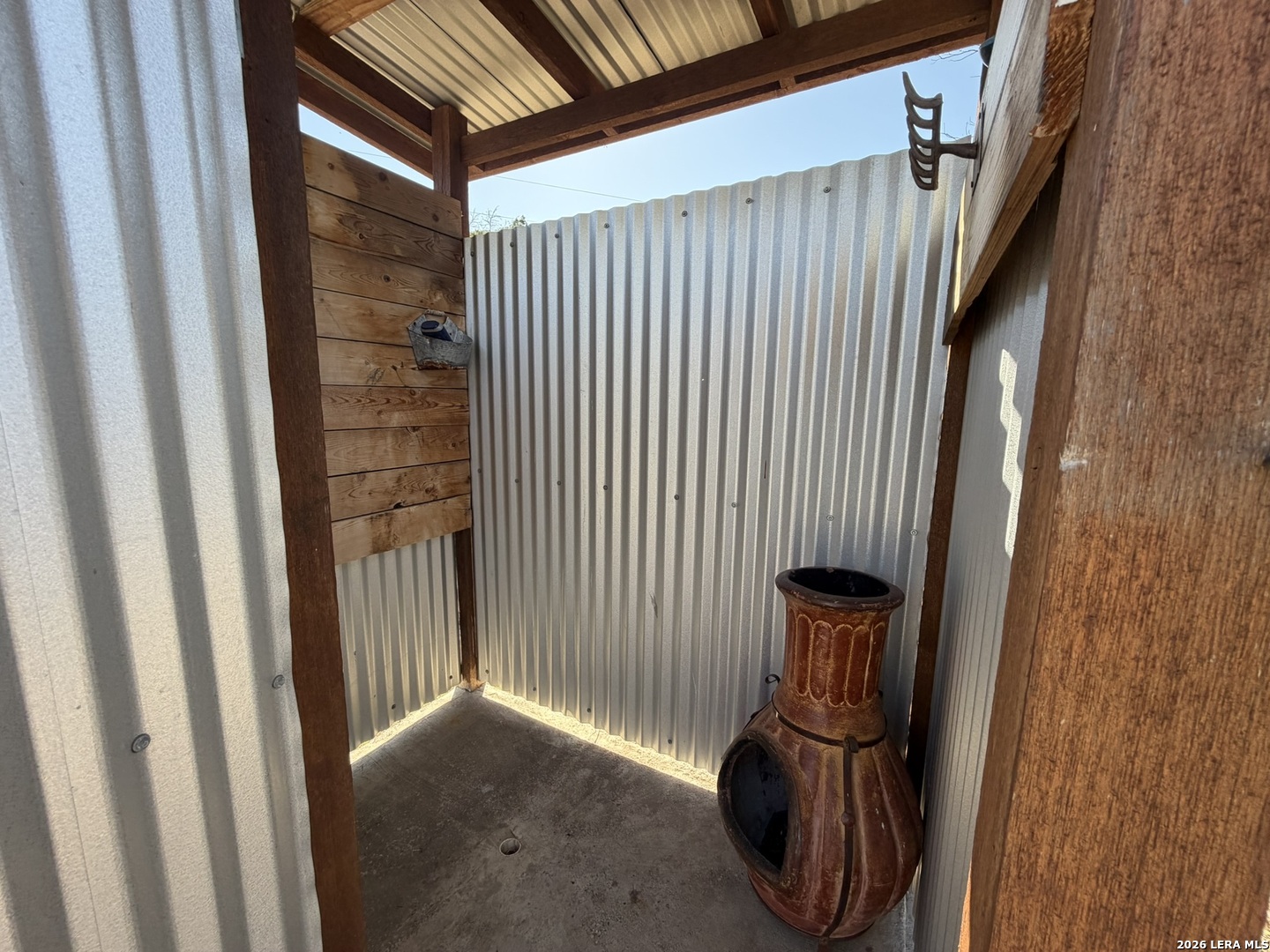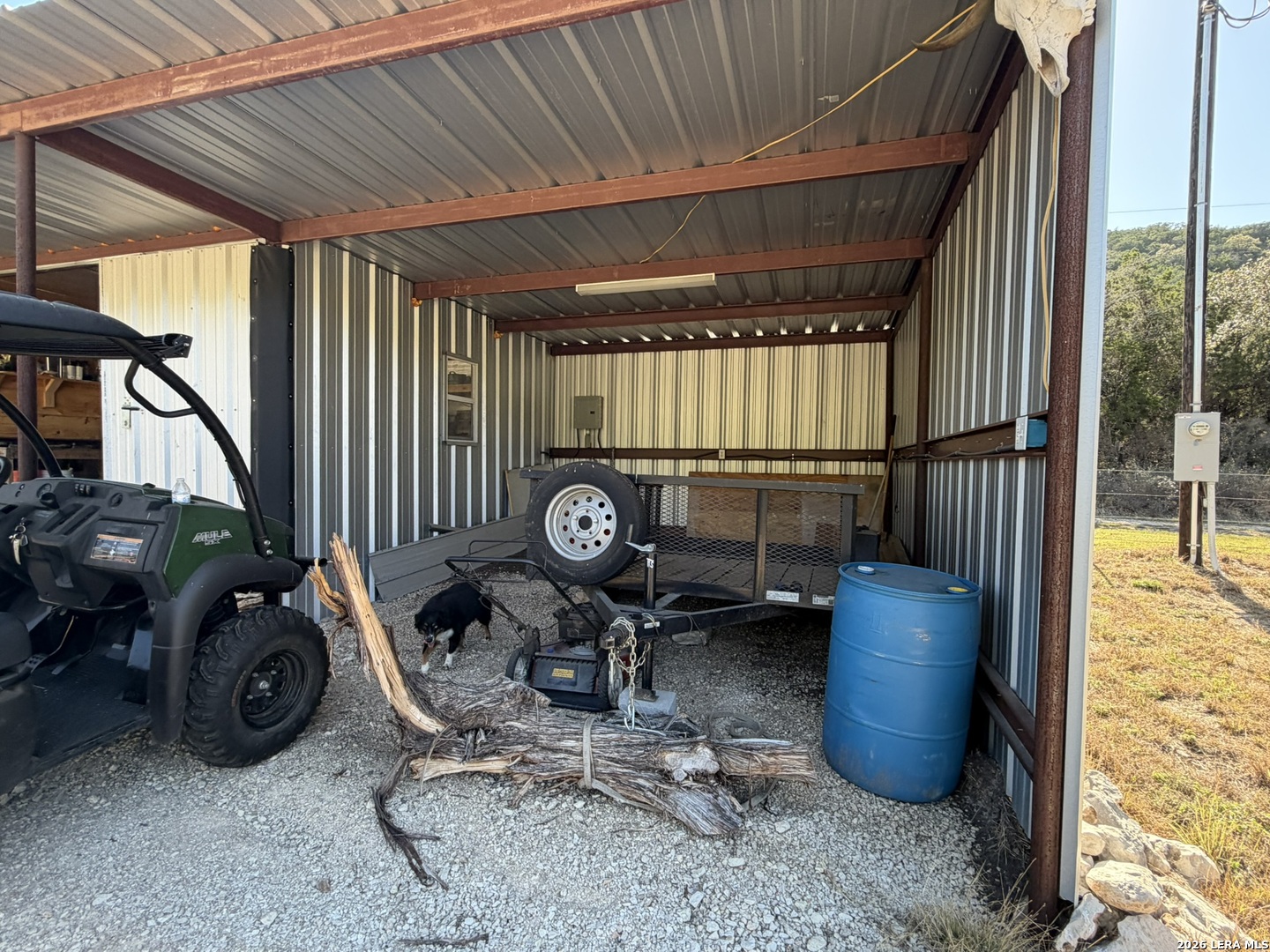 Discover your own secluded retreat on 5 acres just minutes from Concan and the cool clear waters of the Frio River! Built in 2023, this charming 1-bedroom, 1-bathroom cabin blends comfort and functionality. The modern kitchen comes fully equipped with a stove, sink, refrigerator, and ample cabinetry. Step onto the covered deck with its inviting rock fireplace-perfect for unwinding and soaking in breathtaking Hill Country views and peaceful Texas evenings. Enjoy hiking to the hilltop for incredible 360 panoramas. The property includes a spacious 20x20 metal shop, ideal for storing ATVs or river gear, plus an outdoor shower for cooling off on hot summer days. Appliances and select furnishings are included, along with a riding lawn mower and a Kawasaki mule. Electricity in place. Water is provided by a portable storage tank. 4x4 recommended during wet weather. Topography is sloping in the front, nicely terraced hillside where the cabin is situated, then sloping behind the cabin and up the hill. This is the ultimate getaway for outdoor lovers seeking stylish camping and adventure!
