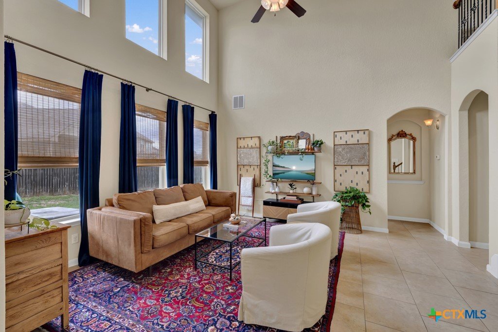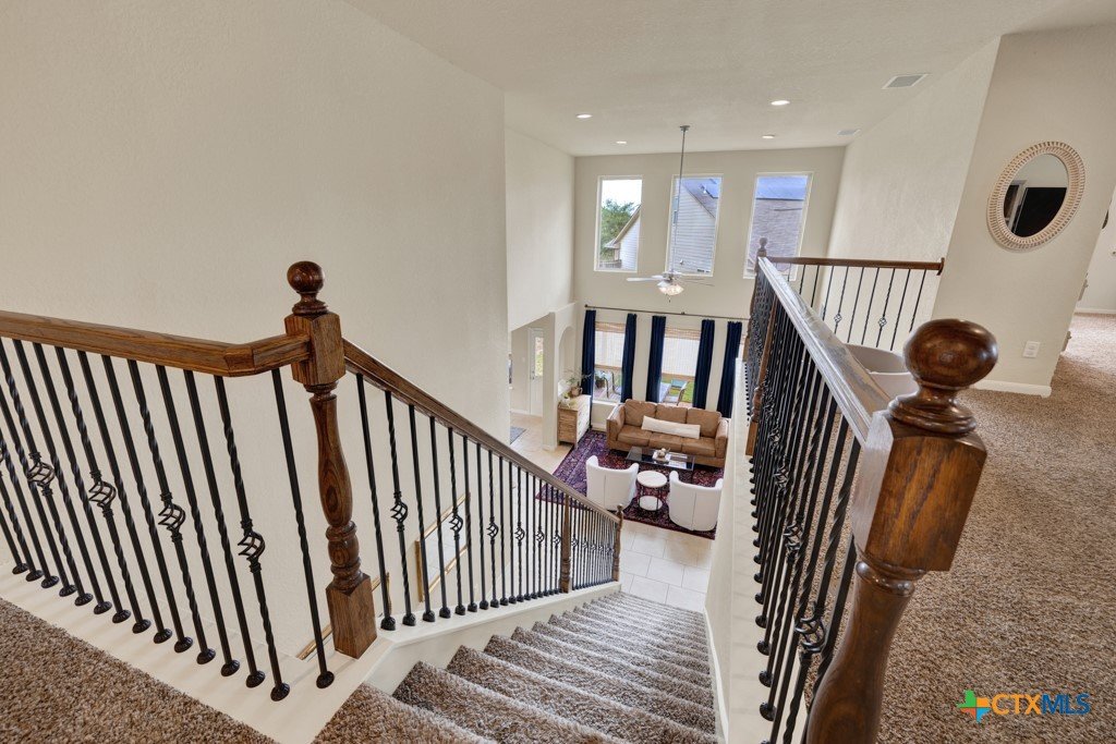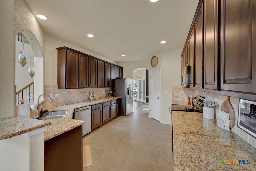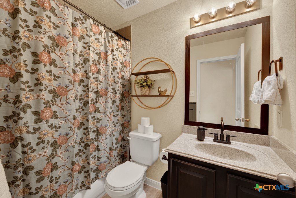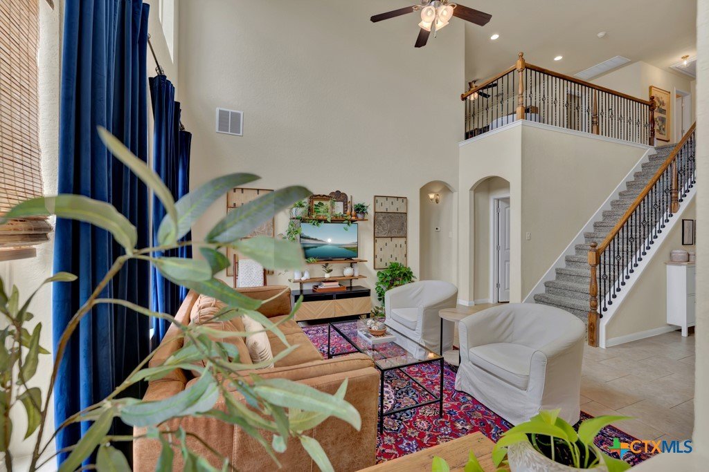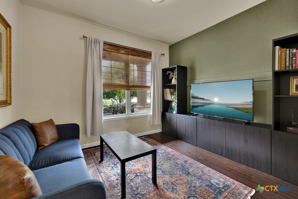Welcome home to this beautifully maintained 5 bedroom, 3 1/2 bath residence that truly shows like new and reflects exceptional pride of ownership. Designed with families in mind, the spacious, open-concept layout features soaring ceilings and an abundance of natural light, creating a bright and welcoming atmosphere throughout. Enjoy the flexibility of both a formal dining room and a dedicated home office—perfect for gatherings, remote work, or homework space. The private downstairs primary suite offers a relaxing retreat with dual vanities, an oversized walk-in shower, and a generous walk-in closet. Upstairs, a versatile media room provides the option for a sixth bedroom, playroom, or teen hangout space. Step outside to covered front and back patios or upstairs balcony, ideal for morning coffee, evening relaxation, or entertaining friends and family. Conveniently located near shopping, dining, medical facilities, and a community pool, this home also offers access to highly rated Comal ISD schools—making it an ideal choice for anyone seeking comfort, space, and community.