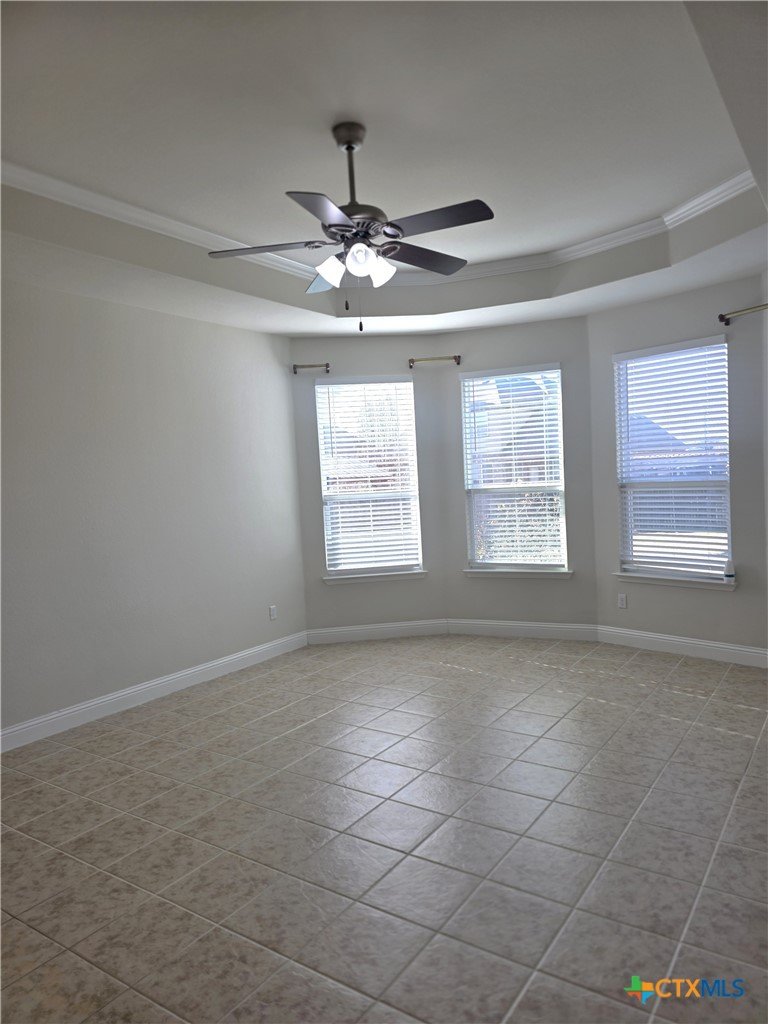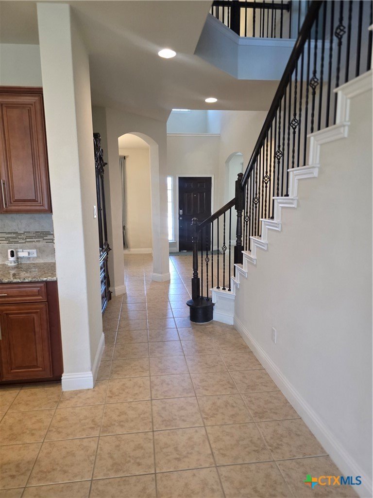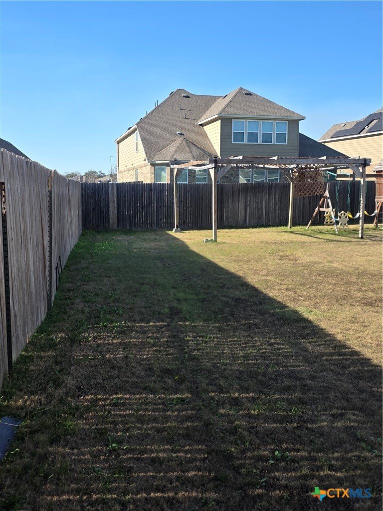 This beautifully landscaped, spacious home features an inviting stone-and-brick exterior, mature landscaping, and a covered front porch that adds curb appeal and welcoming charm. Inside, arched entryways lead to a dedicated formal dining area and formal living area with tile flooring, ample natural light, and space ideal for hosting gatherings. Zircon offers four bedrooms, three and a half bathrooms, and exceptional versatility with three living areas, including a flex room (office), a main living room, and an upstairs loft, along with a dedicated movie theater. Two dining areas provide both formal and casual options for everyday living and entertaining. The kitchen showcases custom cabinetry, granite countertops, an oversized island, a butler’s pantry, and a full walk-in pantry. Just off the kitchen is a large laundry room featuring upper storage cabinets and a sink, adding both function and convenience. A mud bench near the garage entry adds everyday practicality. An additional area off the eat-in kitchen offers flexibility for a wet bar, kids’ study area, or craft space. The primary suite is located on the main floor and includes a full walk-in closet, oversized walk-in shower, double vanity, and a dedicated makeup area. All secondary bedrooms are located upstairs, including a guest bedroom with access to a full bathroom. A Jack-and-Jill bathroom setup between the other two bedrooms, each with a walk-in closet. Outdoor living includes an enclosed patio, a covered patio, and a large, level backyard complete with a storage building and a pergola. The existing playscape will remain with the home, offering added value and enjoyment.
