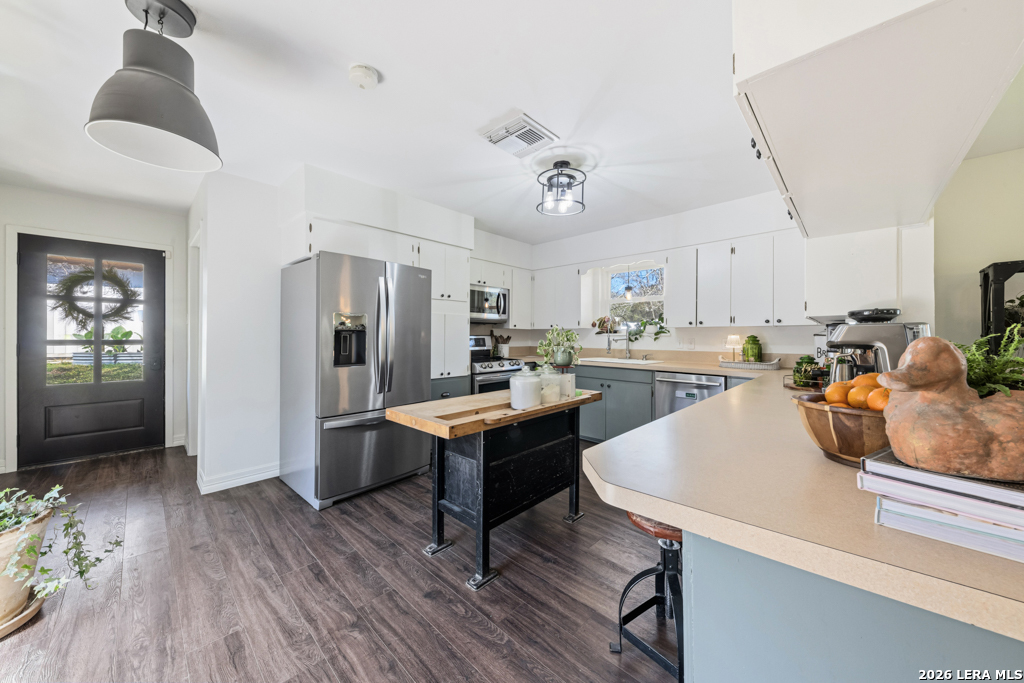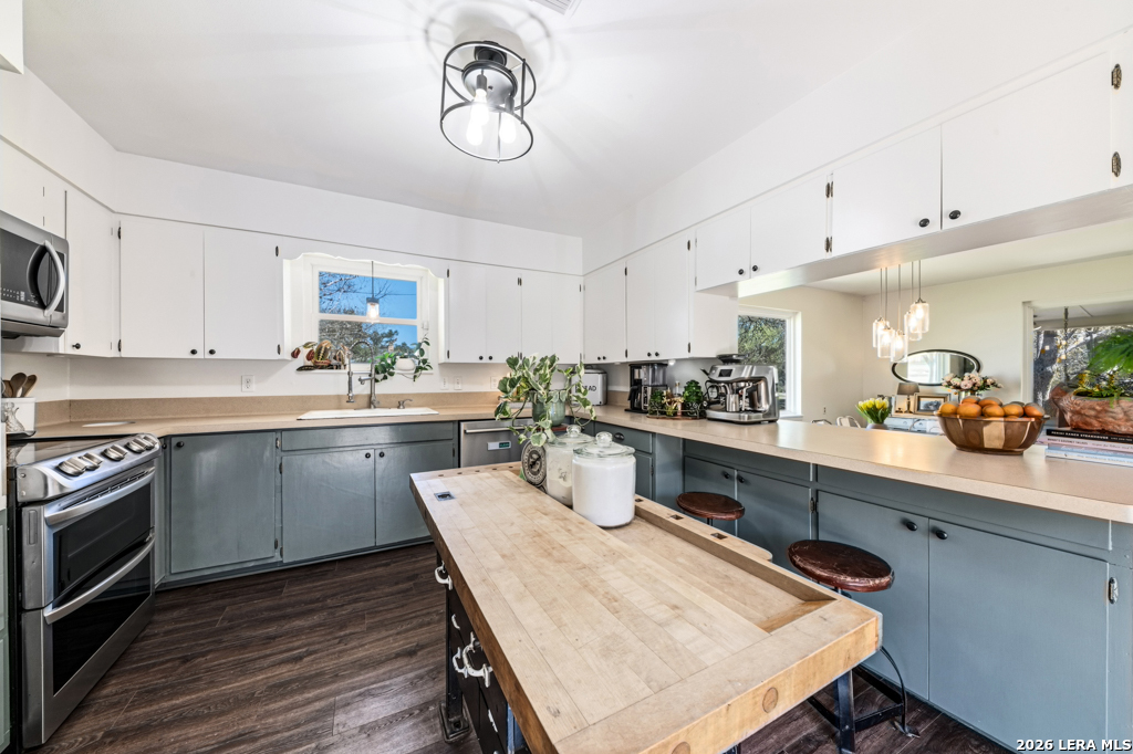 Nestled on just under one acre, this beautifully maintained single-story home sits on a desirable corner lot and offers 4 bedrooms and 3 bathrooms across 2,945 total square feet. Main house is 2098 S.F. and private guest house with full kitchen is 848 S.F. Perfect for multi-generational living or SHORT TERM RENTAL. Thoughtfully updated with numerous upgrades, this home is move-in ready while still offering the opportunity to add your own personal touches. The property is shaded by many mature trees, creating a peaceful and inviting outdoor setting. Enjoy the benefits of no mandatory HOA and no city taxes. Residents also have access to the subdivision's private river park on the Guadalupe River - perfect for relaxing, swimming, or simply soaking in the natural beauty. Located just a short golf cart ride from Gruene, you'll have easy access to boutique shopping, local restaurants, and live music. Experience the "GOOD LIFE" in this quiet, well-established, and friendly neighborhood.